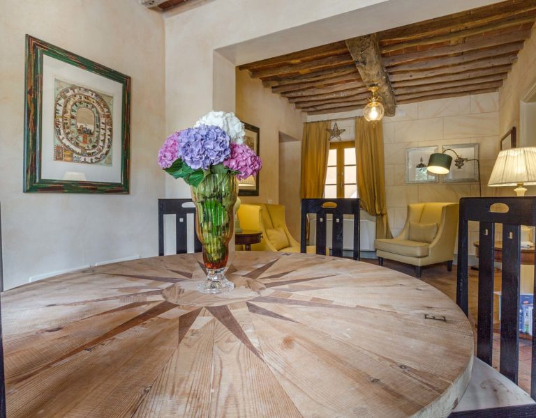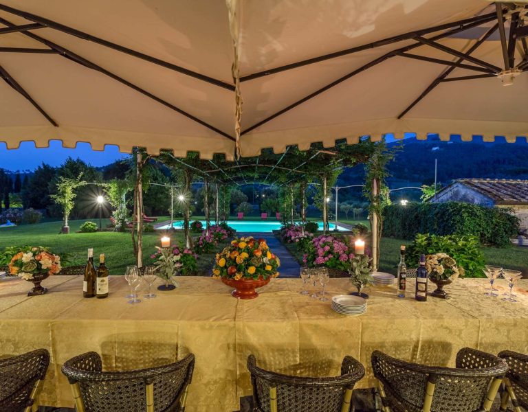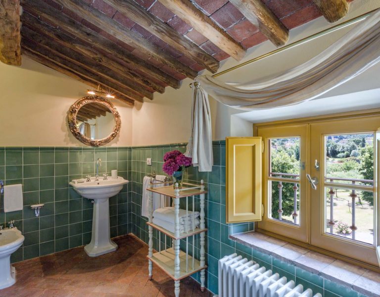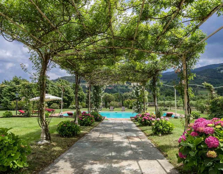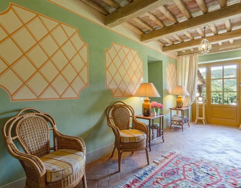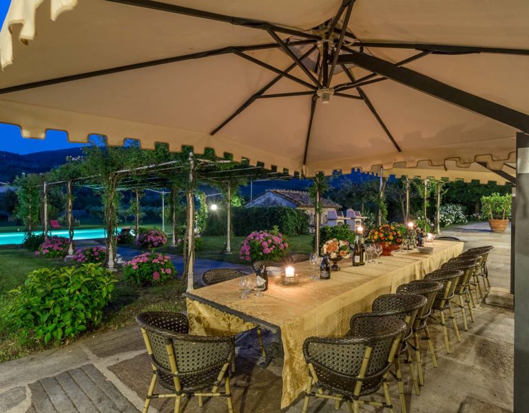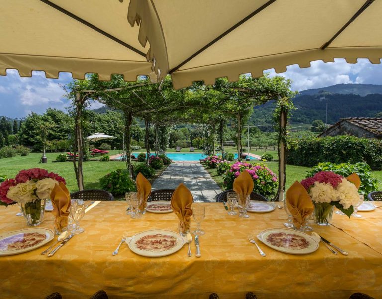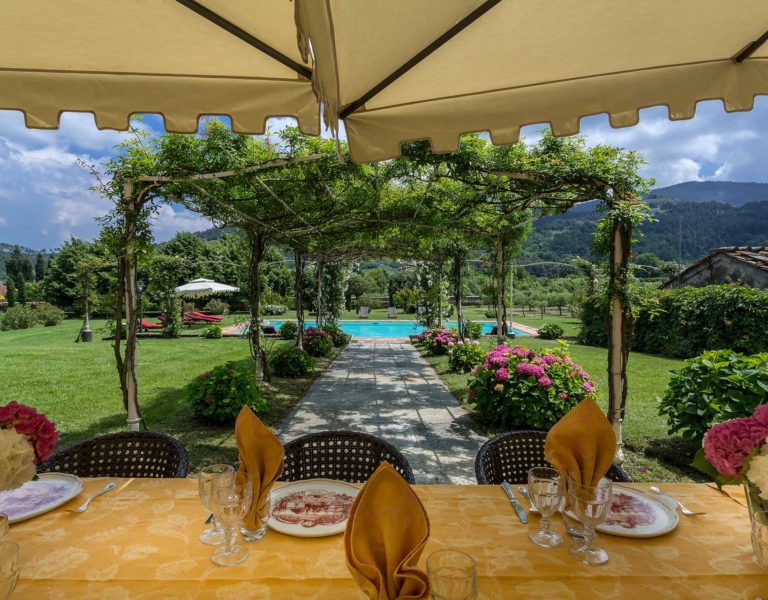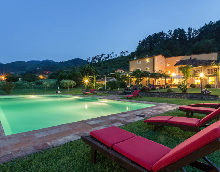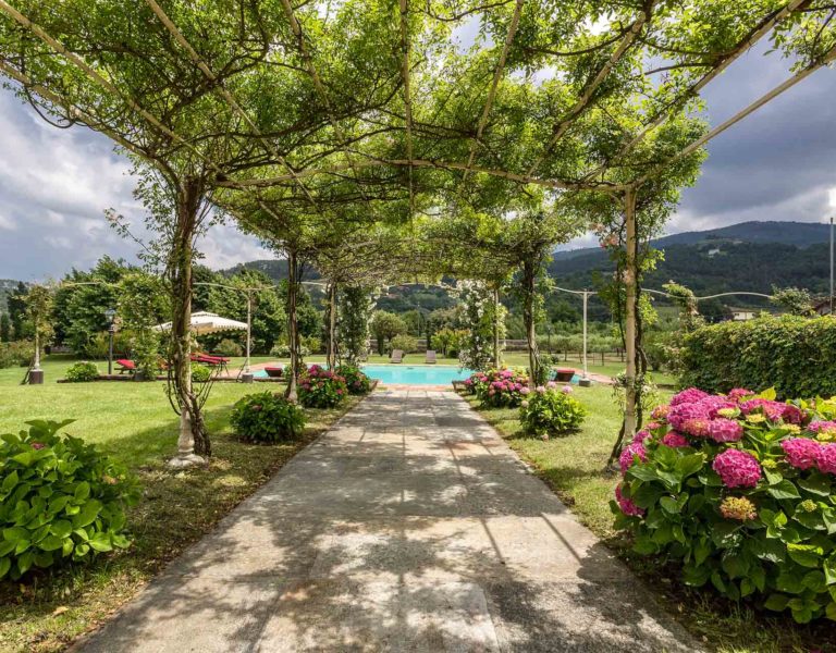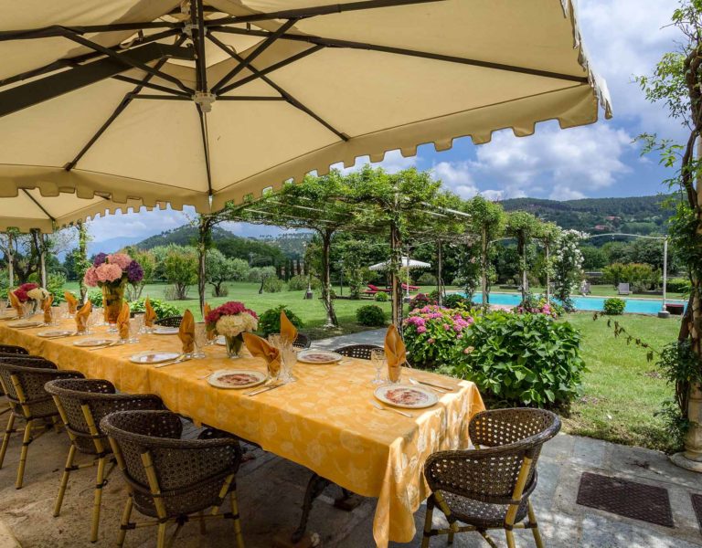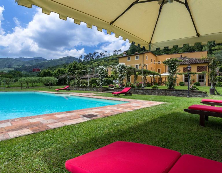 It features a big garden, with a pool and a huge alfresco dining area with BBQ shaded by beautiful trellis covered with roses. Indoors there are a dining room, a lounge room with windows overlooking the winter garden conservatory, a living room with tv-sat, a furnished kitchen, a laundry room and a fitness room. There are also of course 8 elegant bedrooms with en-suite bathrooms,a safe and air-conditioner. The villa was part of the Controni family estate, a powerful family of Lucca; it was originally built as a farmhouse for the workers of the estate and comprehended stables, a grain warehouse and bread oven.