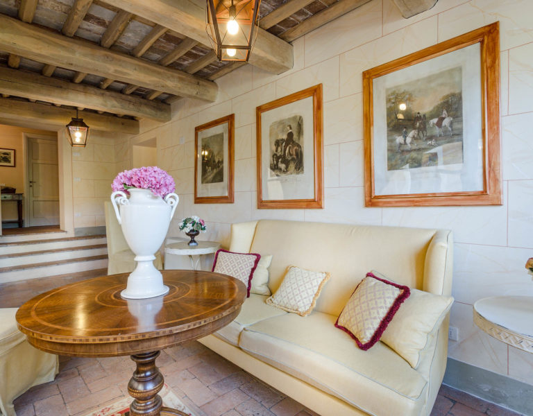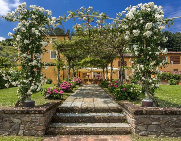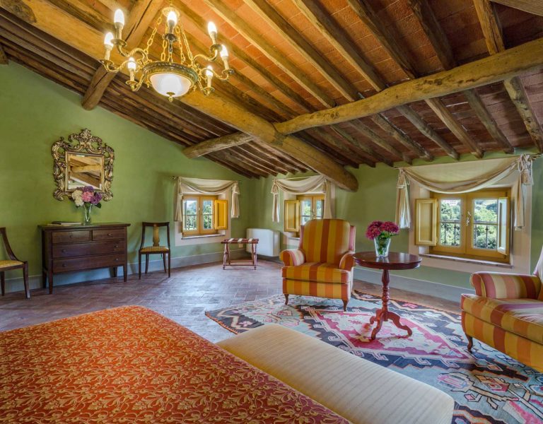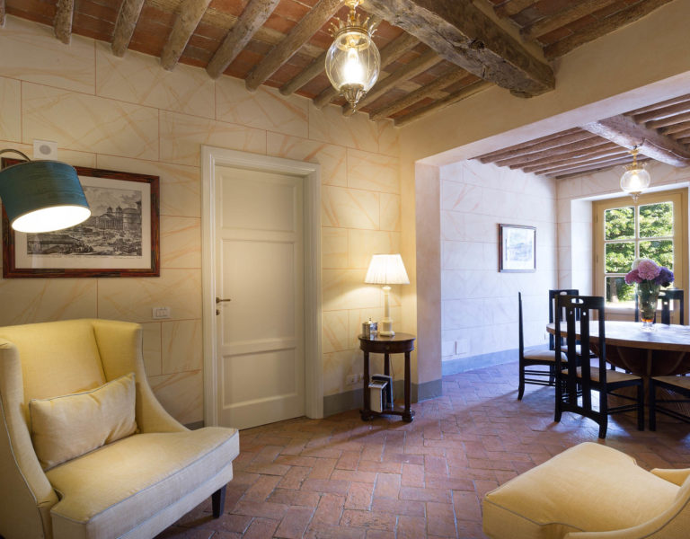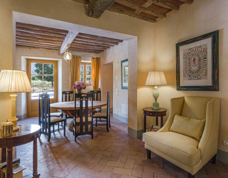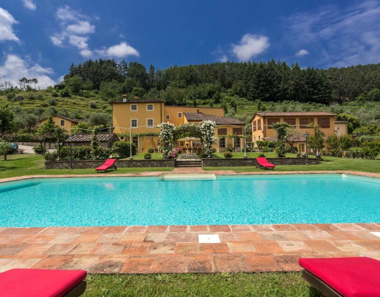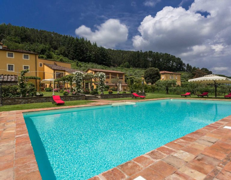Short distance from the ancient town of Lucca, an elegant farmhouse immersed in the Tuscan countryside surrounded by olive groves.