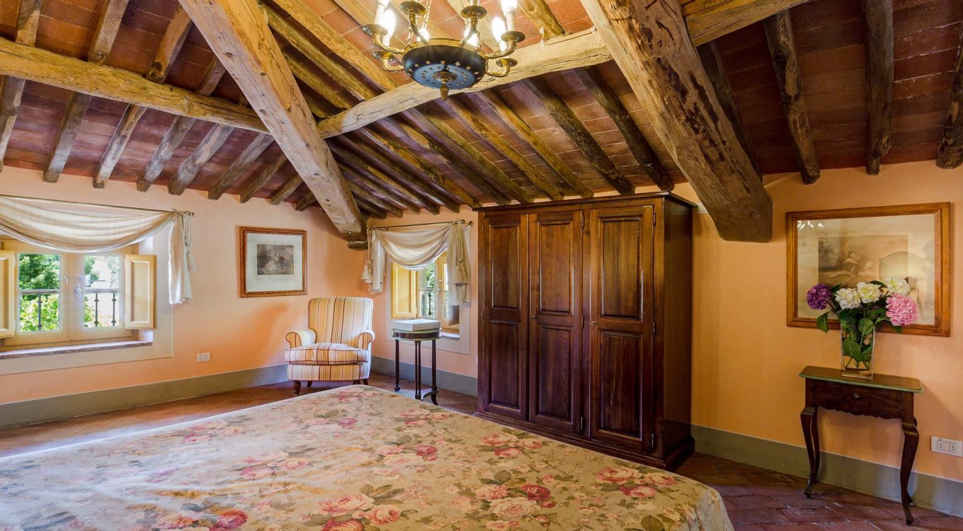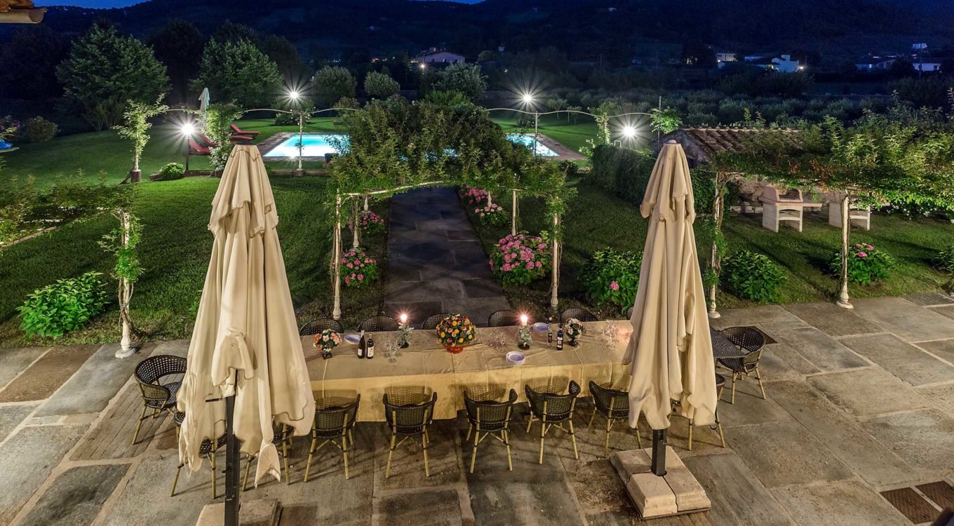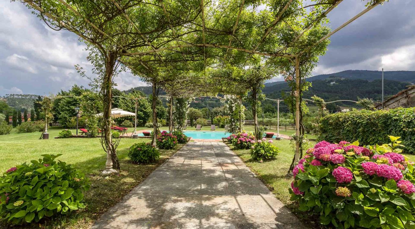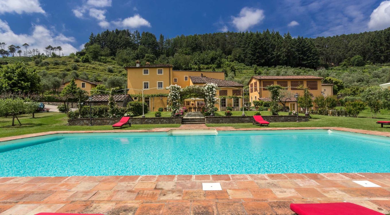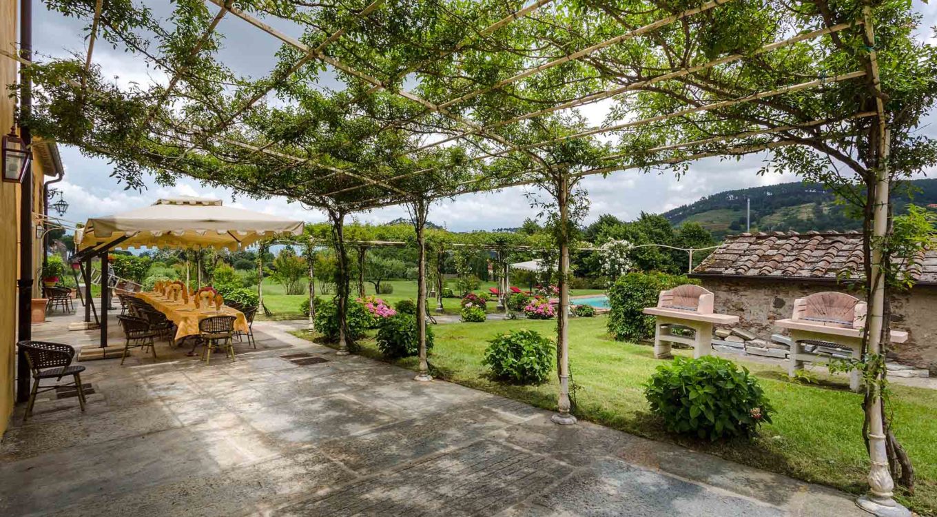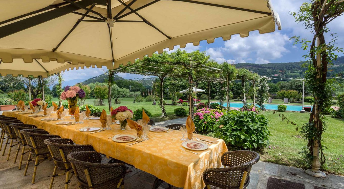 It features a big garden, with a pool and a huge alfresco dining area with BBQ shaded by beautiful trellis covered with roses. Indoors there are a dining room, a lounge room with windows overlooking the winter garden conservatory, a living room with tv-sat, a furnished kitchen, a laundry room and a fitness room. There are also of course 8 elegant bedrooms with en-suite bathrooms,a safe and air-conditioner. The villa was part of the Controni family estate, a powerful family of Lucca; it was originally built as a farmhouse for the workers of the estate and comprehended stables, a grain warehouse and bread oven.