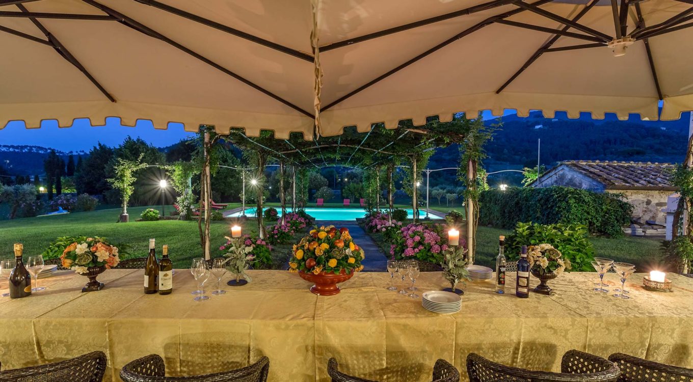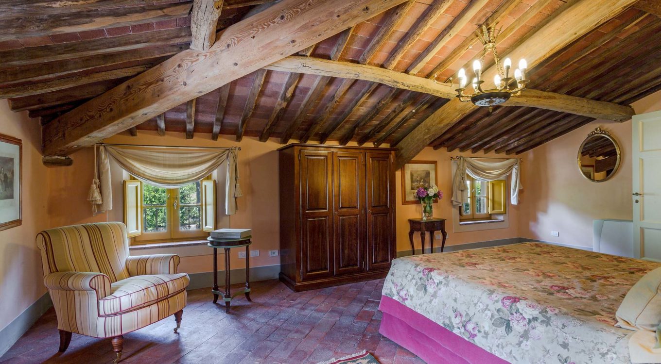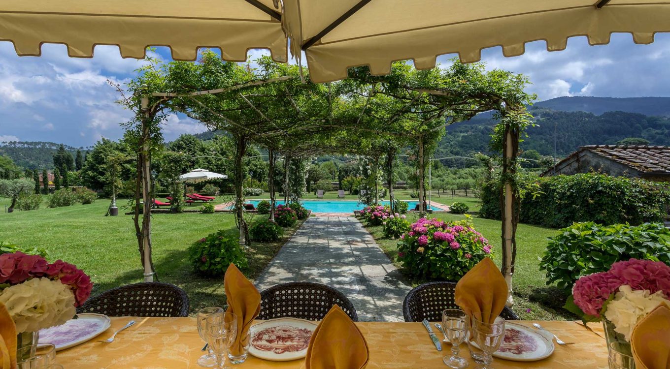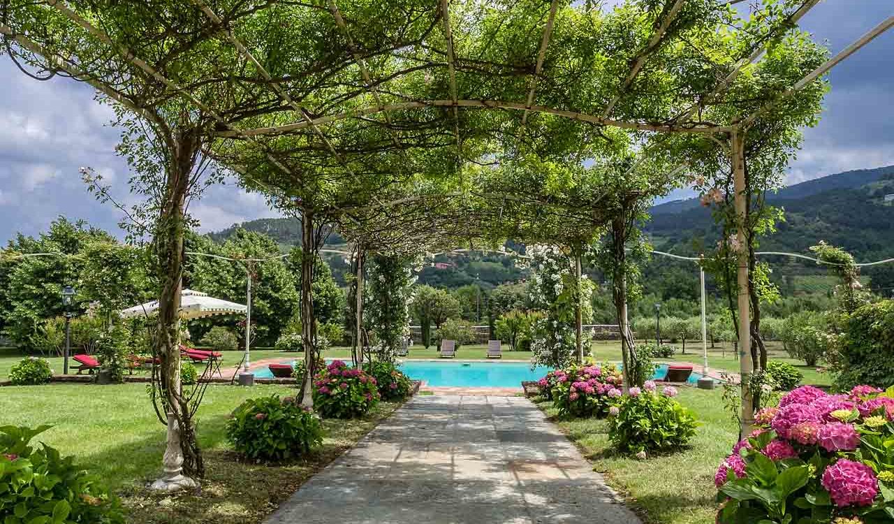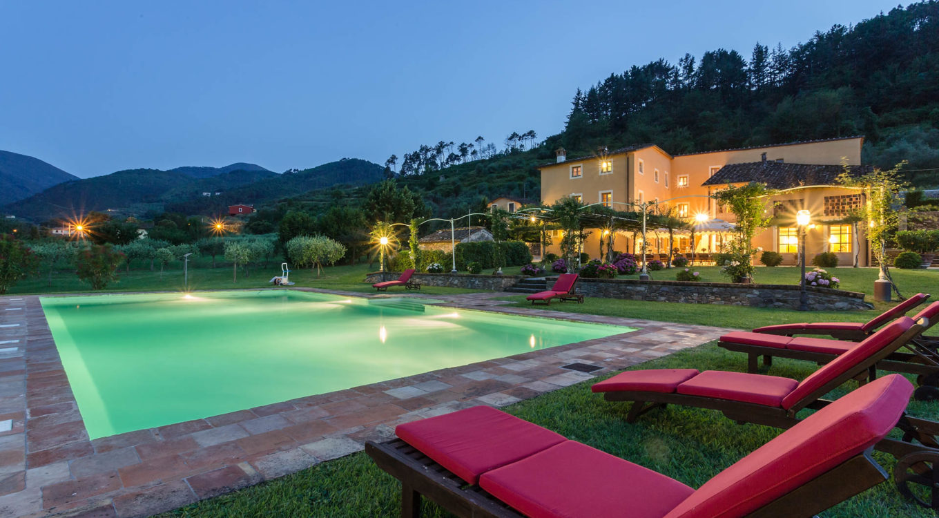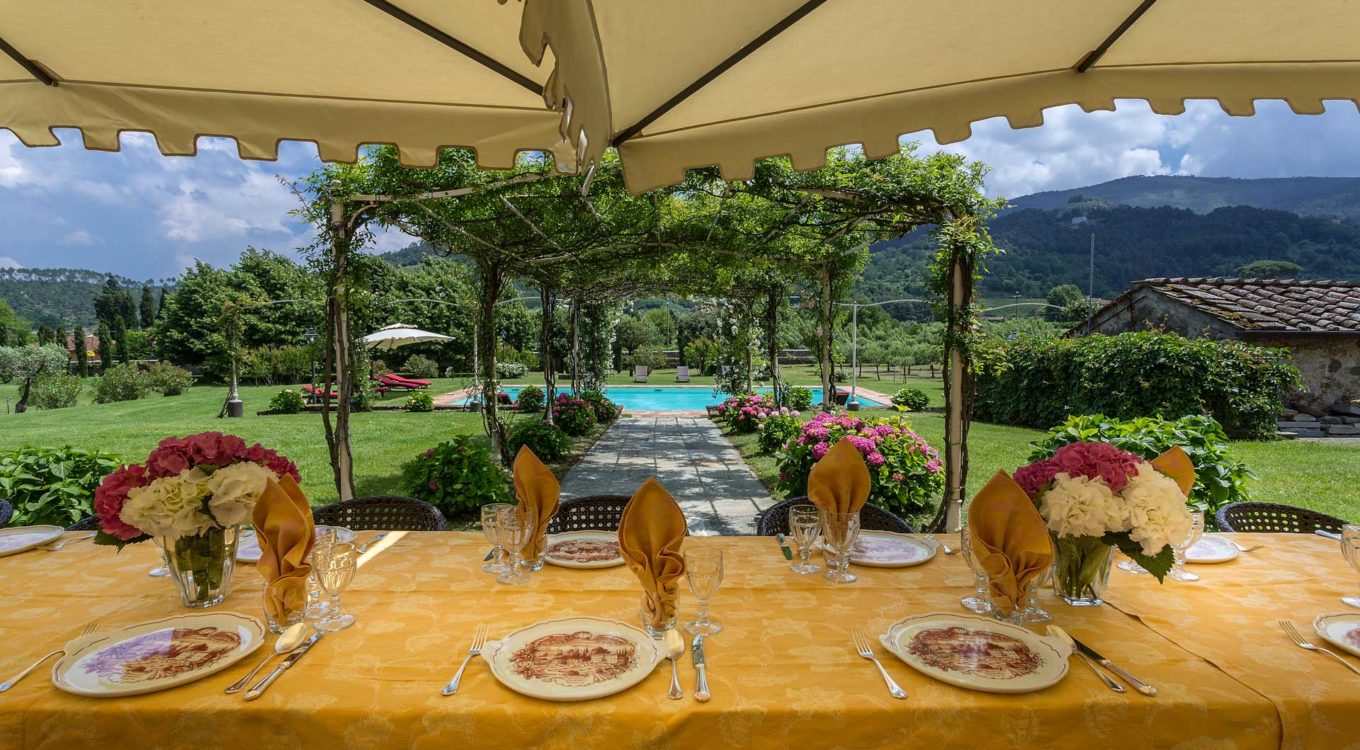 It features a big garden, with a pool and a huge alfresco dining area with BBQ shaded by beautiful trellis covered with roses. Indoors there are a dining room, a lounge room with windows overlooking the winter garden conservatory, a living room with tv-sat, a furnished kitchen, a laundry room and a fitness room. There are also of course 8 elegant bedrooms with en-suite bathrooms,a safe and air-conditioner. The villa was part of the Controni family estate, a powerful family of Lucca; it was originally built as a farmhouse for the workers of the estate and comprehended stables, a grain warehouse and bread oven.