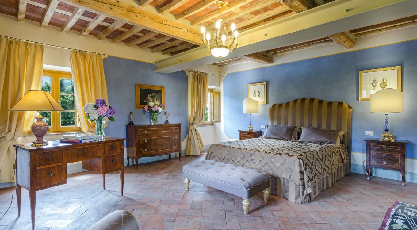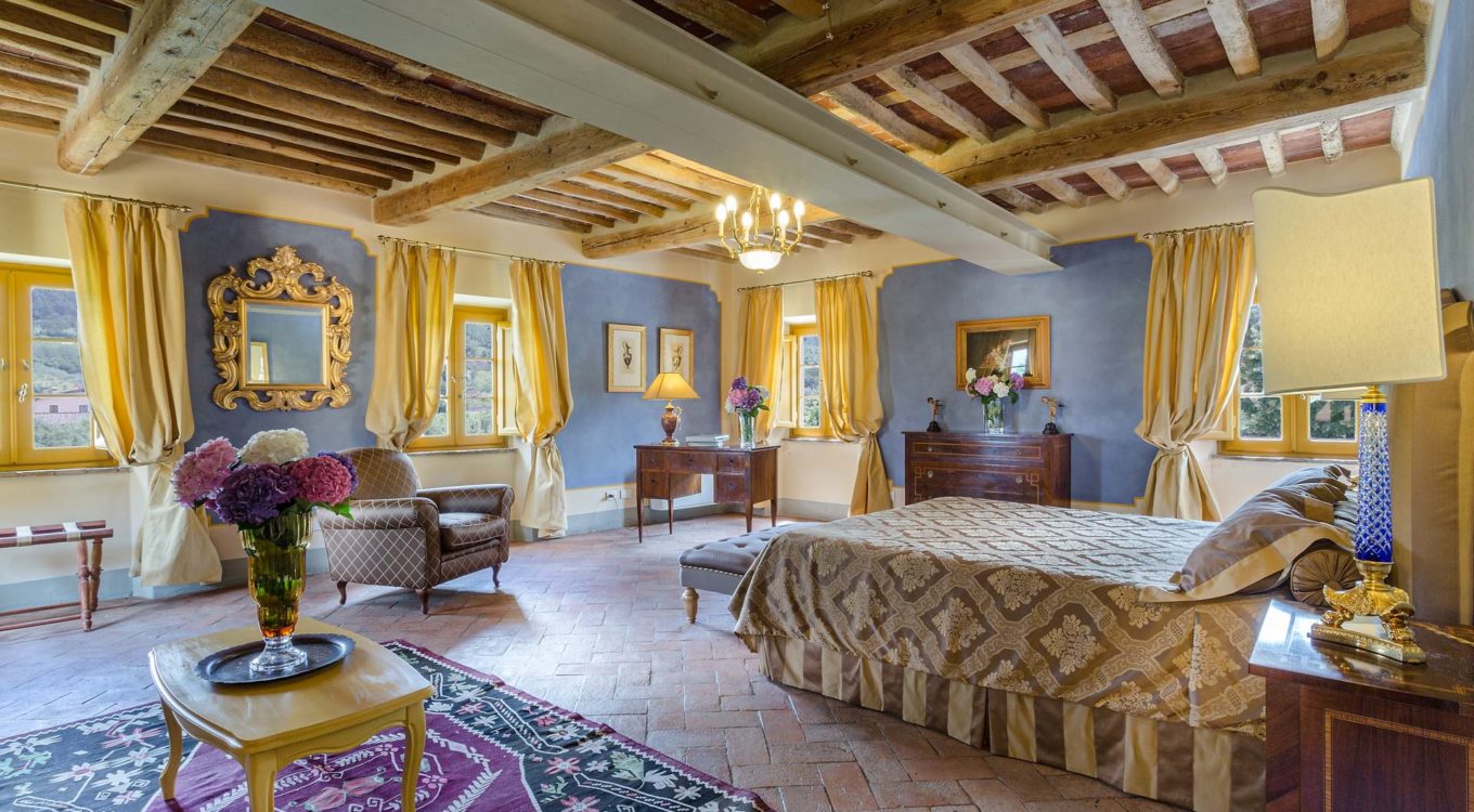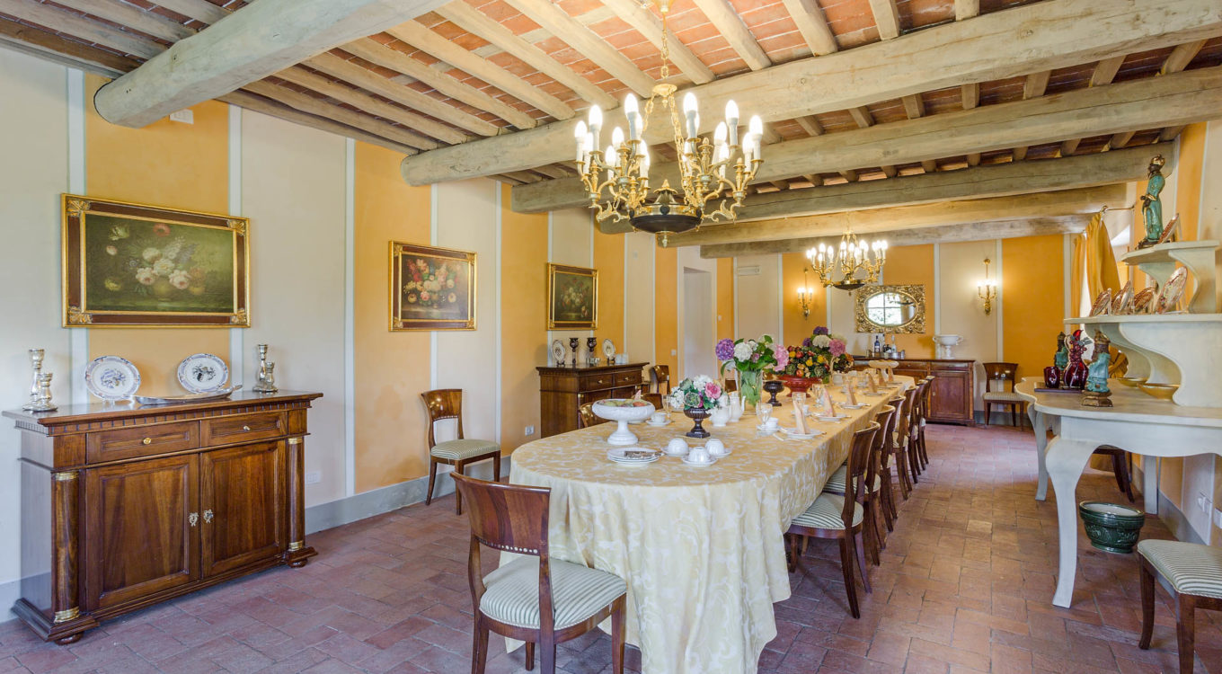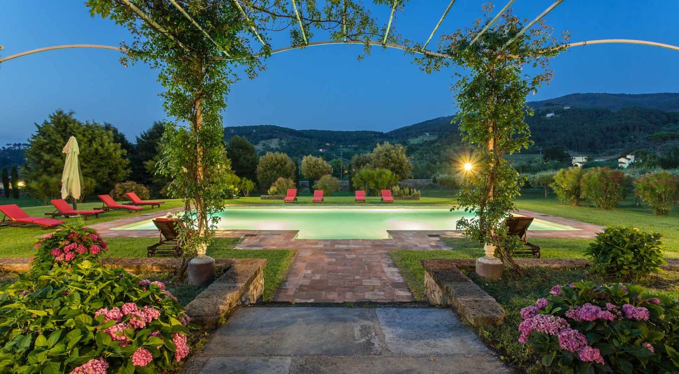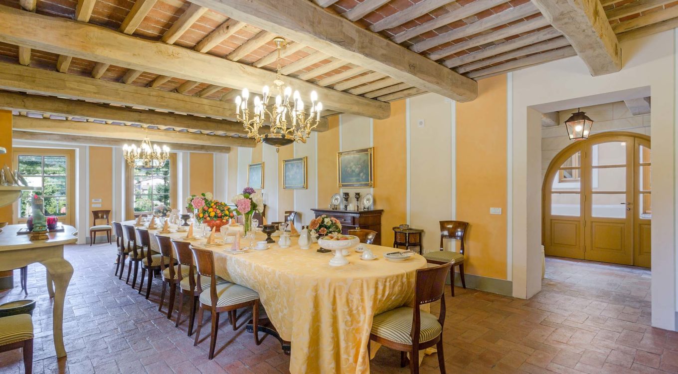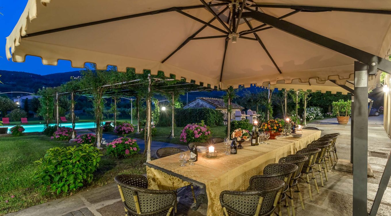 It features a big garden, with a pool and a huge alfresco dining area with BBQ shaded by beautiful trellis covered with roses. Indoors there are a dining room, a lounge room with windows overlooking the winter garden conservatory, a living room with tv-sat, a furnished kitchen, a laundry room and a fitness room. There are also of course 8 elegant bedrooms with en-suite bathrooms,a safe and air-conditioner. The villa was part of the Controni family estate, a powerful family of Lucca; it was originally built as a farmhouse for the workers of the estate and comprehended stables, a grain warehouse and bread oven.