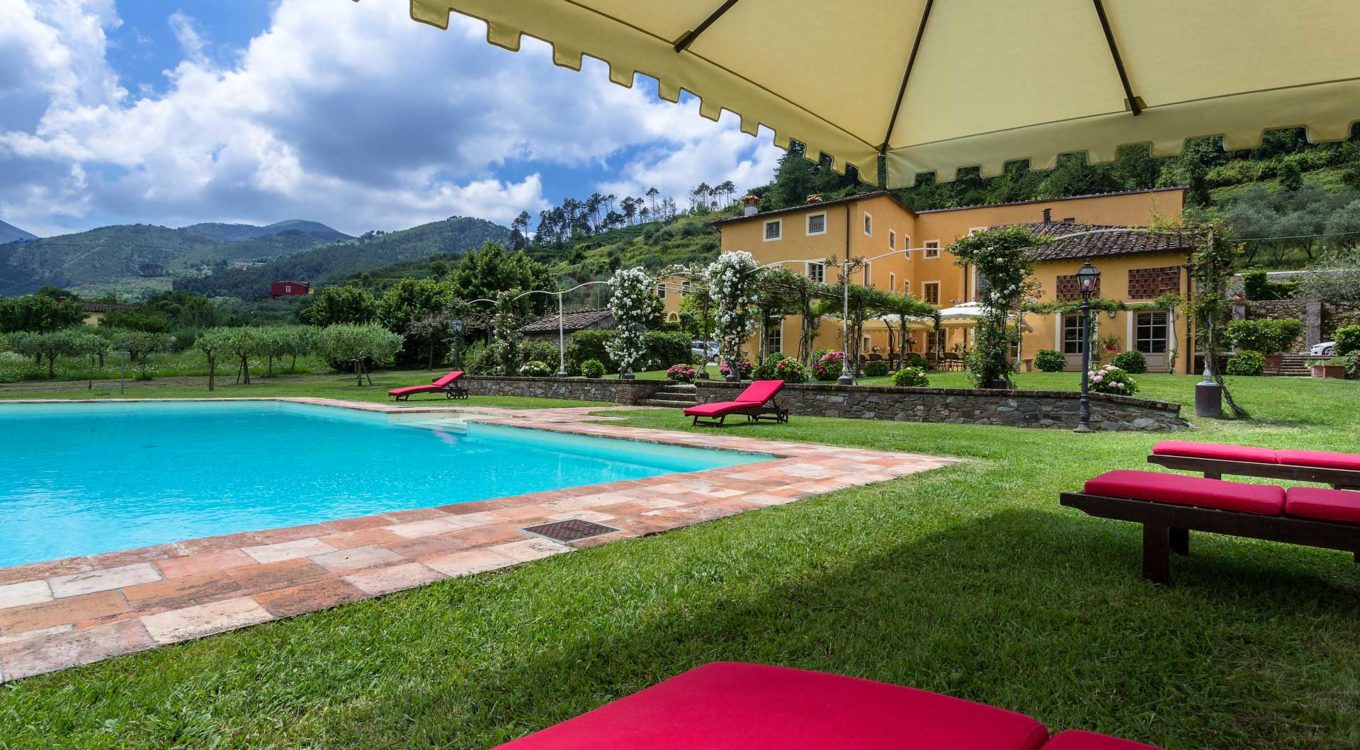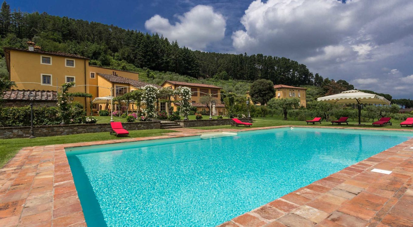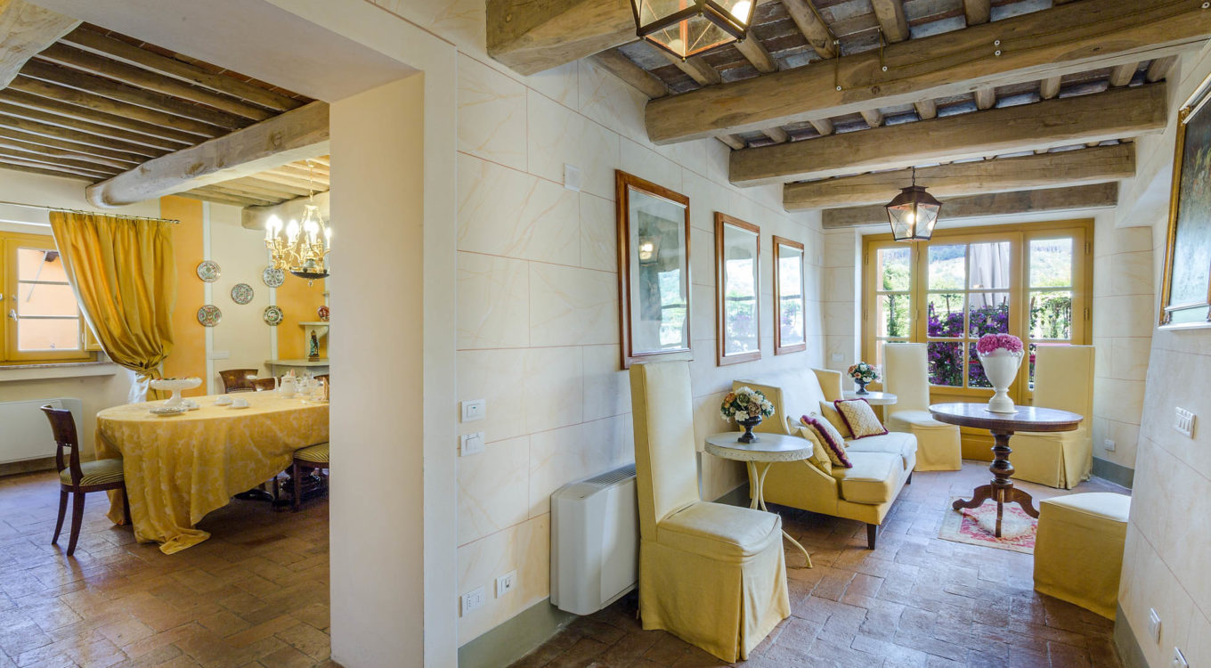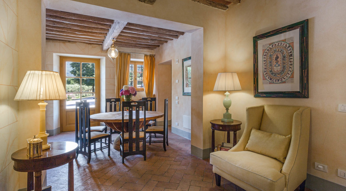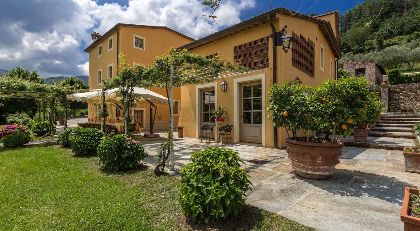 Short distance from the ancient town of Lucca, an elegant farmhouse immersed in the Tuscan countryside surrounded by olive groves.