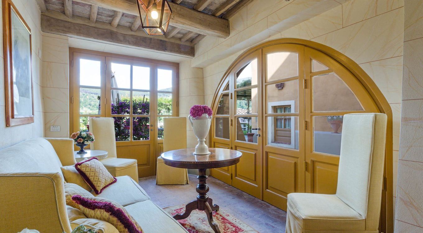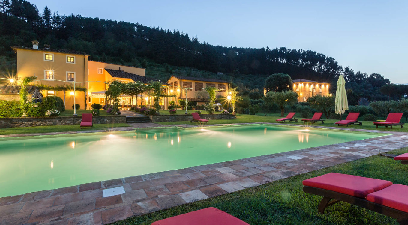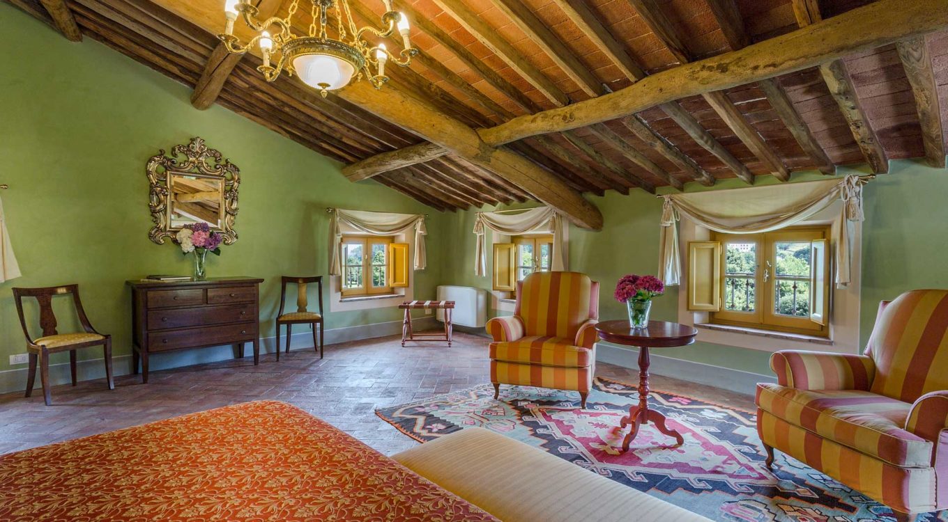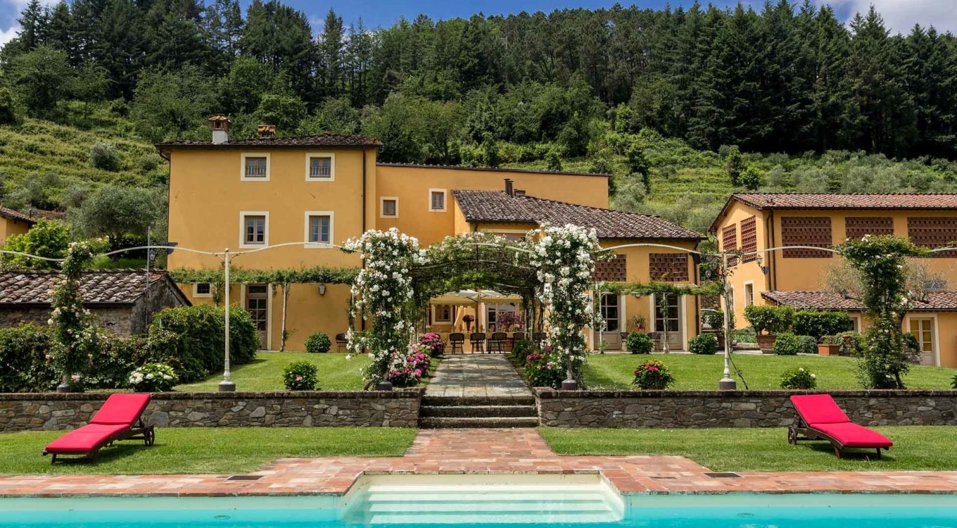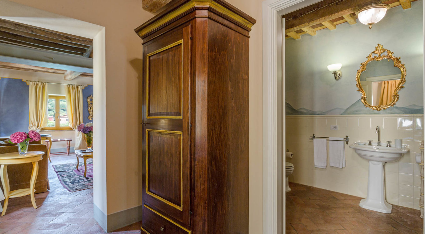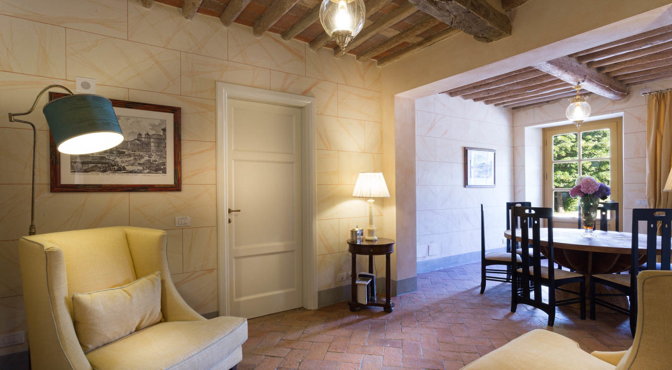 Short distance from the ancient town of Lucca, an elegant farmhouse immersed in the Tuscan countryside surrounded by olive groves.