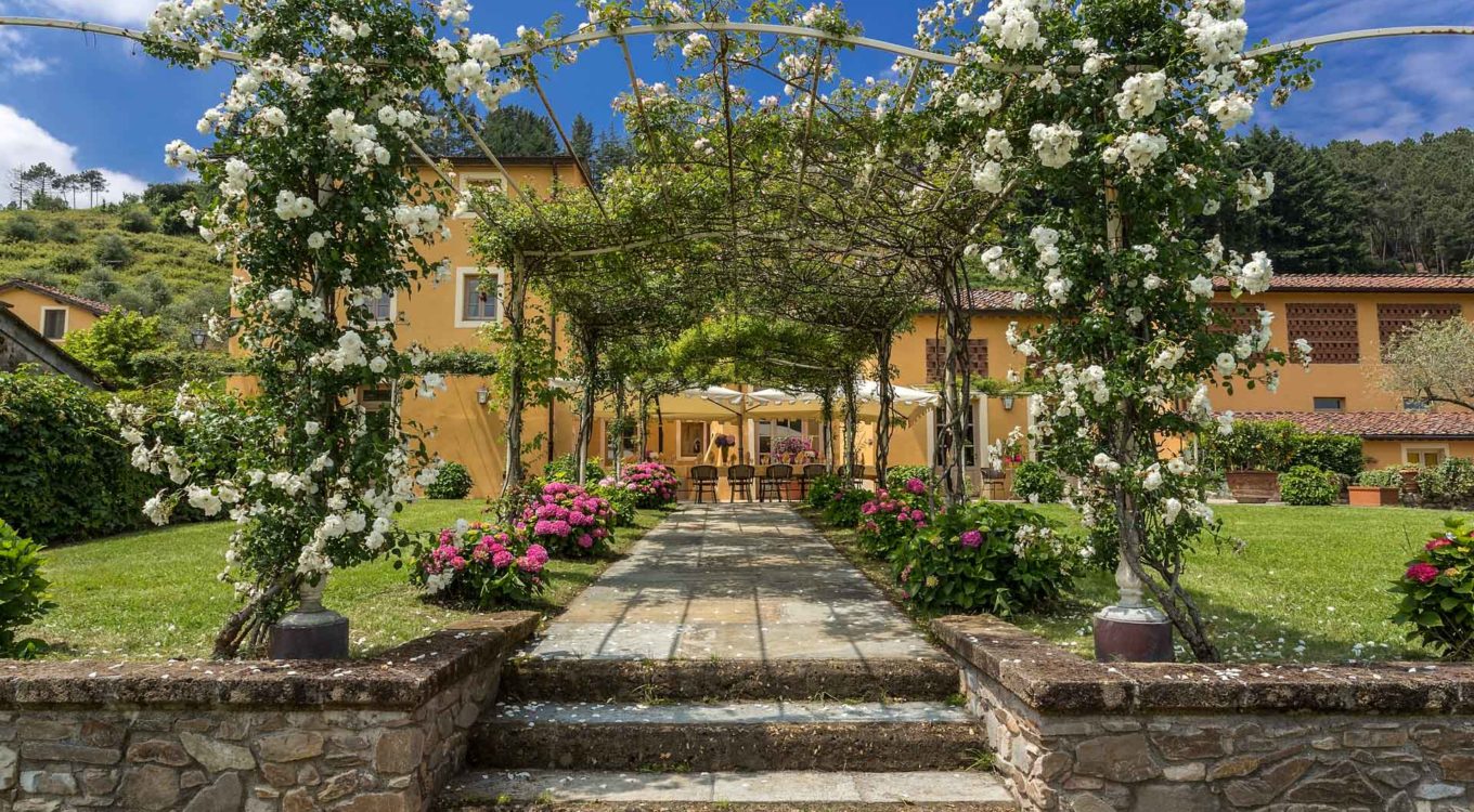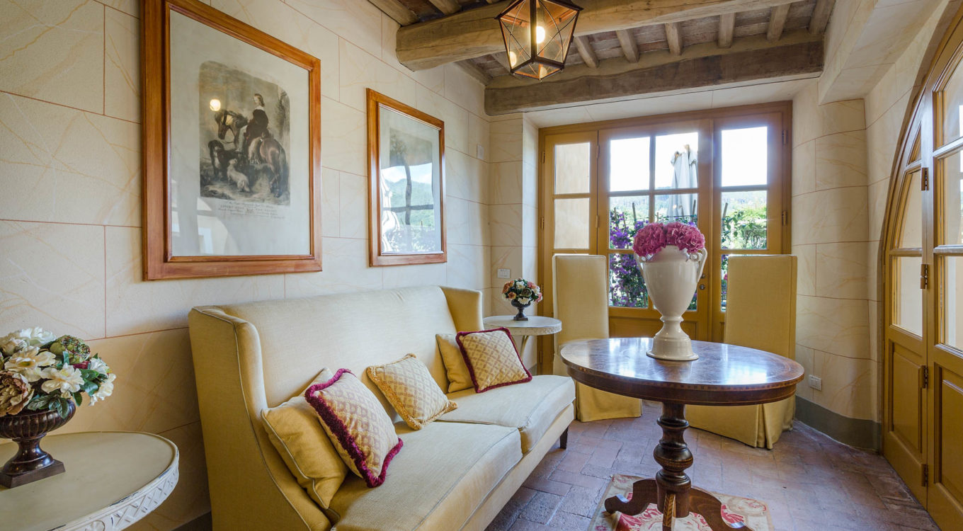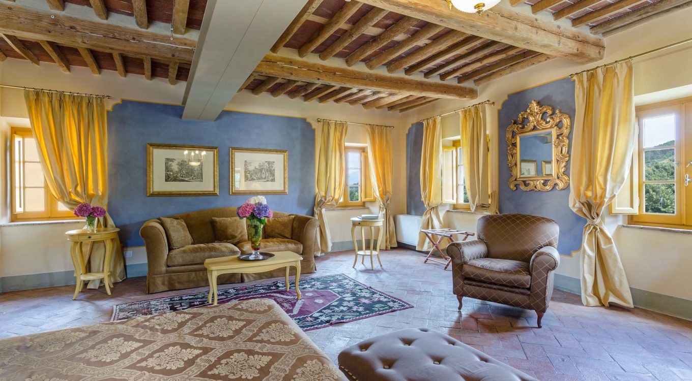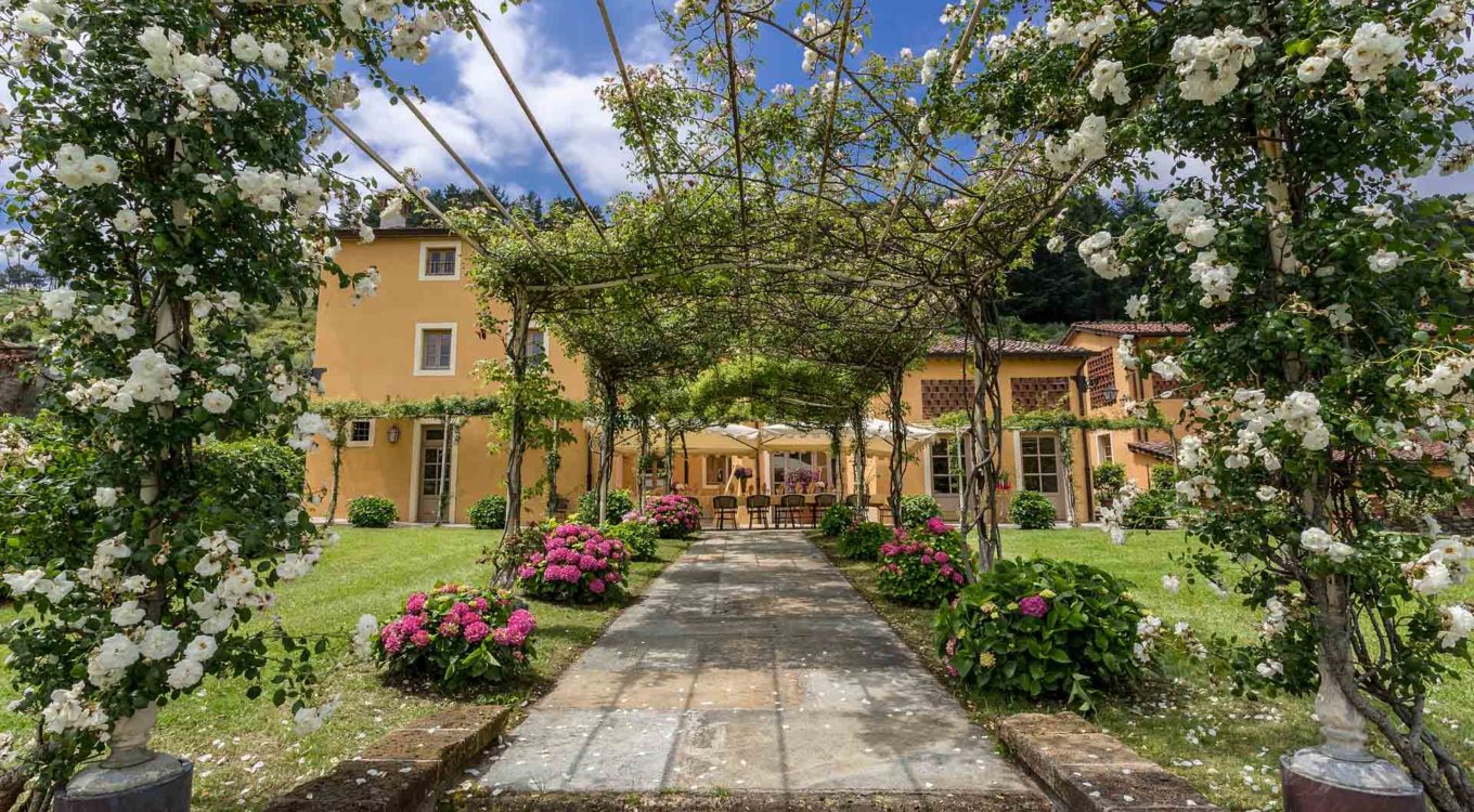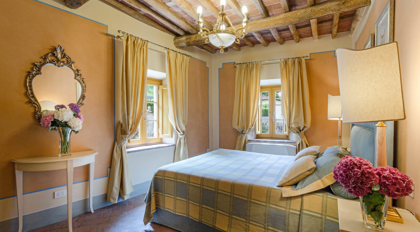 Short distance from the ancient town of Lucca, an elegant farmhouse immersed in the Tuscan countryside surrounded by olive groves.