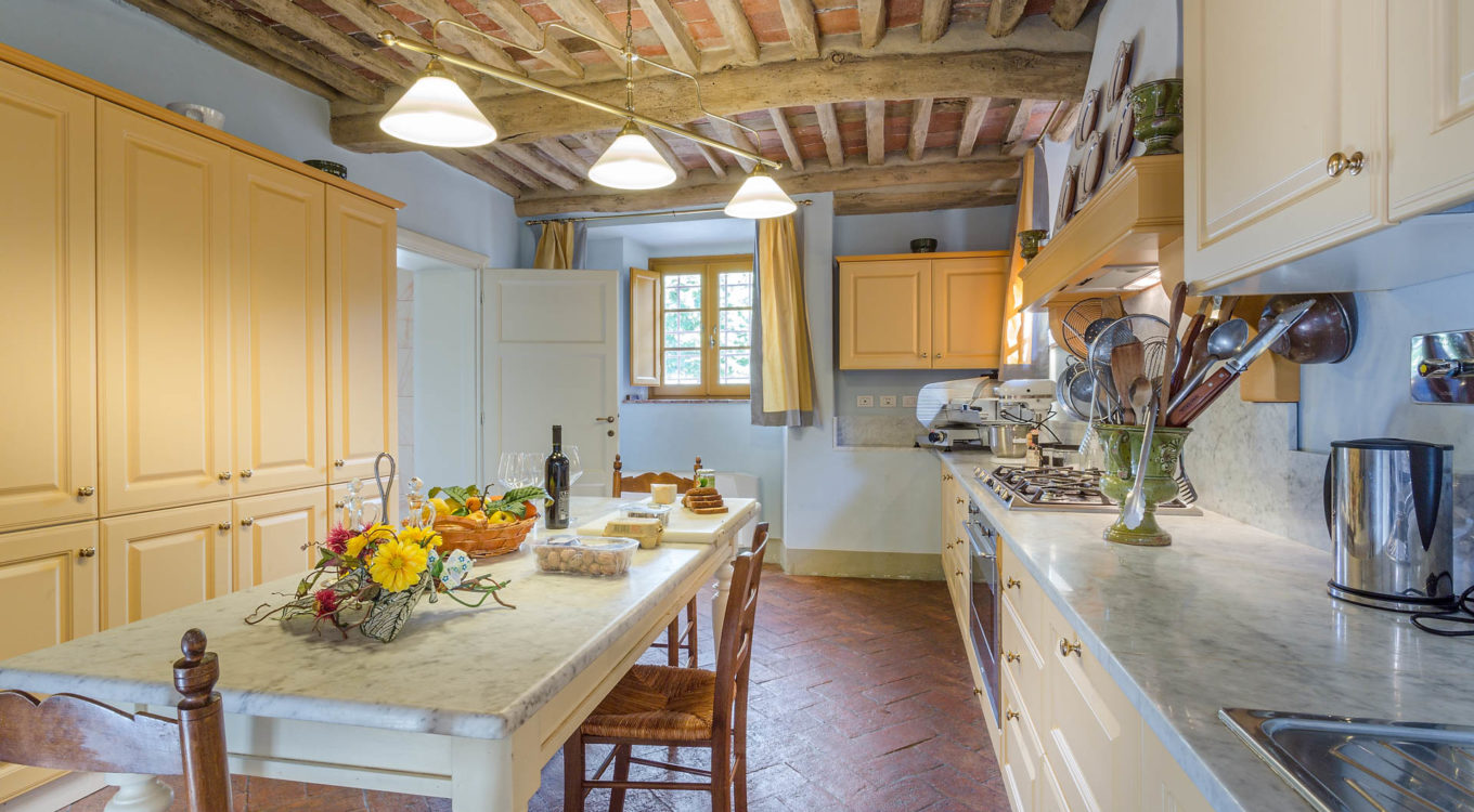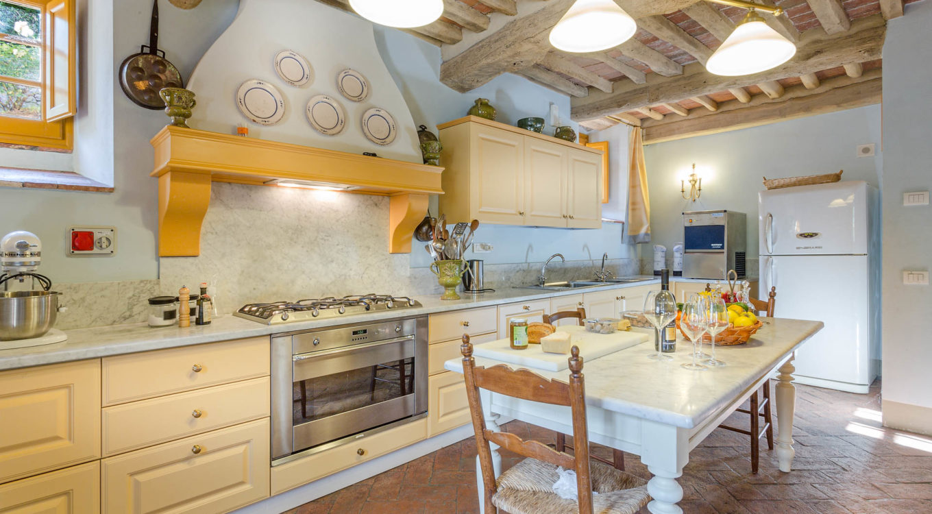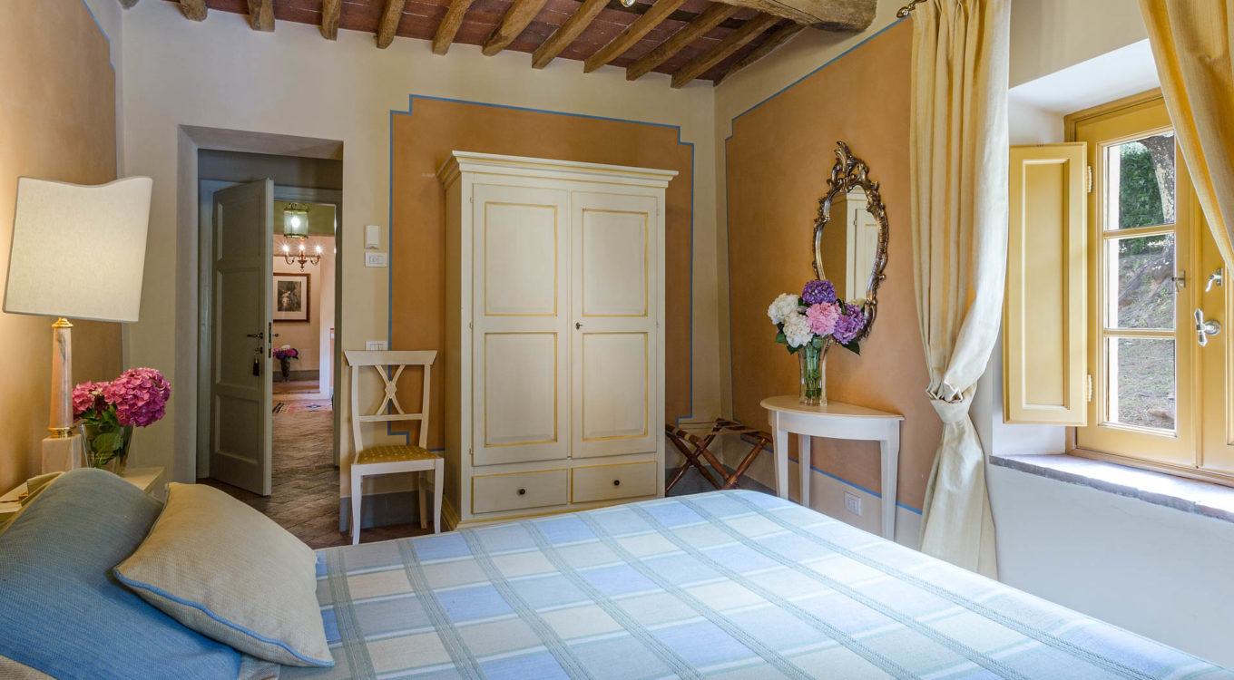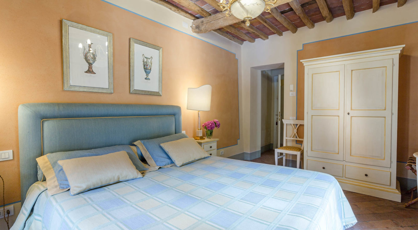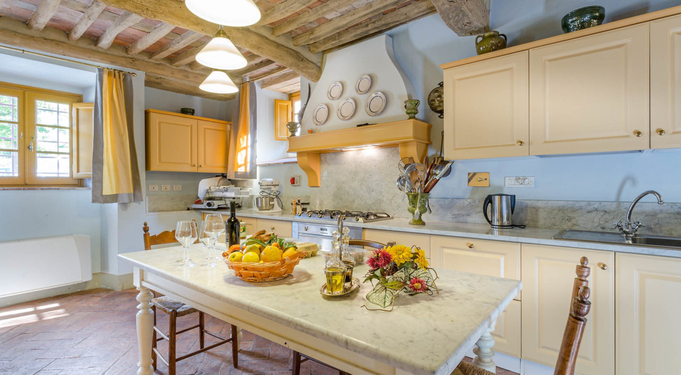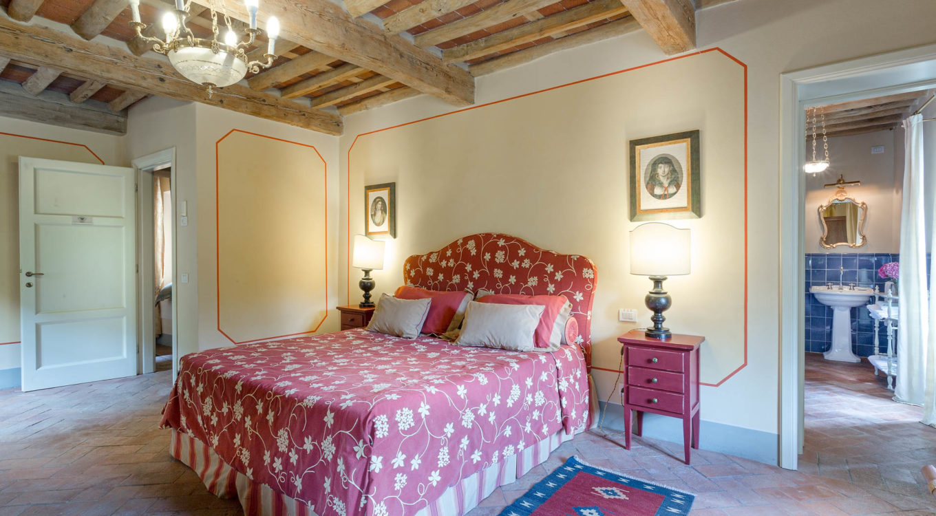 Indoors the farmhouse has kept the typical Tuscan flair: wooden beamed ceilings, terracotta tiled floors and a traditional fully equipped Tuscan kitchen. At the same time the Villa offers all top quality modern comforts: sat.TV, wifi, air conditioning and centralized music system. Every detail has been carefully arranged to make your stay truly unique! On the first and second floors there are 8 splendid bedrooms with en-suite bathrooms, a safe and air conditioning. 6 bedrooms have king size beds, one has a french bed and one two twin size beds, (can be united into one double).