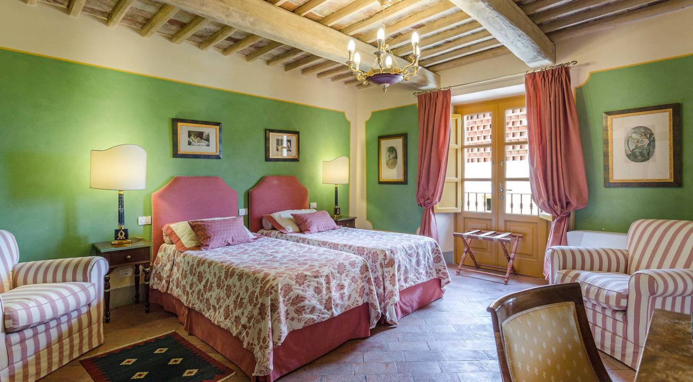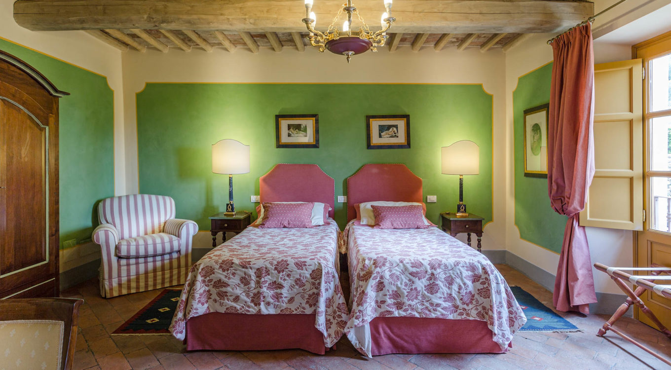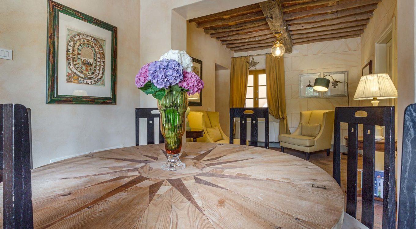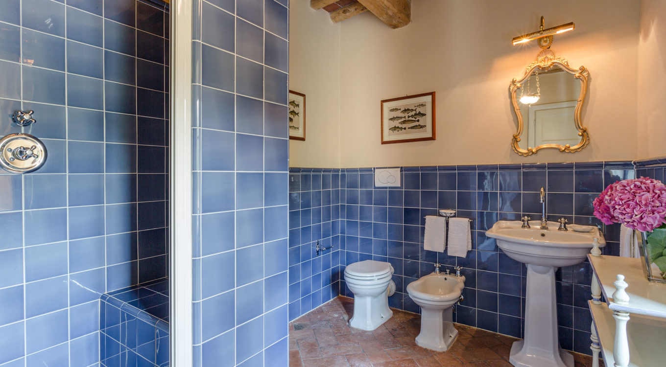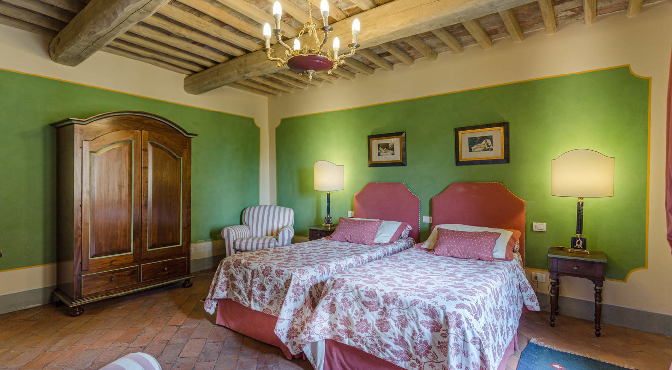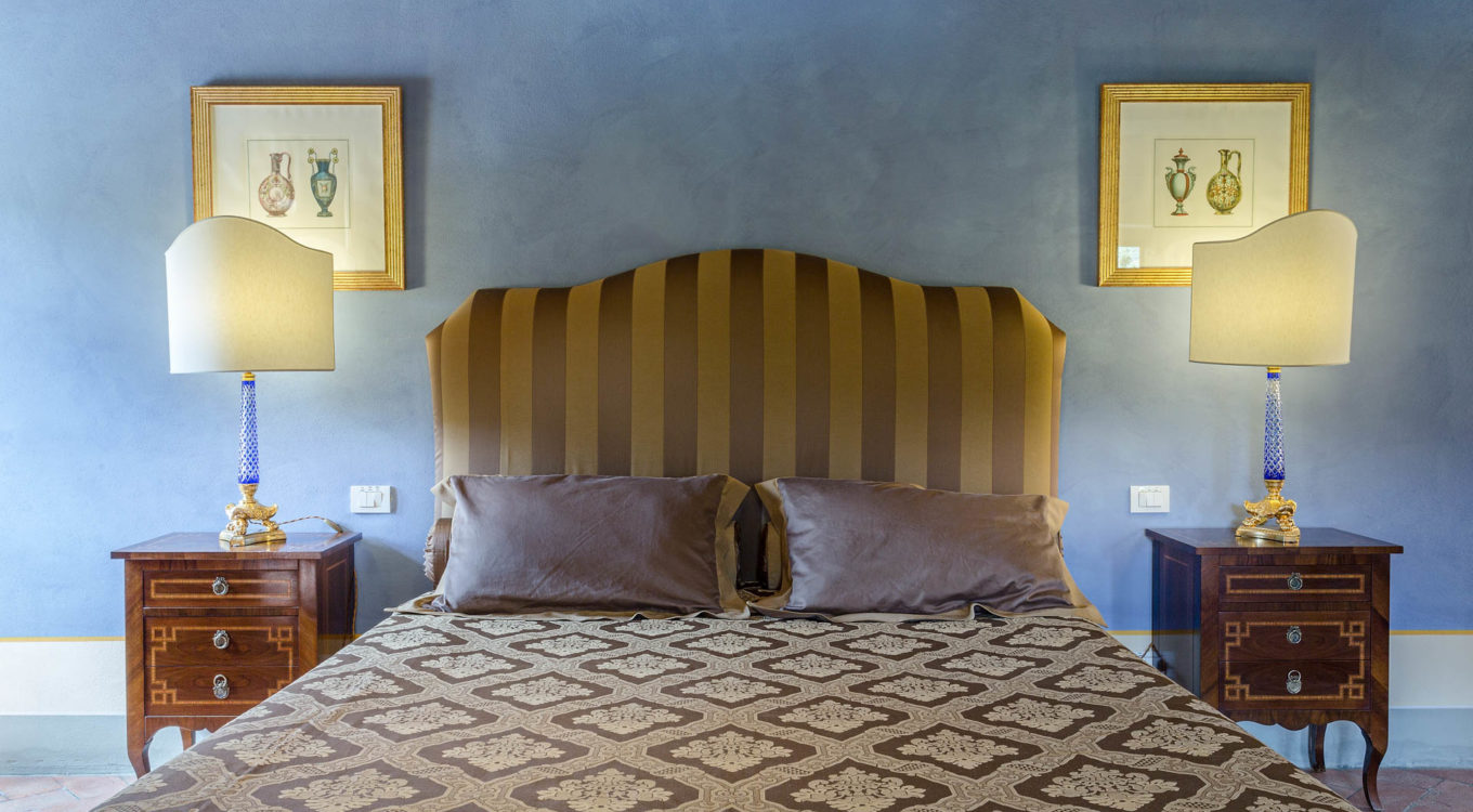 Indoors the farmhouse has kept the typical Tuscan flair: wooden beamed ceilings, terracotta tiled floors and a traditional fully equipped Tuscan kitchen. At the same time the Villa offers all top quality modern comforts: sat.TV, wifi, air conditioning and centralized music system. Every detail has been carefully arranged to make your stay truly unique! On the first and second floors there are 8 splendid bedrooms with en-suite bathrooms, a safe and air conditioning. 6 bedrooms have king size beds, one has a french bed and one two twin size beds, (can be united into one double).