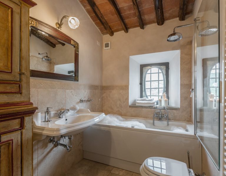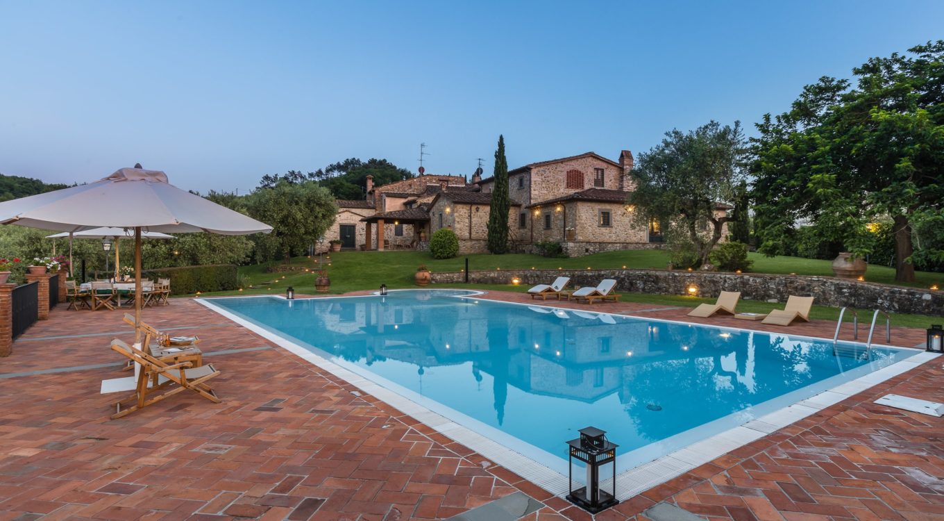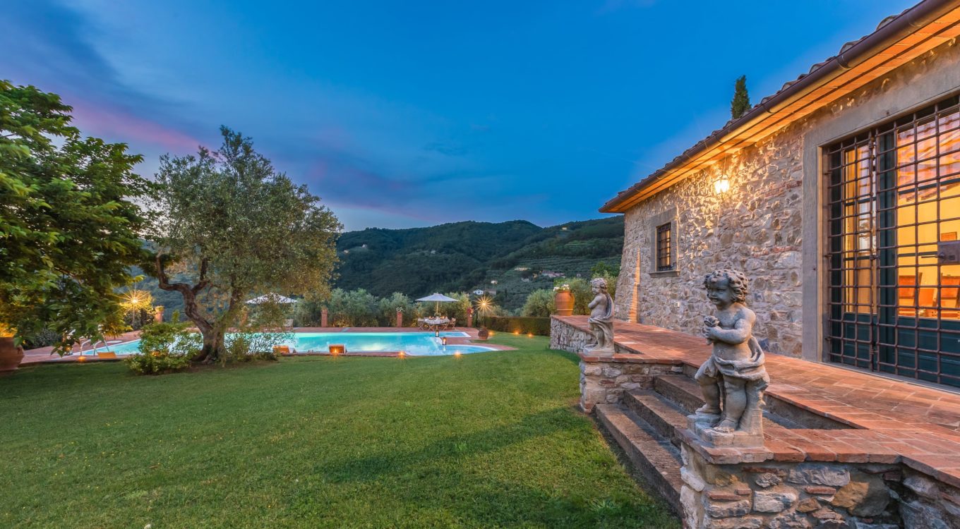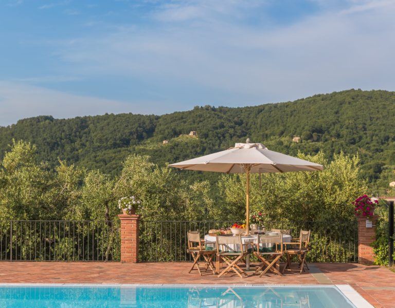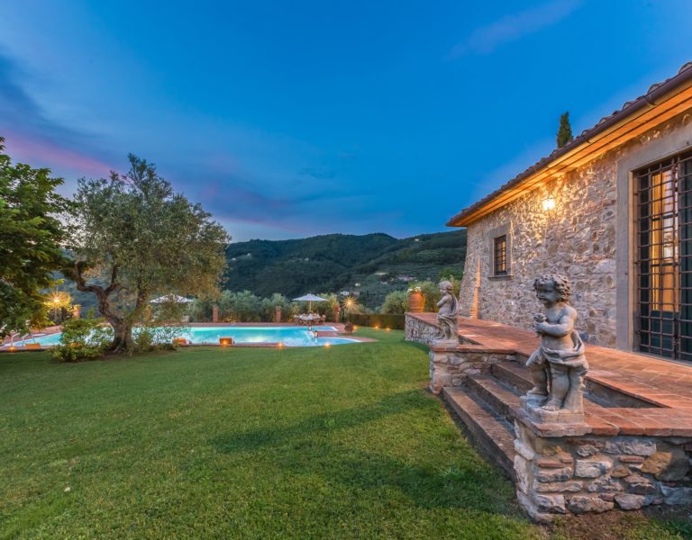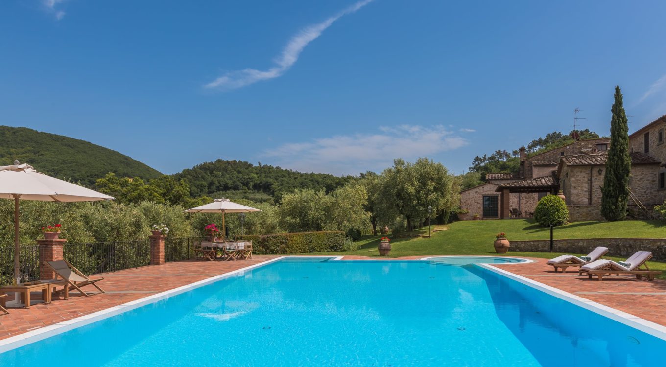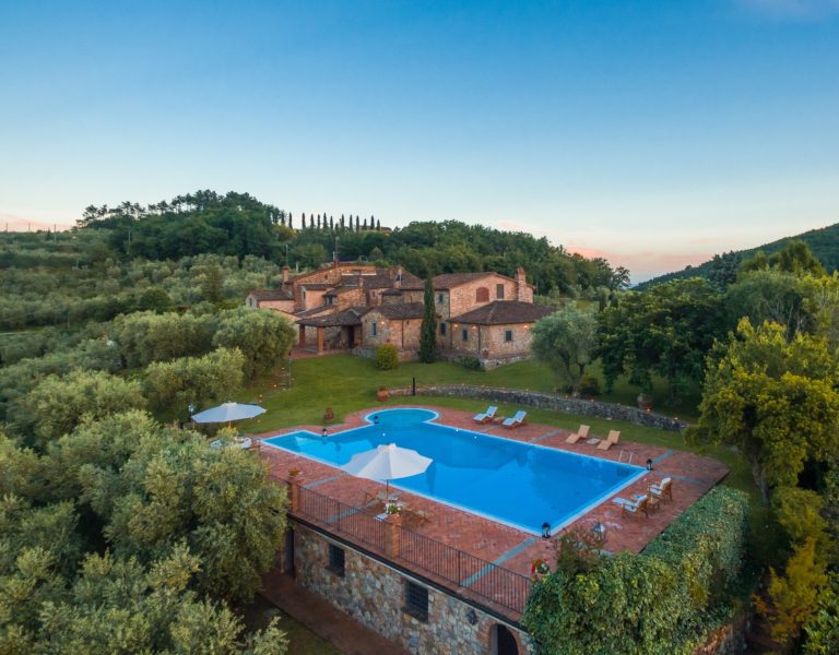 Villa Dell’Angelo is a luxury villa in perfect Tuscan style, typical historical and refined in the smallest detailes. Located in the middle of the Tuscan hills, on the last western slopes of Mount Albano, approximately 250 mt. above sea level. Close to the most important cities as Florence, Lucca, Pisa, easily reachable with every mean of transport. The Swimming Pool (8 mt.×16 mt. and depth from 1.35 to 2,50 mt), is exclusive to the guests of Dell’Angelo. It is an infinity pool with a very large hydromassage area for 8 guests. Under the pool there is a large changing room with 2 showers and WC.