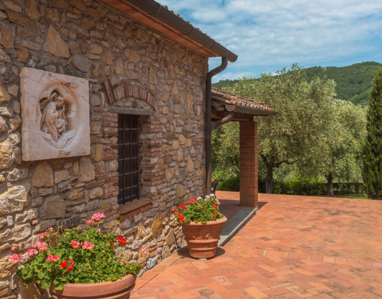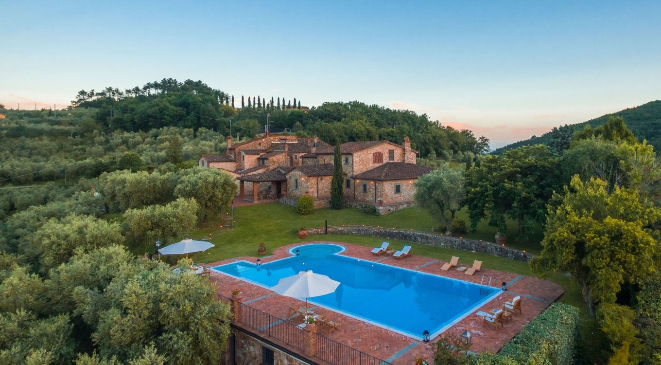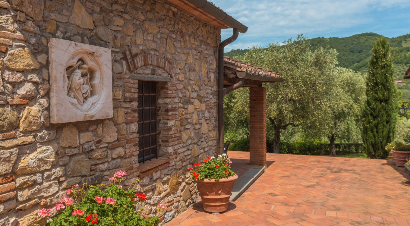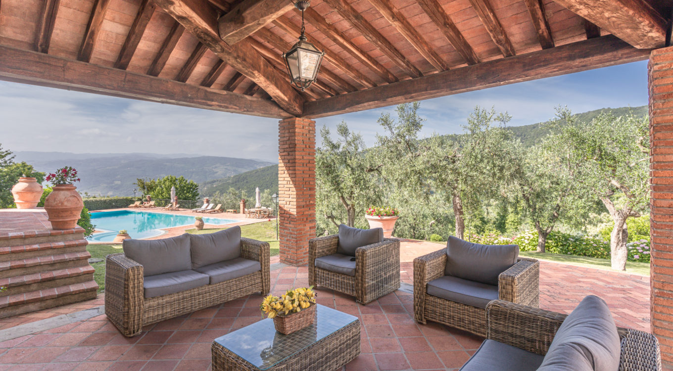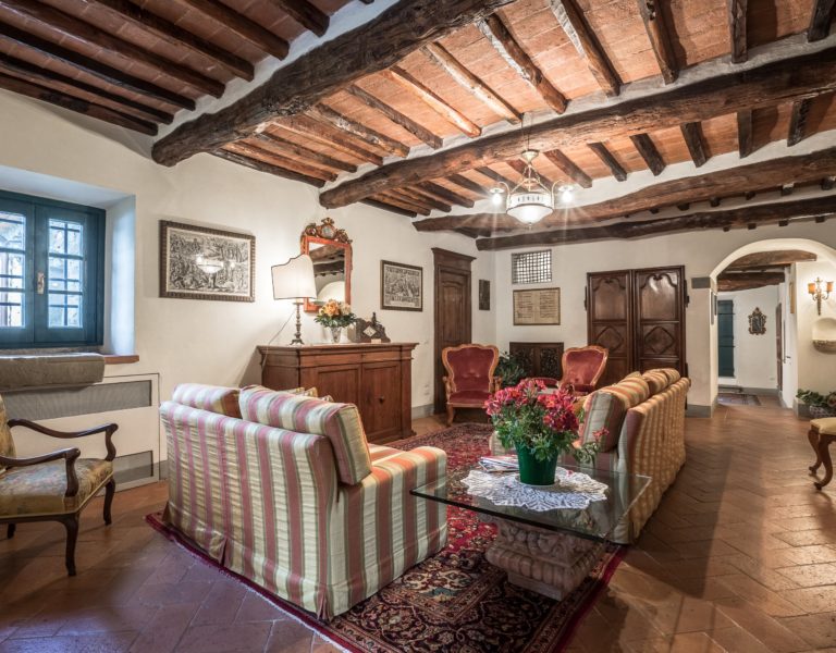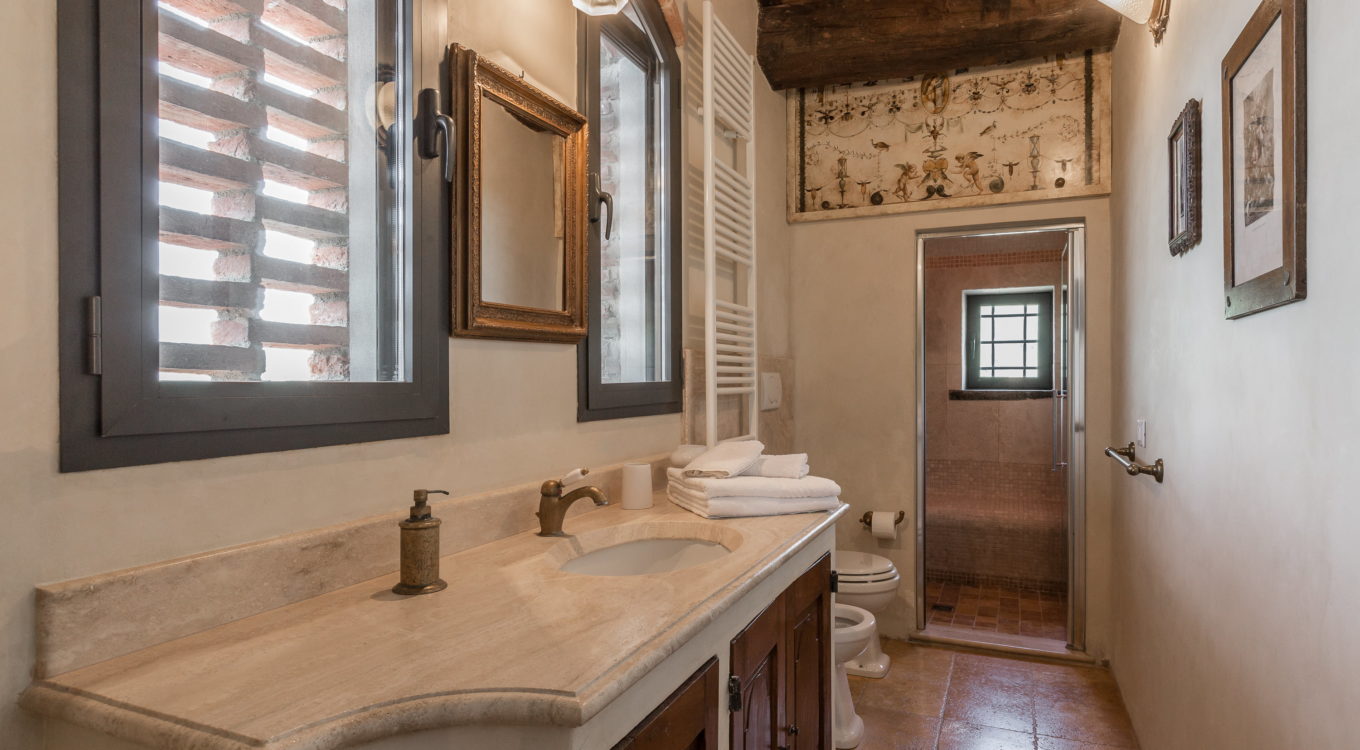 Villa Dell’Angelo is a luxury villa in perfect Tuscan style, typical historical and refined in the smallest detailes. Located in the middle of the Tuscan hills, on the last western slopes of Mount Albano, approximately 250 mt. above sea level. Close to the most important cities as Florence, Lucca, Pisa, easily reachable with every mean of transport. The Swimming Pool (8 mt.×16 mt. and depth from 1.35 to 2,50 mt), is exclusive to the guests of Dell’Angelo. It is an infinity pool with a very large hydromassage area for 8 guests. Under the pool there is a large changing room with 2 showers and WC.