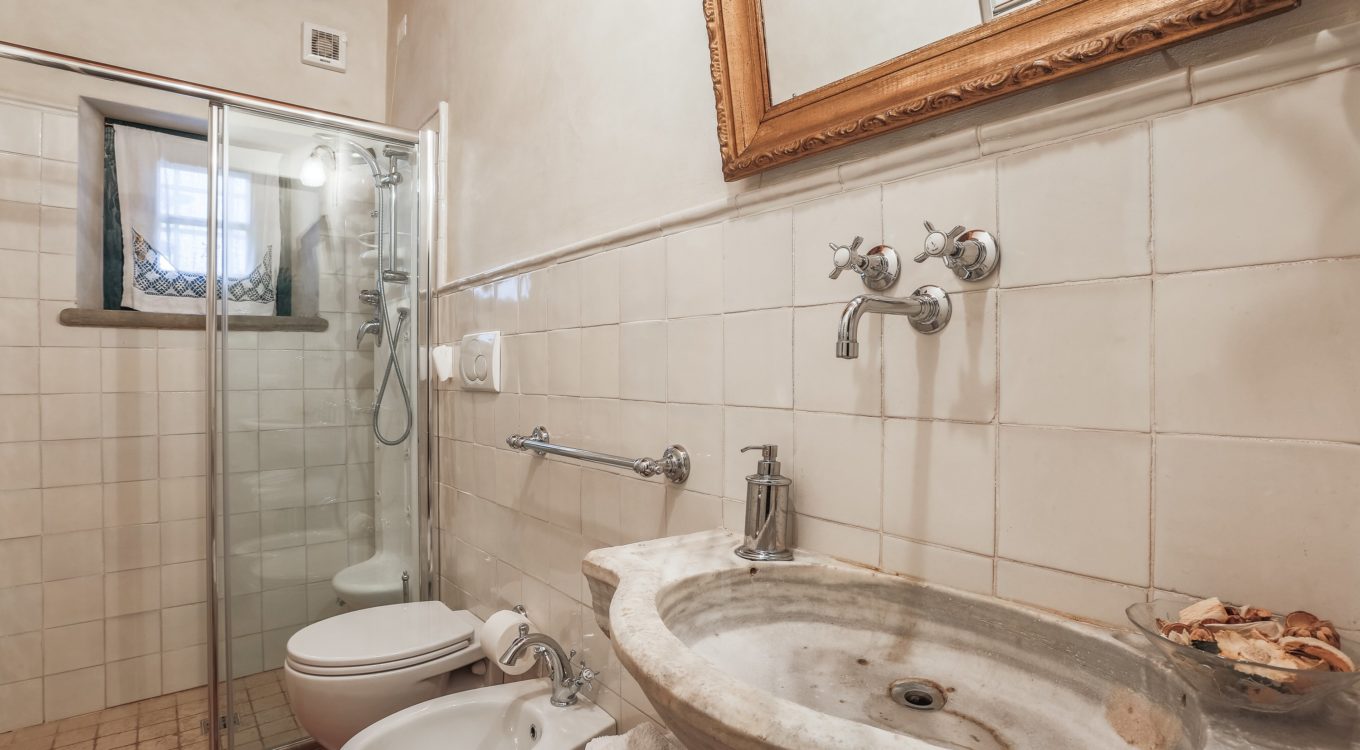 For almost 50 years the owners have cultivated their passion for antiques and have furnished the villa with pieces acquired from antique dealers, auction sales or antique fairs. Some of the more particular pieces are the beautiful doors in each room. Particularly the two doors in the central lounge and the one of the green bedroom on ground floor. All of 17th cent. The kitchen has a double marble sink, 250 years old and a collection of 12 ceramic tiles with zodiac symbols of the beginning of last century, over the stove.