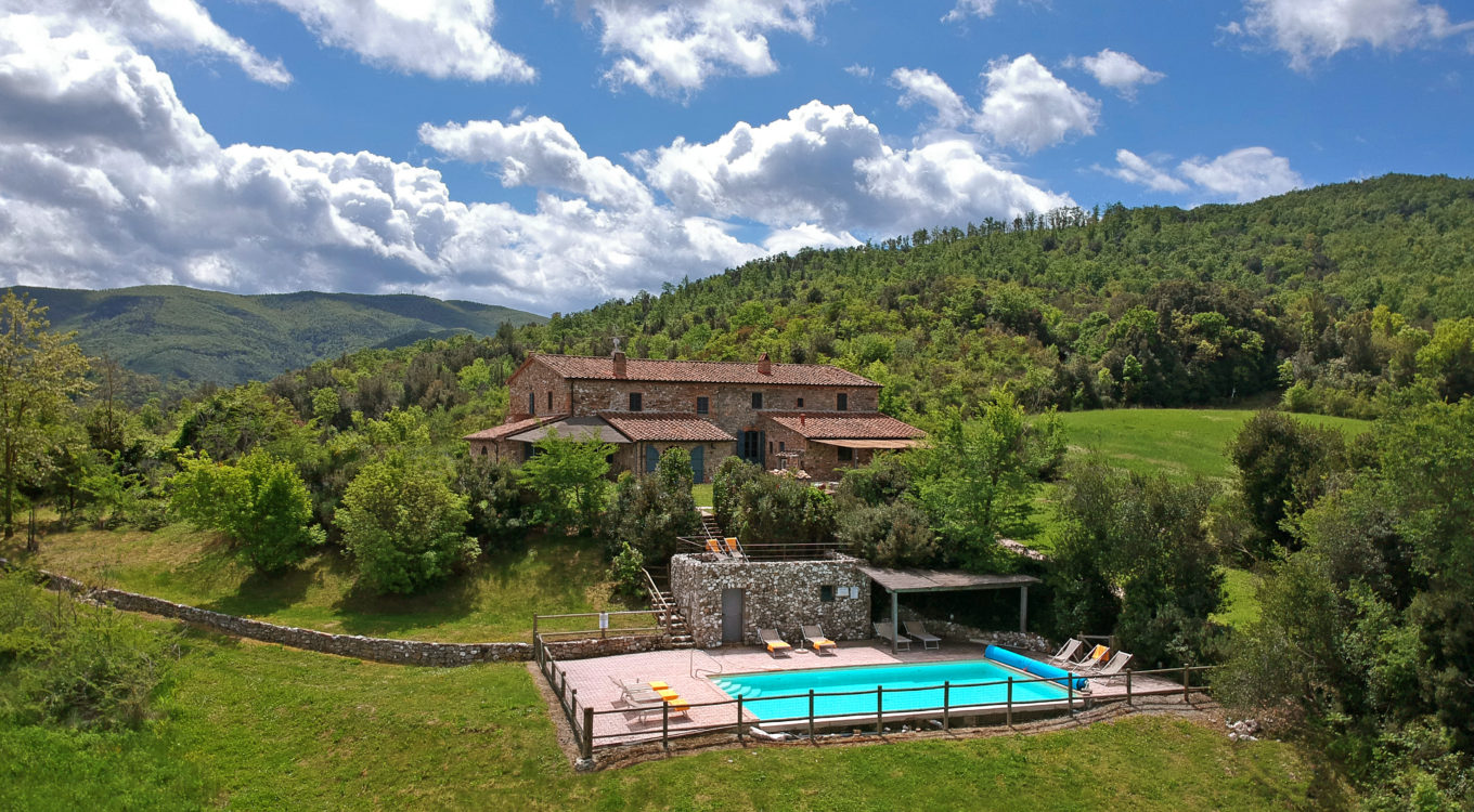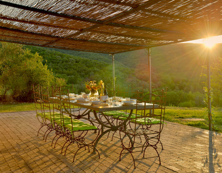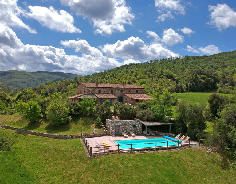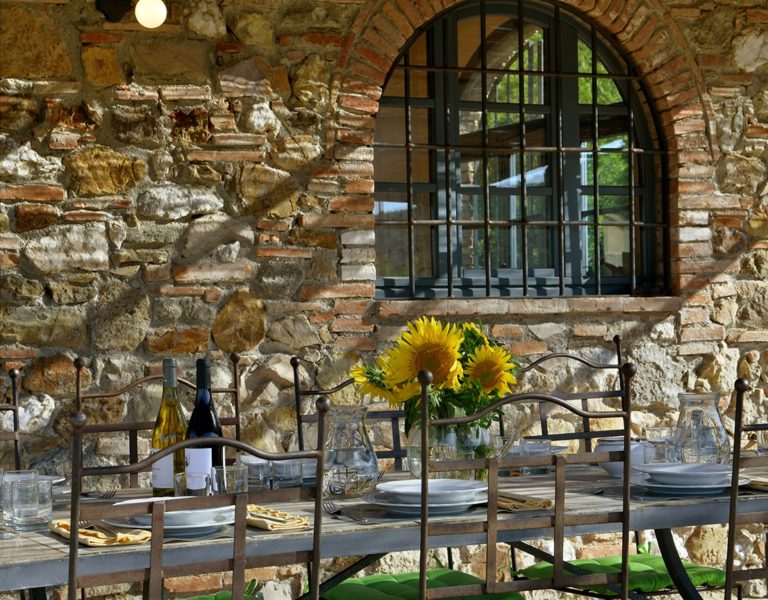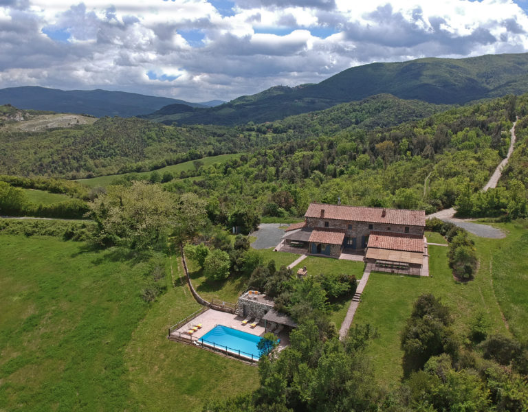 The villa’s panoramic site offers magnificient views from the pool and from the patio. All the rooms on the ground floor lead into the garden which surrounds the house. There are two private parking areas, two dining areas with large tables, stone BBQ, a spelndid infinity pool: everything in fact to enable you to spend relaxed evenings with friends, perhaps with a Florentice steak and sipping a glass of good Tuscan red wine.