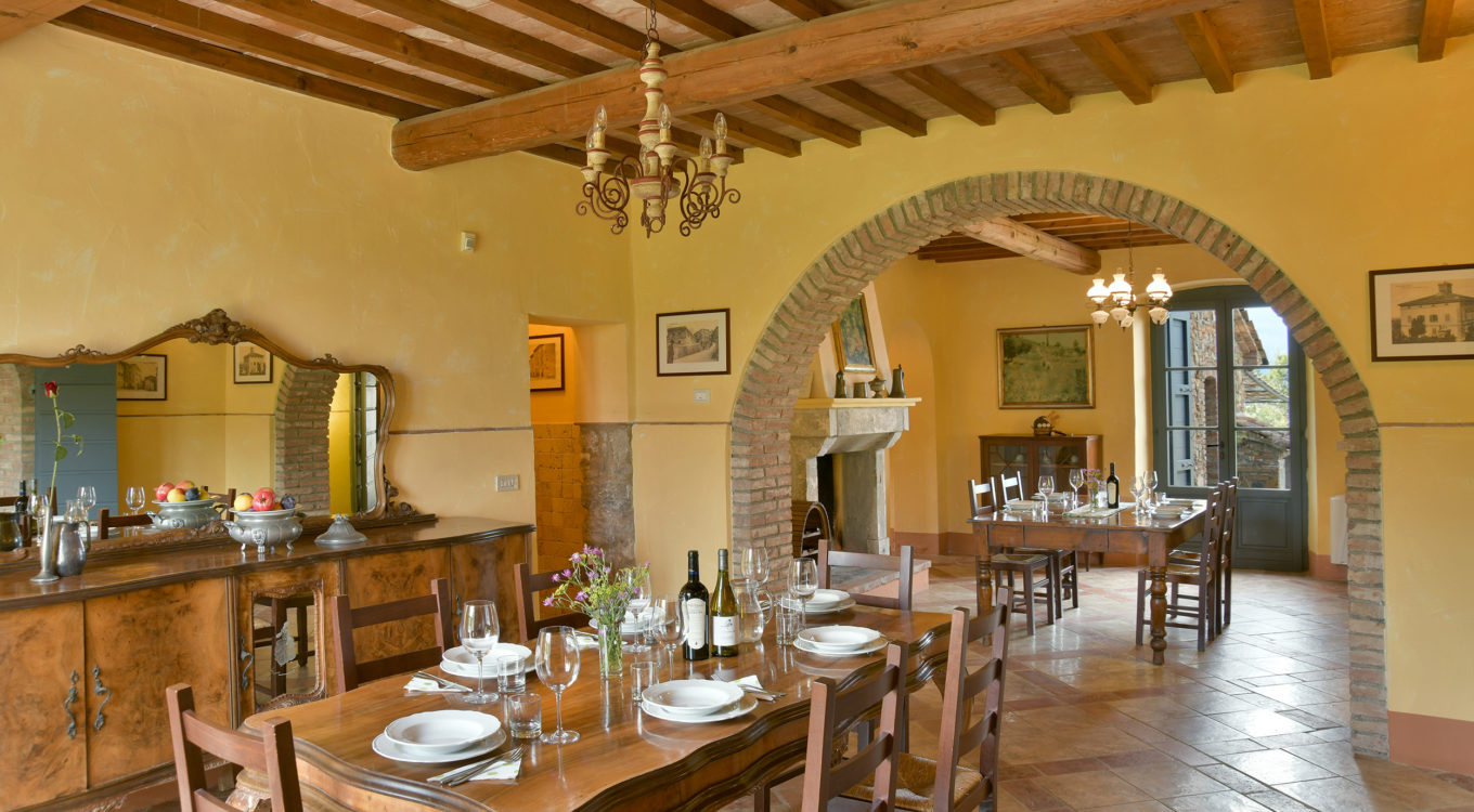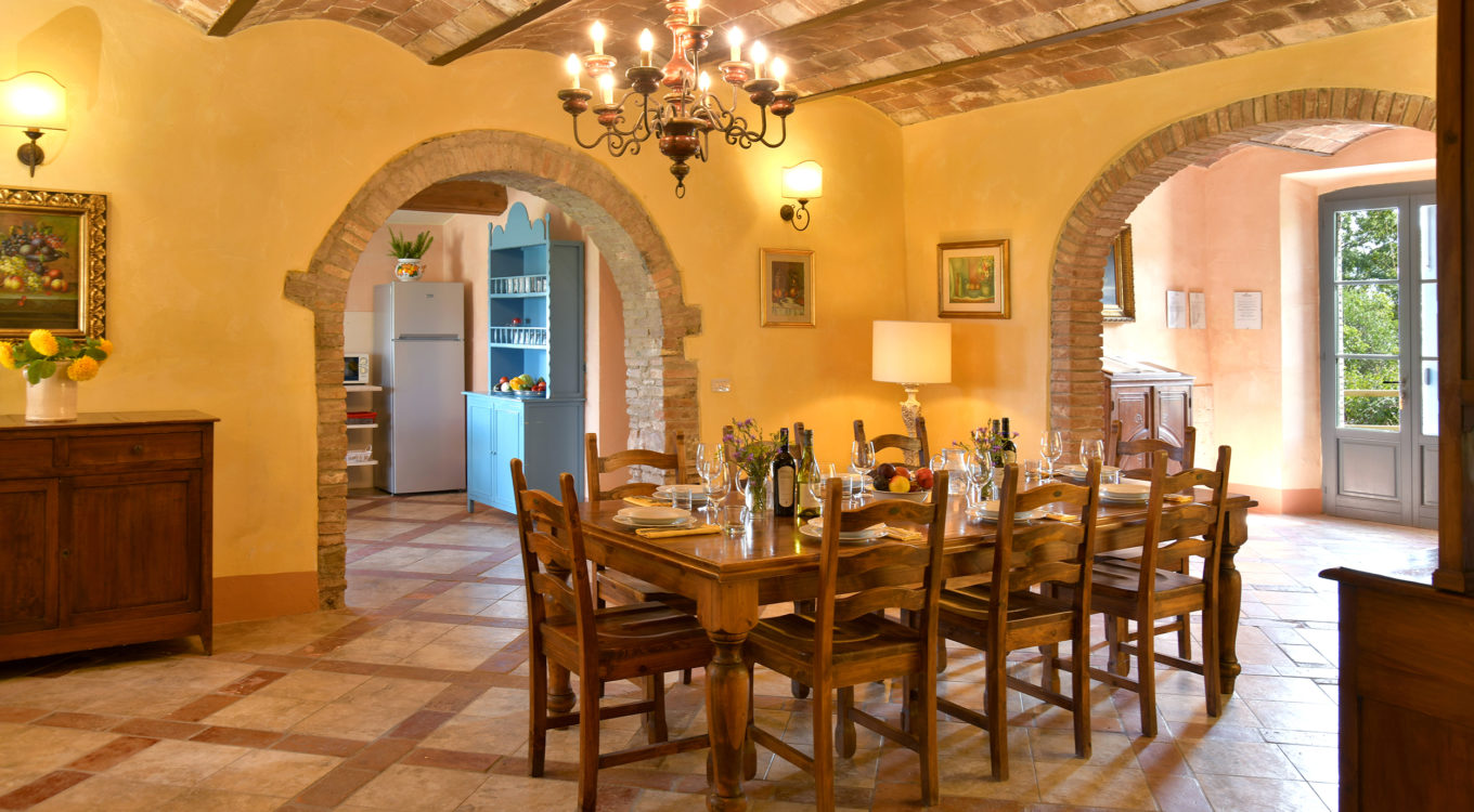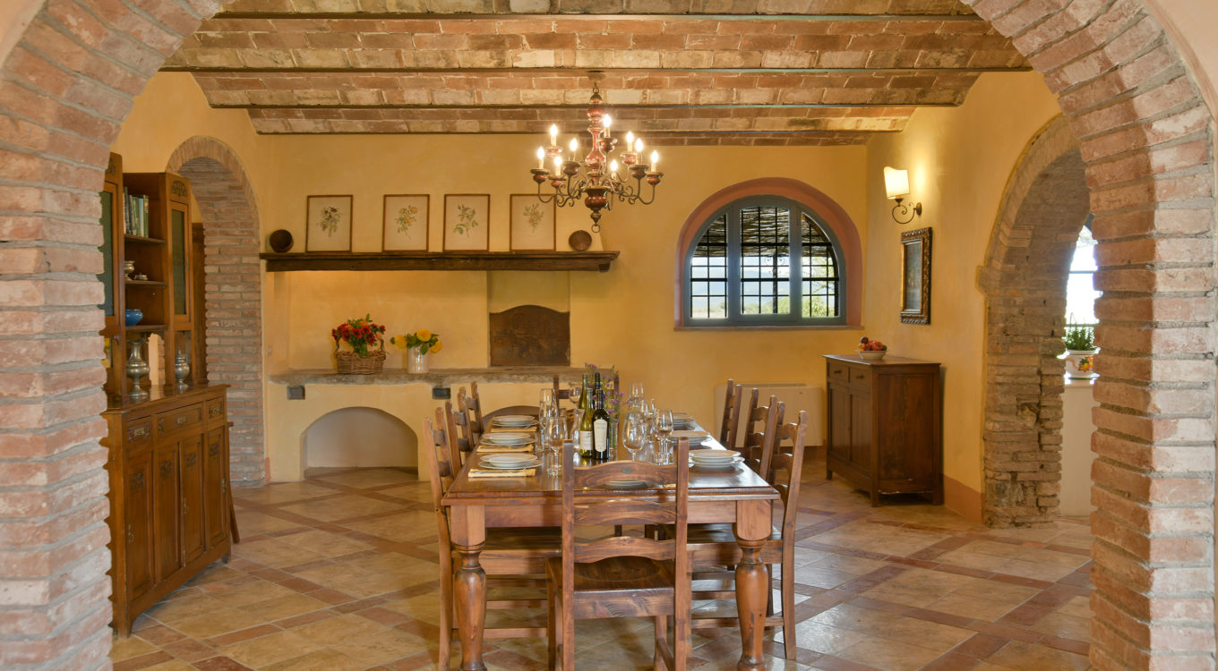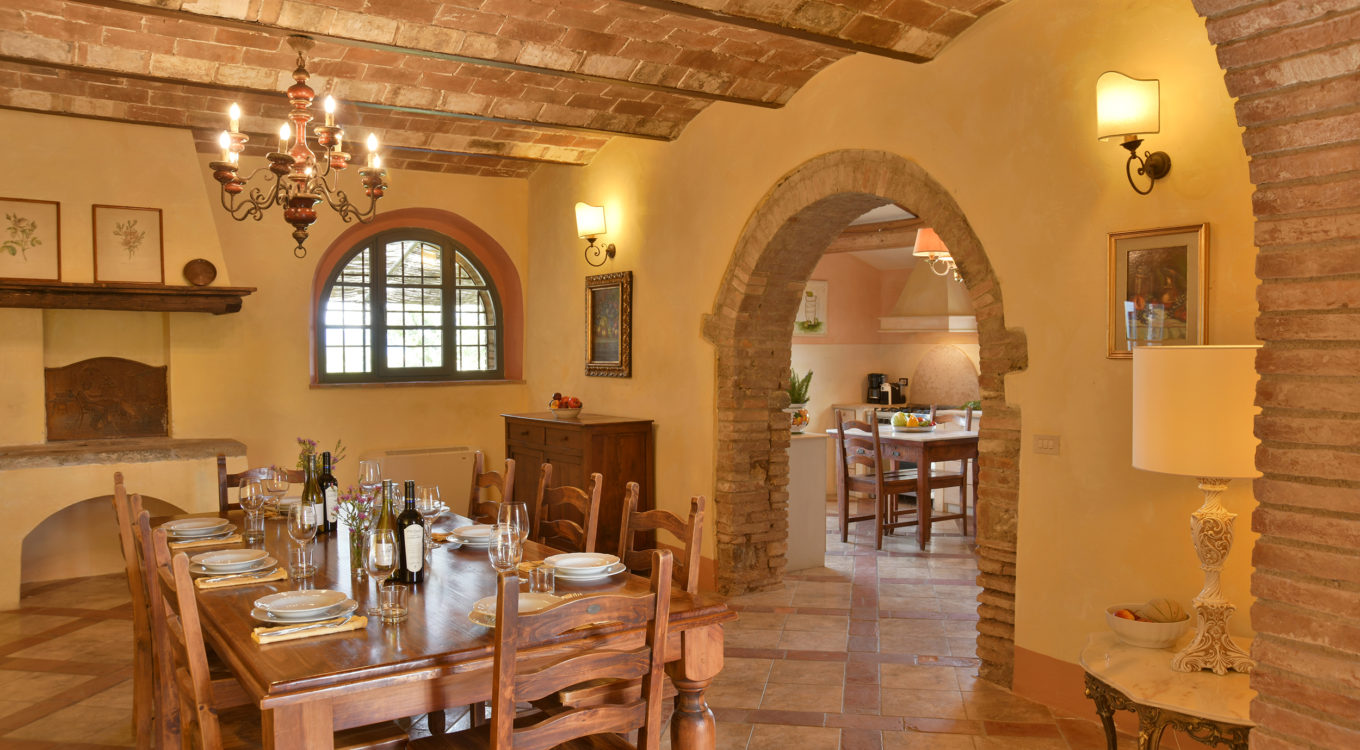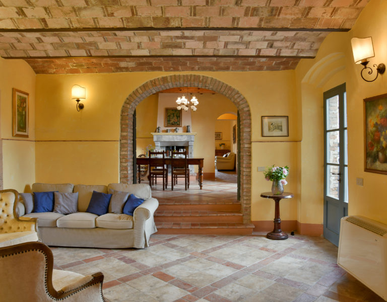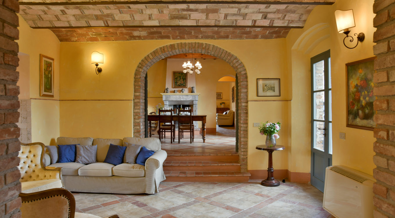 Interiors are extremely well presented in the original Tuscan architecture with arches, vaulted ceilings and colors which render the home warm and welcoming.