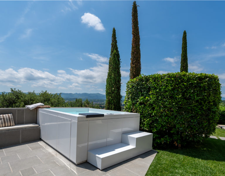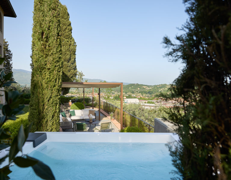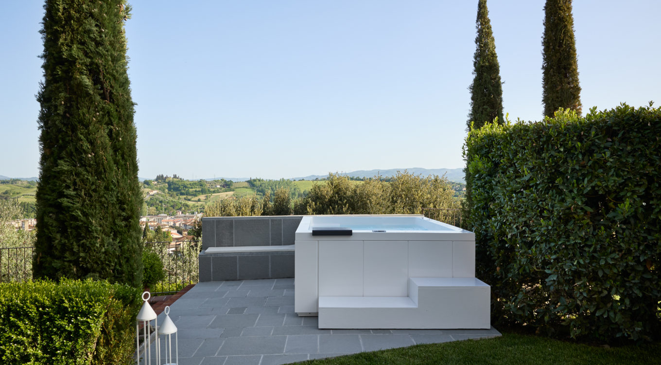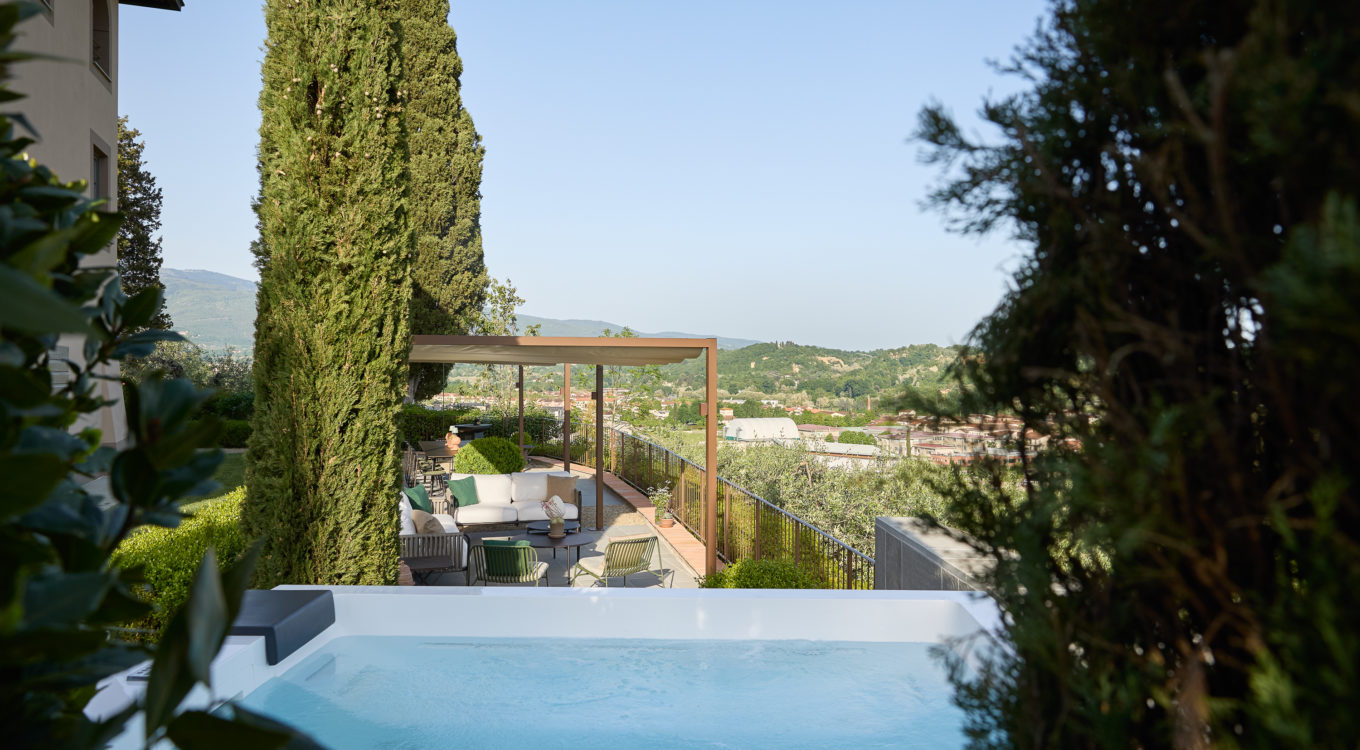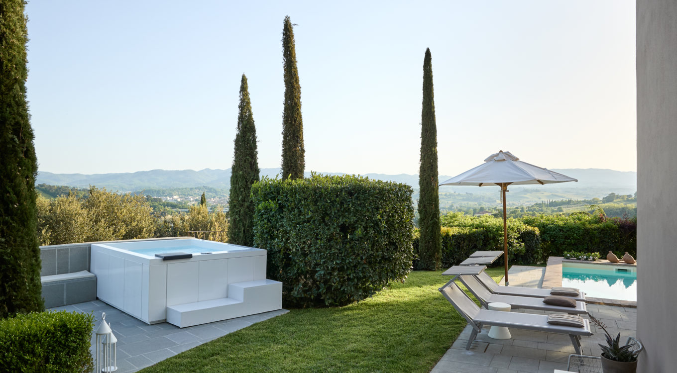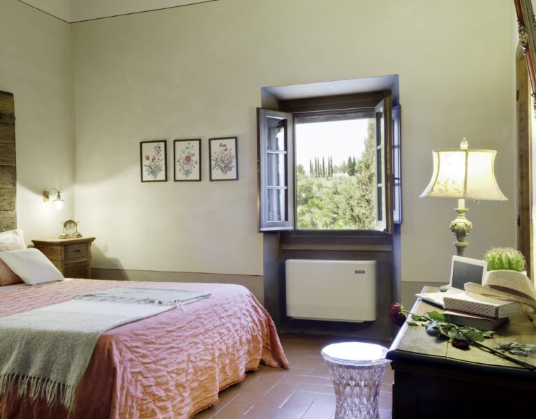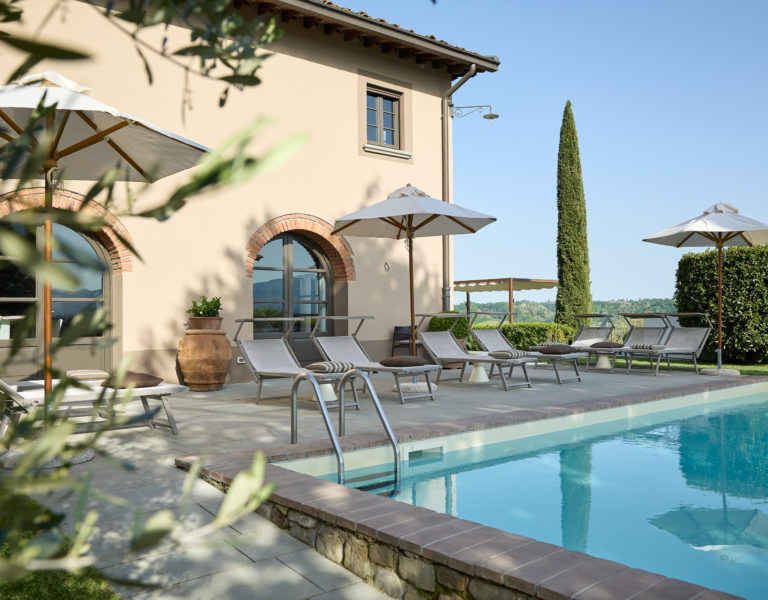 Villa IL COLTO is a beautiful villa on three floors, counts 6 bedrooms, 3 doubles and 3 twins (one of twins can be made double), and 5 bathrooms, located in the countryside just outside of a small town. Due to its location on the top of a small hill, it is thought that the villa was once a look out tower for a nearby castle. It was later transformed into a family villa and was once owned bythe renowned Medici family from Florence. It is a perfect base, for exploring Florence (35 mins) and Chianti. It is also within easy reach of and Arezzo (30 mins) and Siena (1 hour). The villa is set in a garden with its own heated private pool, hot tub spa and panoramic terracev with views to the surrounding countrysideand towards the local town, which has avariety of local shops as well as a supermarket, restaurants and bars (1km).