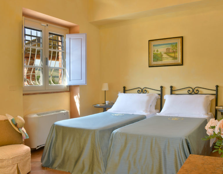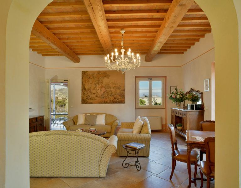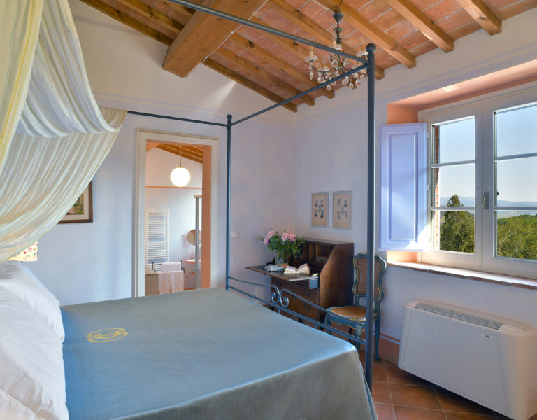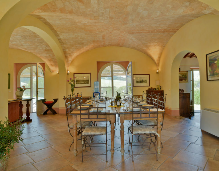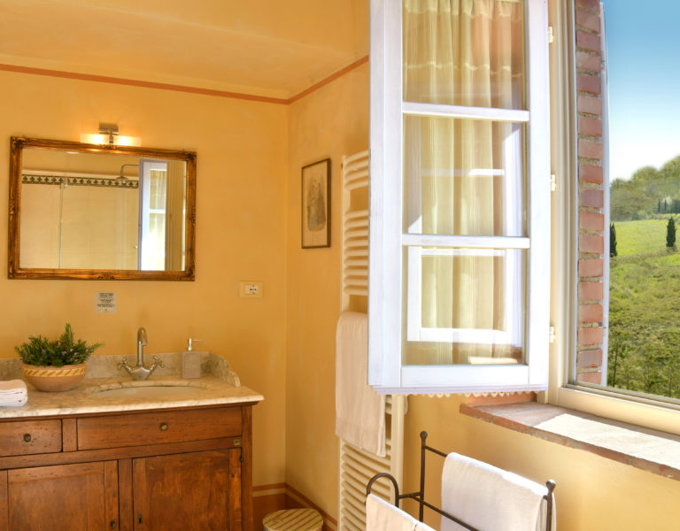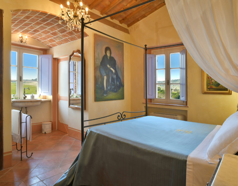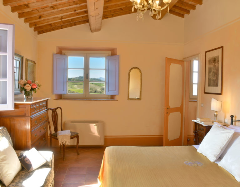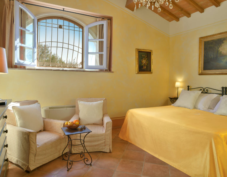 All windows allow you to admire the enchanting Tuscan countryside and it will seem to you that the colors of the countryside are all in one with the colors of this wonderful villa. Try and think of the quiet of an unlimited field of wheat…Think of its colors that will become part of the tones of ocra of your room…Try to be the protagonist of this Tuscan magic!
