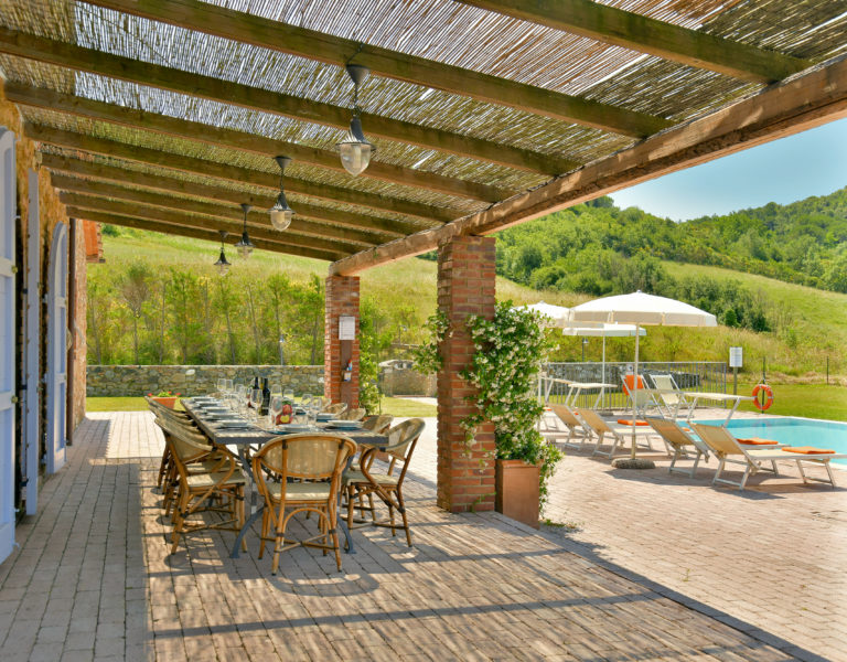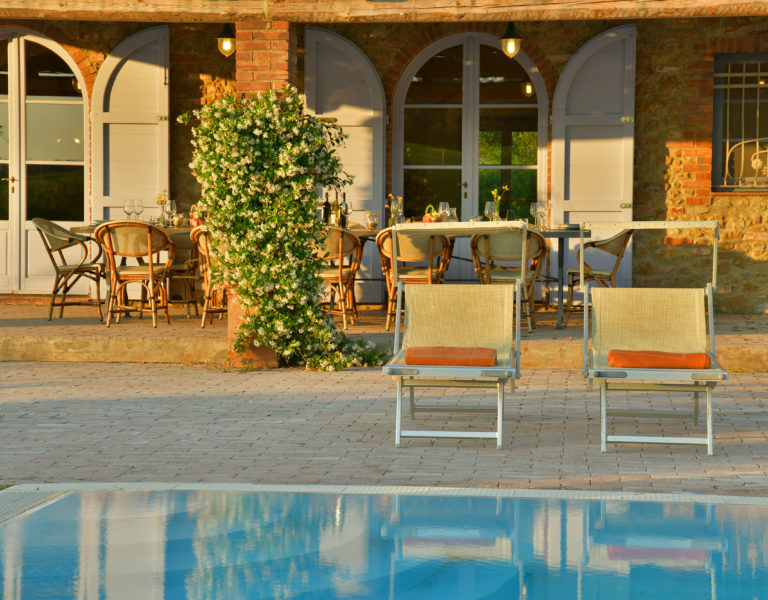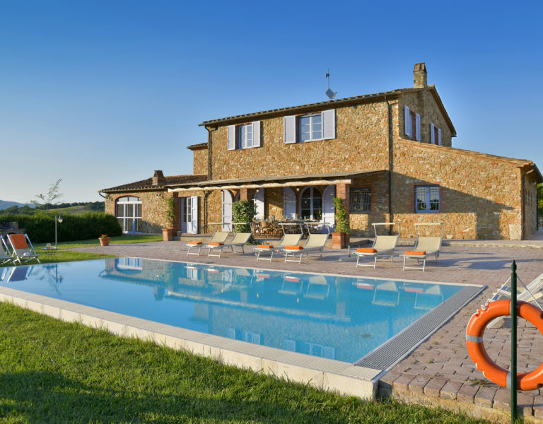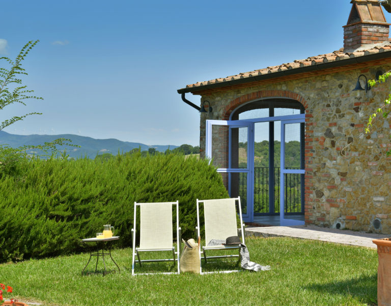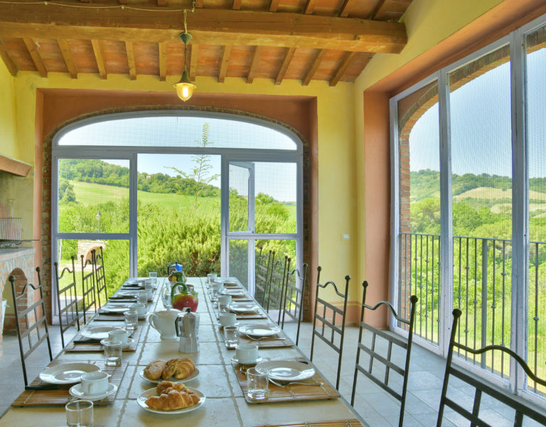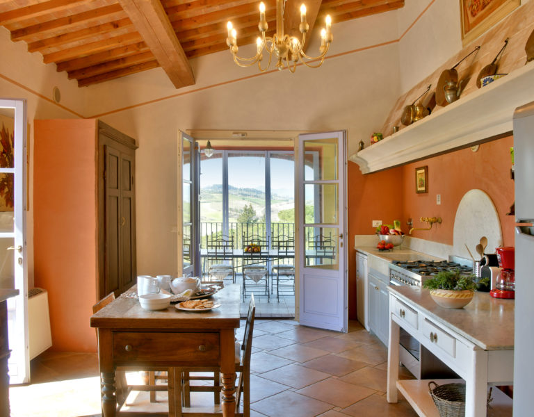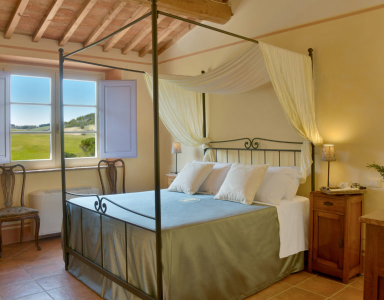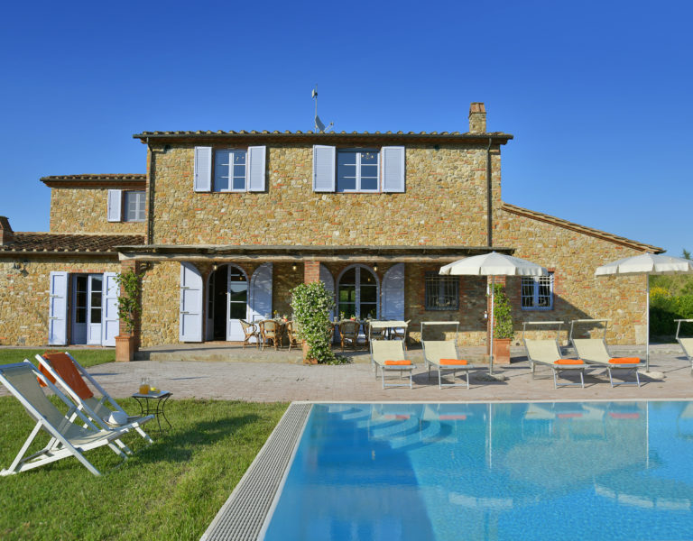 All windows allow you to admire the enchanting Tuscan countryside and it will seem to you that the colors of the countryside are all in one with the colors of this wonderful villa. Try and think of the quiet of an unlimited field of wheat…Think of its colors that will become part of the tones of ocra of your room…Try to be the protagonist of this Tuscan magic!