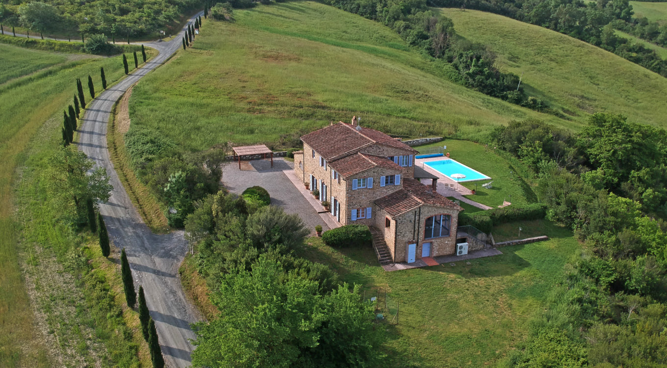 Beautiful stone farmhouse 300mt from the main road, features a large porch and a pergola equipped with tables and wrought iron chairs, barbecue, solarium and a fantastic heated infinity pool on the hill with a breathtaking view!