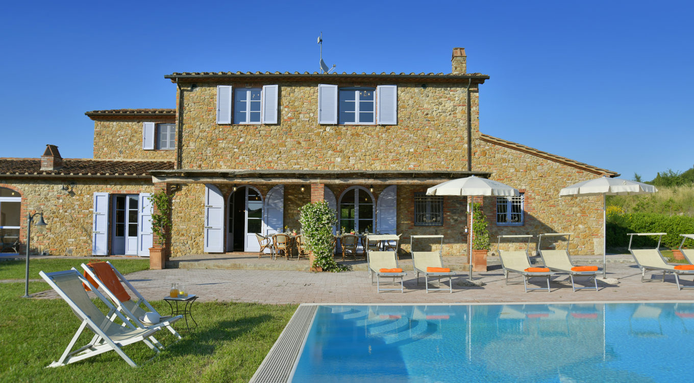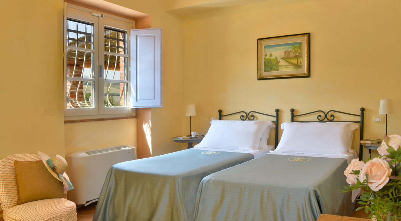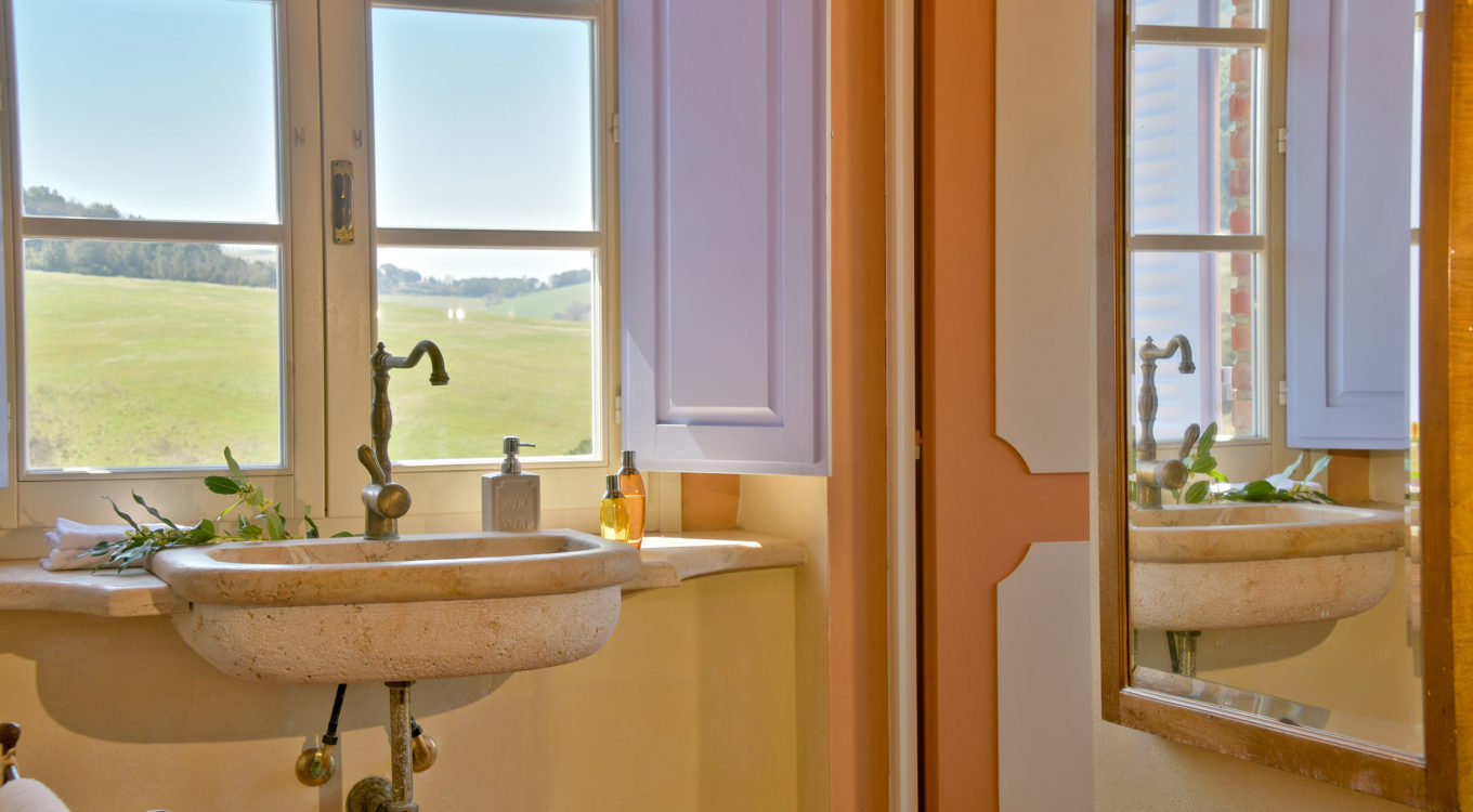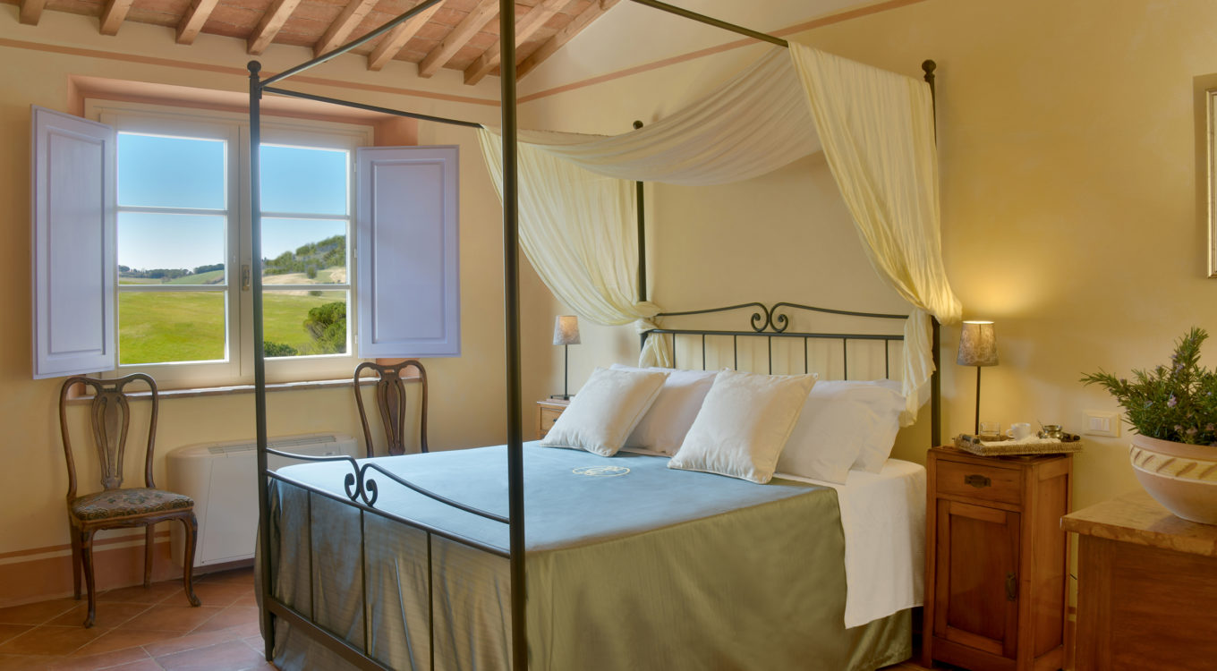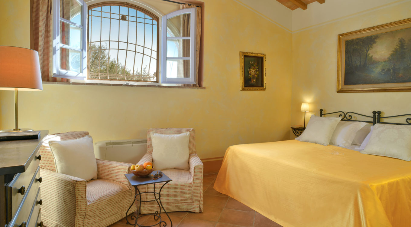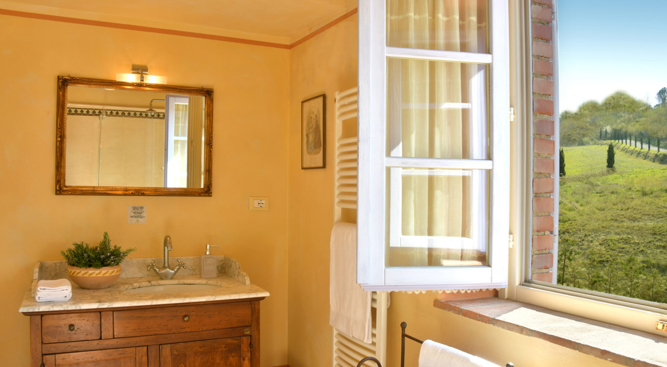 All windows allow you to admire the enchanting Tuscan countryside and it will seem to you that the colors of the countryside are all in one with the colors of this wonderful villa. Try and think of the quiet of an unlimited field of wheat…Think of its colors that will become part of the tones of ocra of your room…Try to be the protagonist of this Tuscan magic!