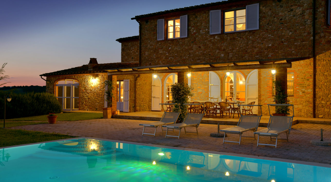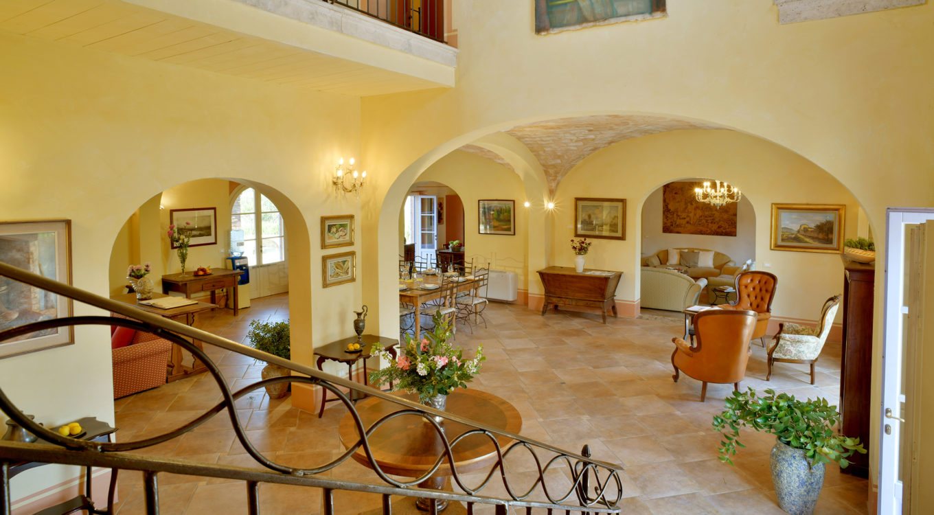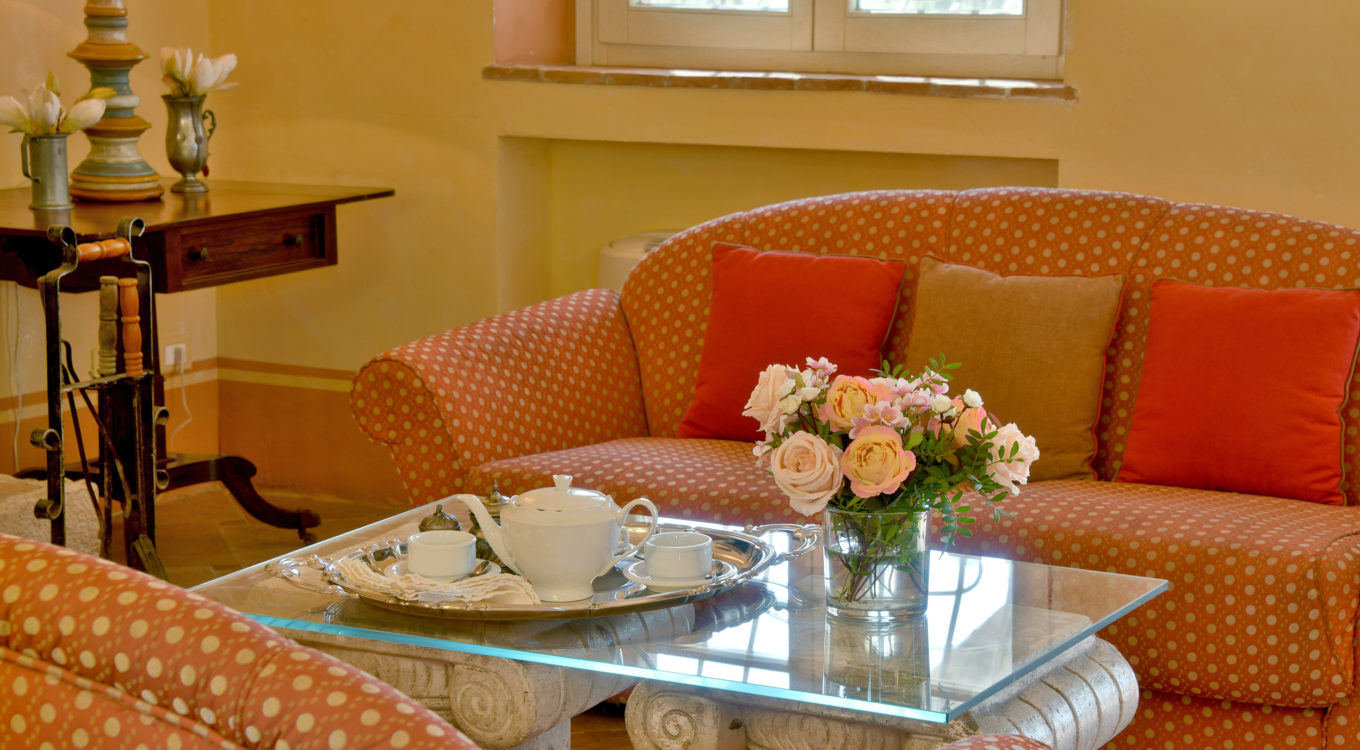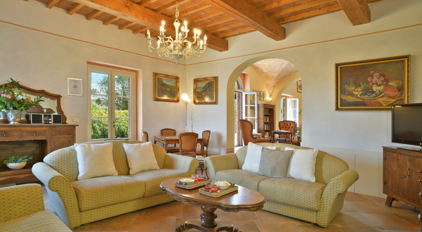 Villa Leccio offers 12 beds and two spacious sitting rooms complete with sofas and coffee tables , a magnificent stone fireplace, and TV lounge complete with SAT – TV  and Wi-fi connection. All the inside furnishings have been created to assure you an elegant atmosphere, but at the same time cosy with every comfort. A spectacular mixture of Tuscan tradition and modern comforts.