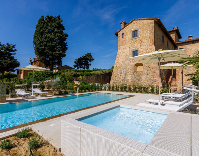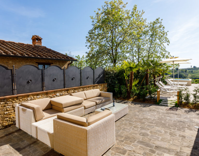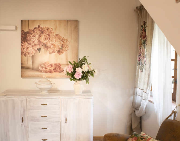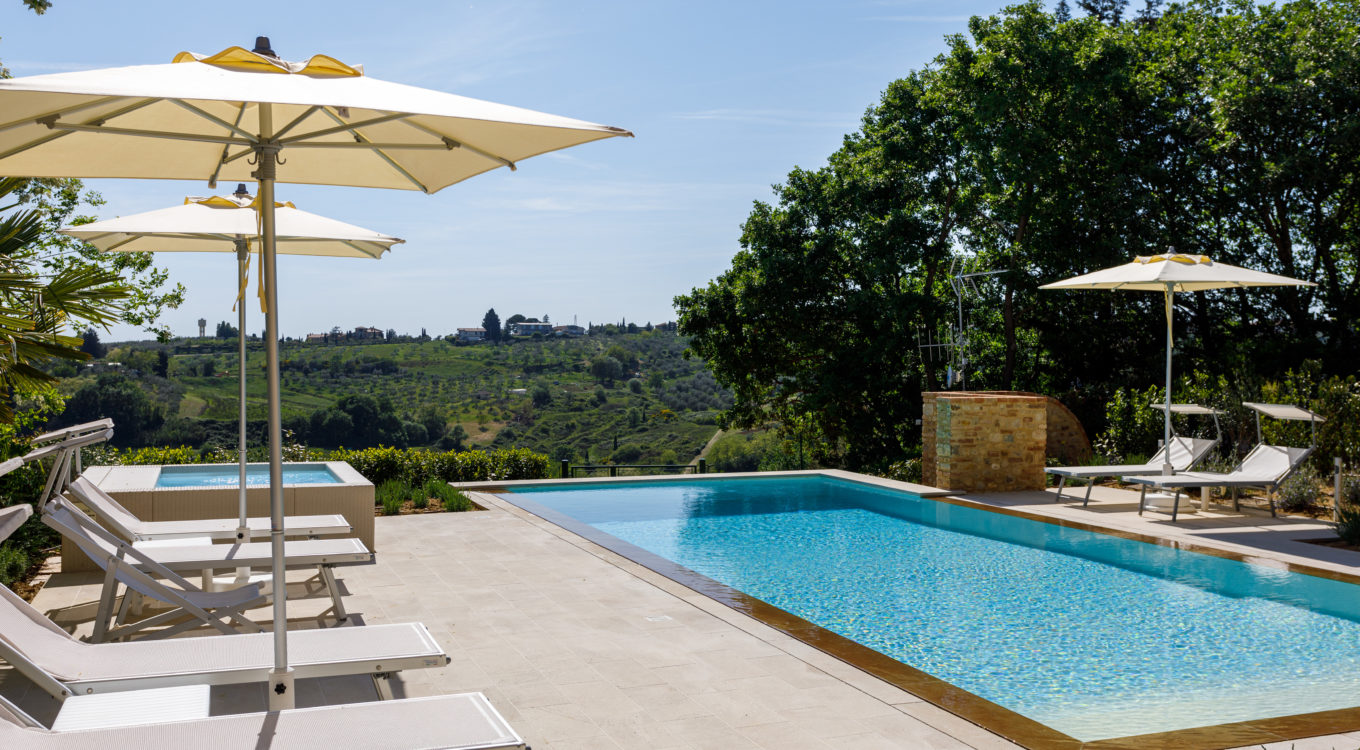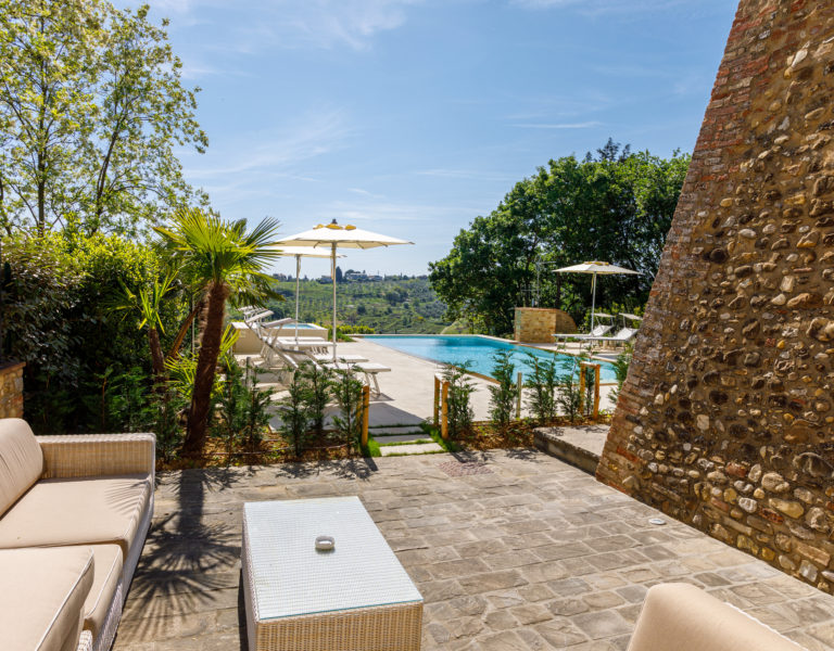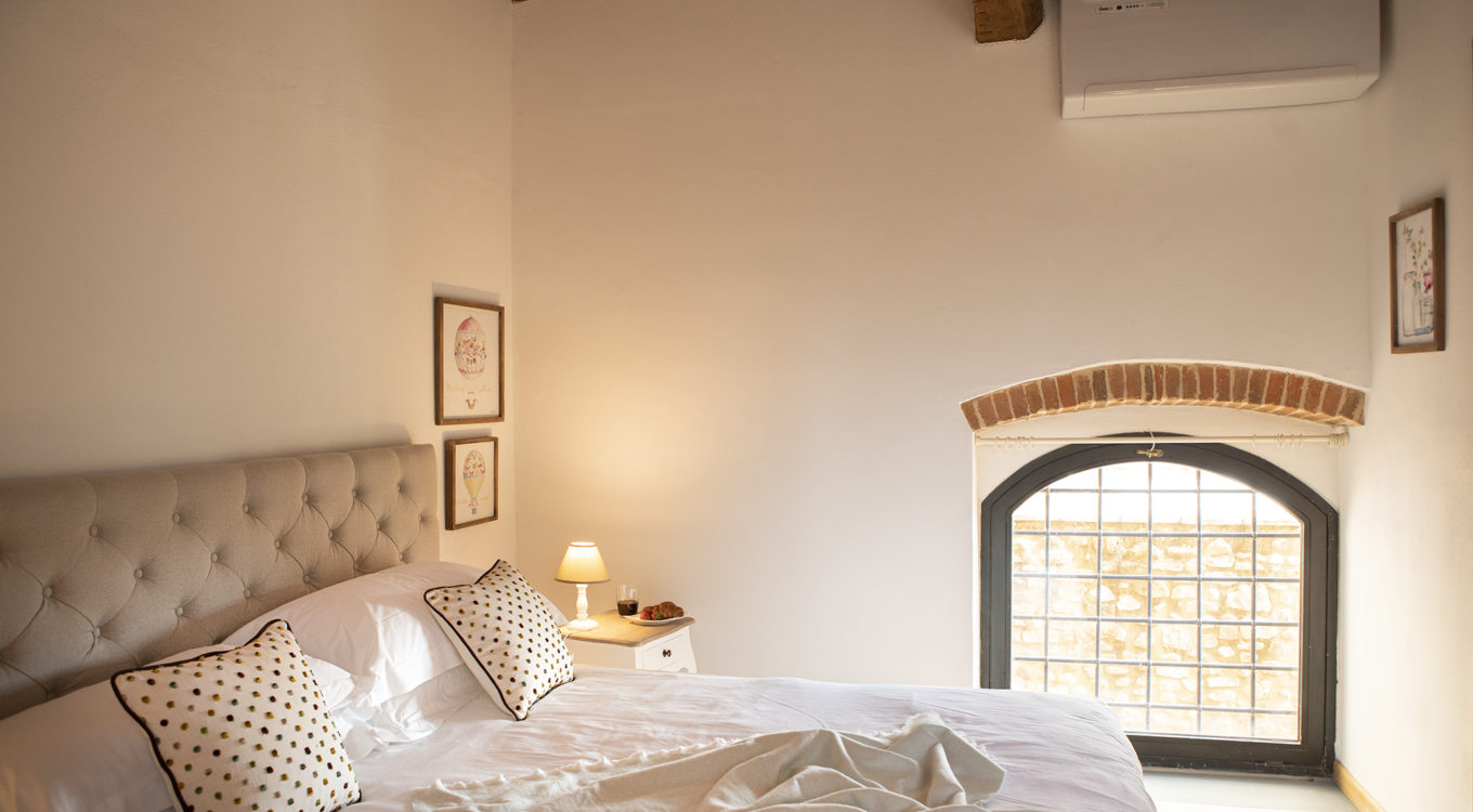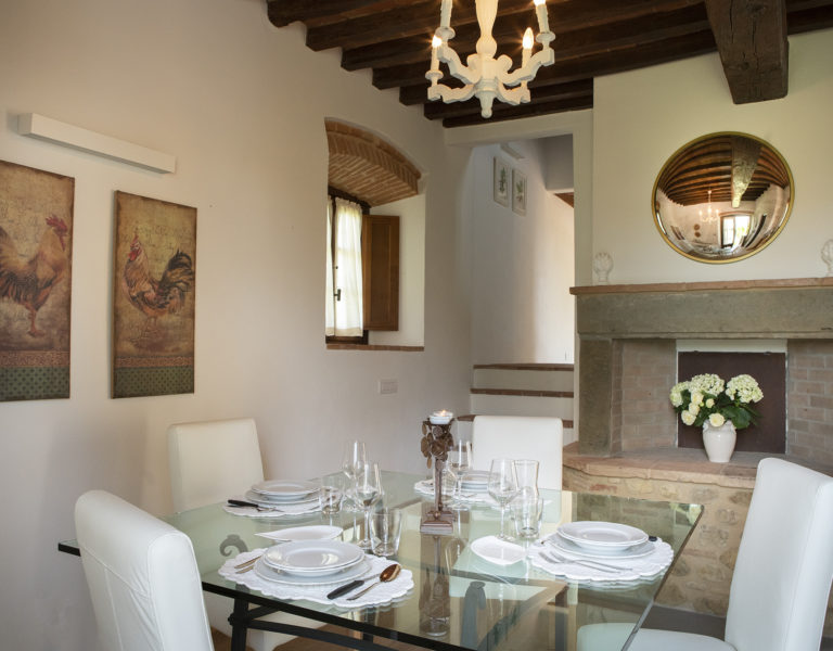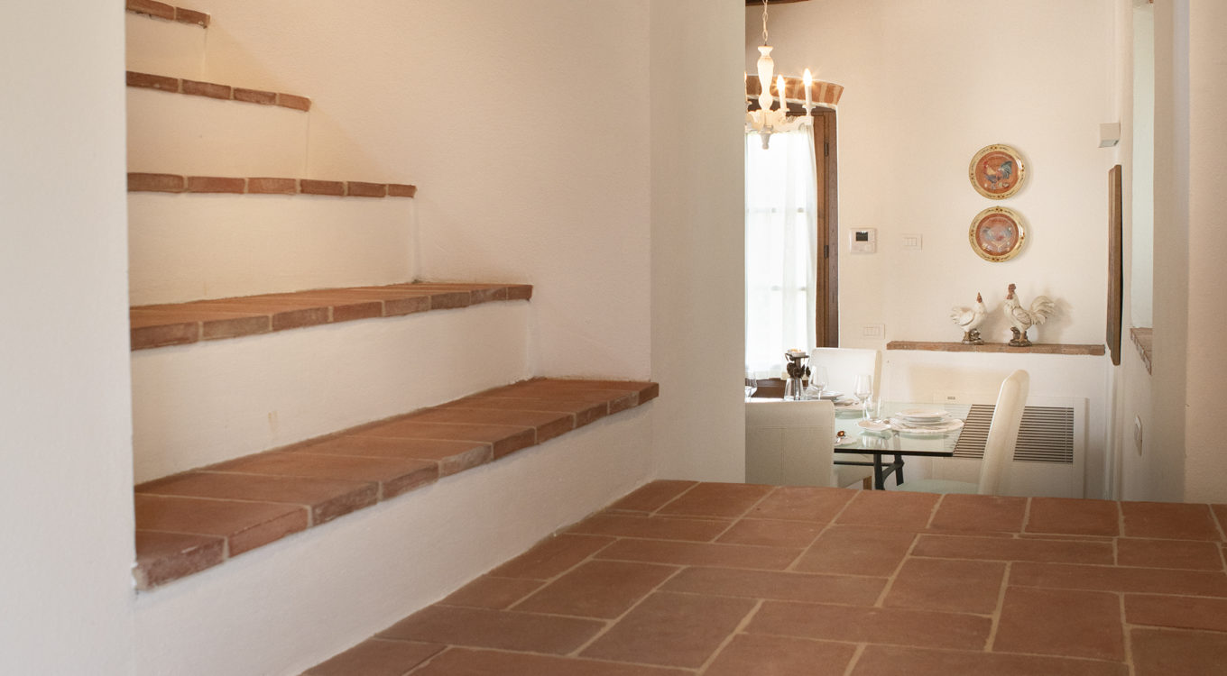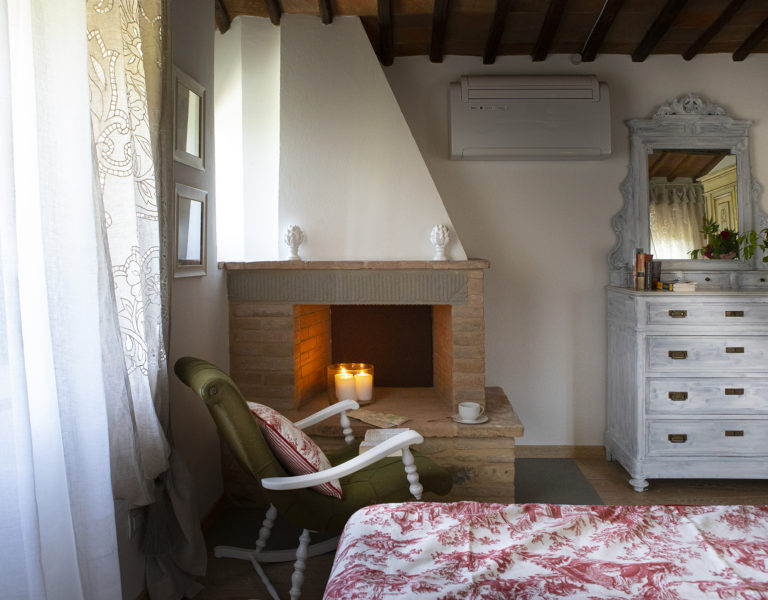 On the Villa first floor are located the three bedrooms Rosa, Girasole and Peonia. Two have double beds and one have two single beds. All the bedrooms have ensuite bathroom with shower. The sixth double bedroom, Gelsomino with bathroom with shower, is located on the Villa’s higher level, on the tower, with a stunning view over the Tuscan countryside, covered with vineyards and olive trees.The Villa is furnished also with lovely living areas with understated elegance which create a welcoming atmosphere. The Villa is completely Air Conditioned.