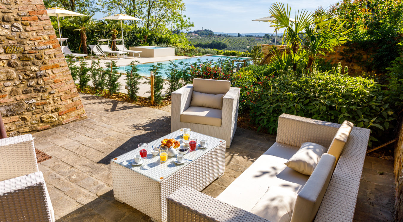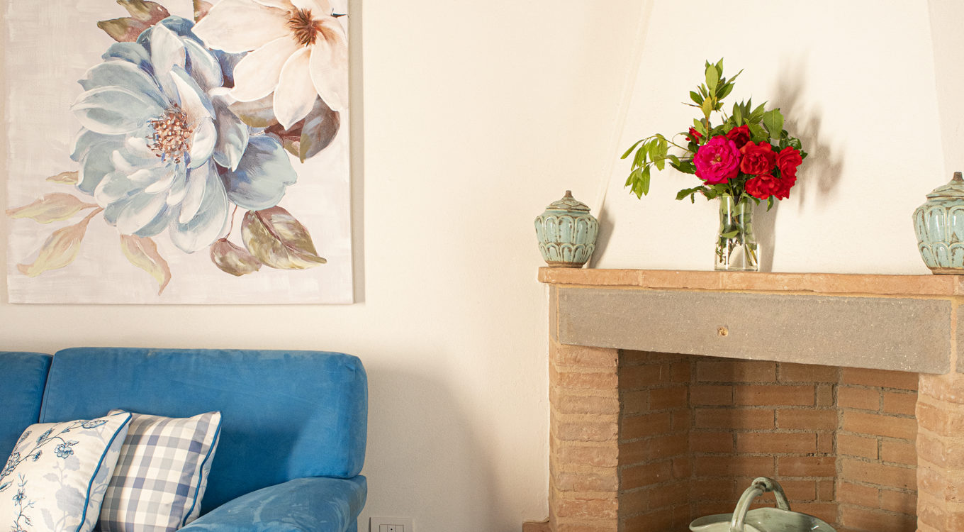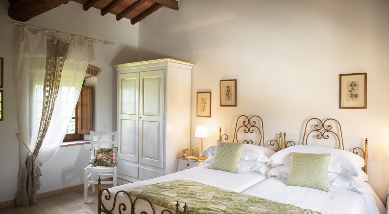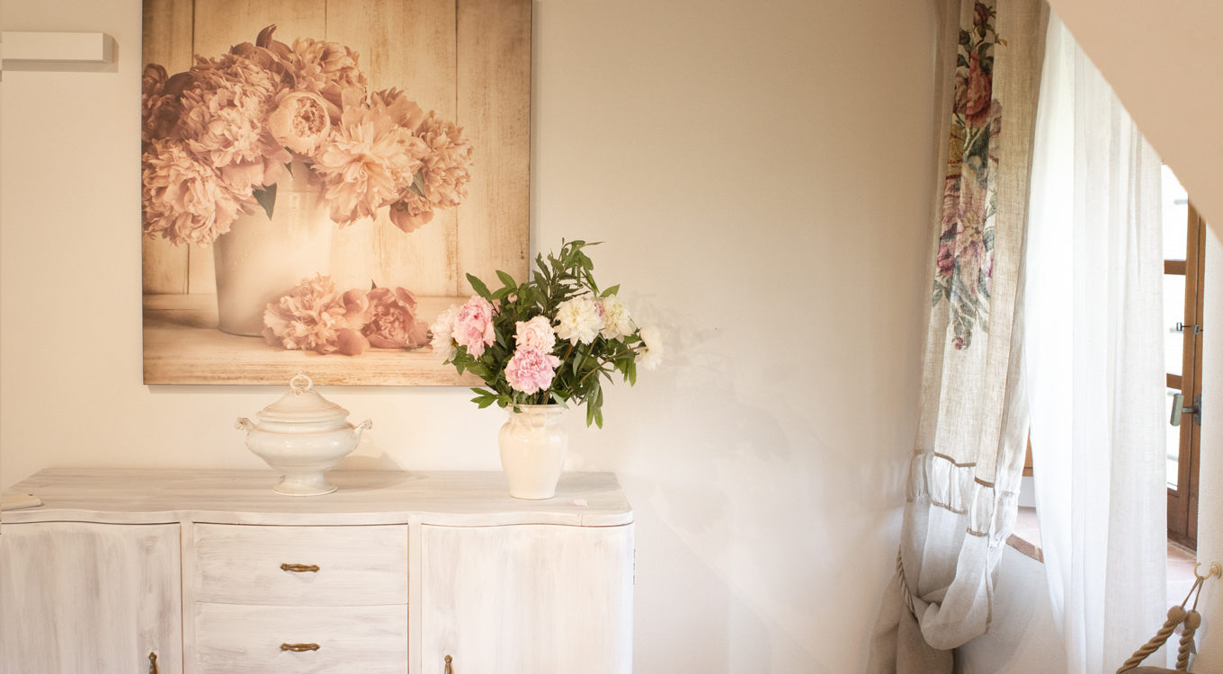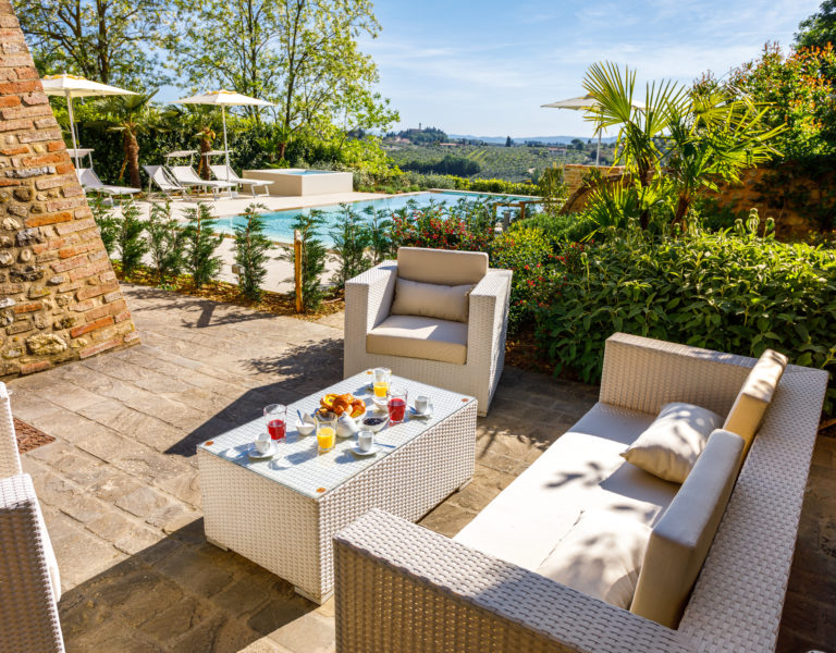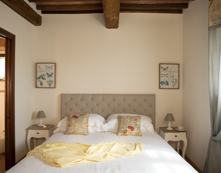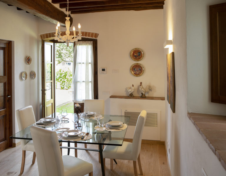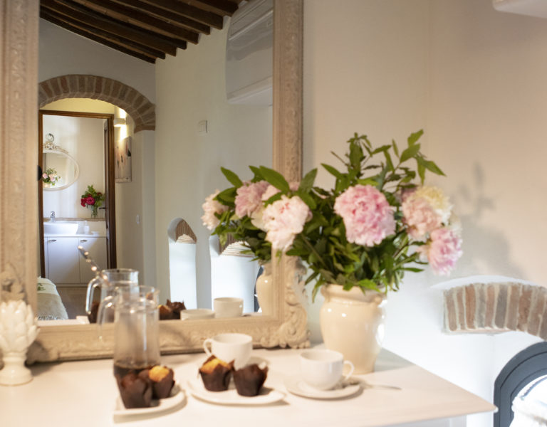 On the Villa first floor are located the three bedrooms Rosa, Girasole and Peonia. Two have double beds and one have two single beds. All the bedrooms have ensuite bathroom with shower. The sixth double bedroom, Gelsomino with bathroom with shower, is located on the Villa’s higher level, on the tower, with a stunning view over the Tuscan countryside, covered with vineyards and olive trees.The Villa is furnished also with lovely living areas with understated elegance which create a welcoming atmosphere. The Villa is completely Air Conditioned.