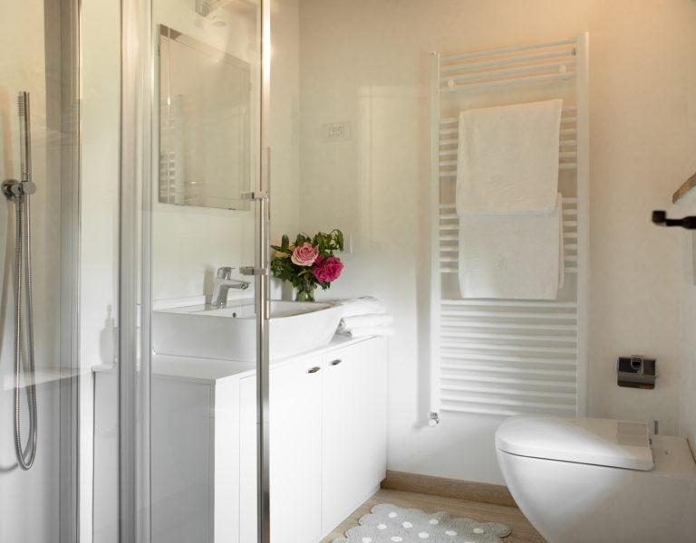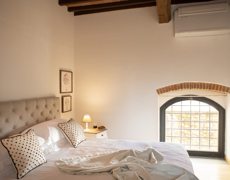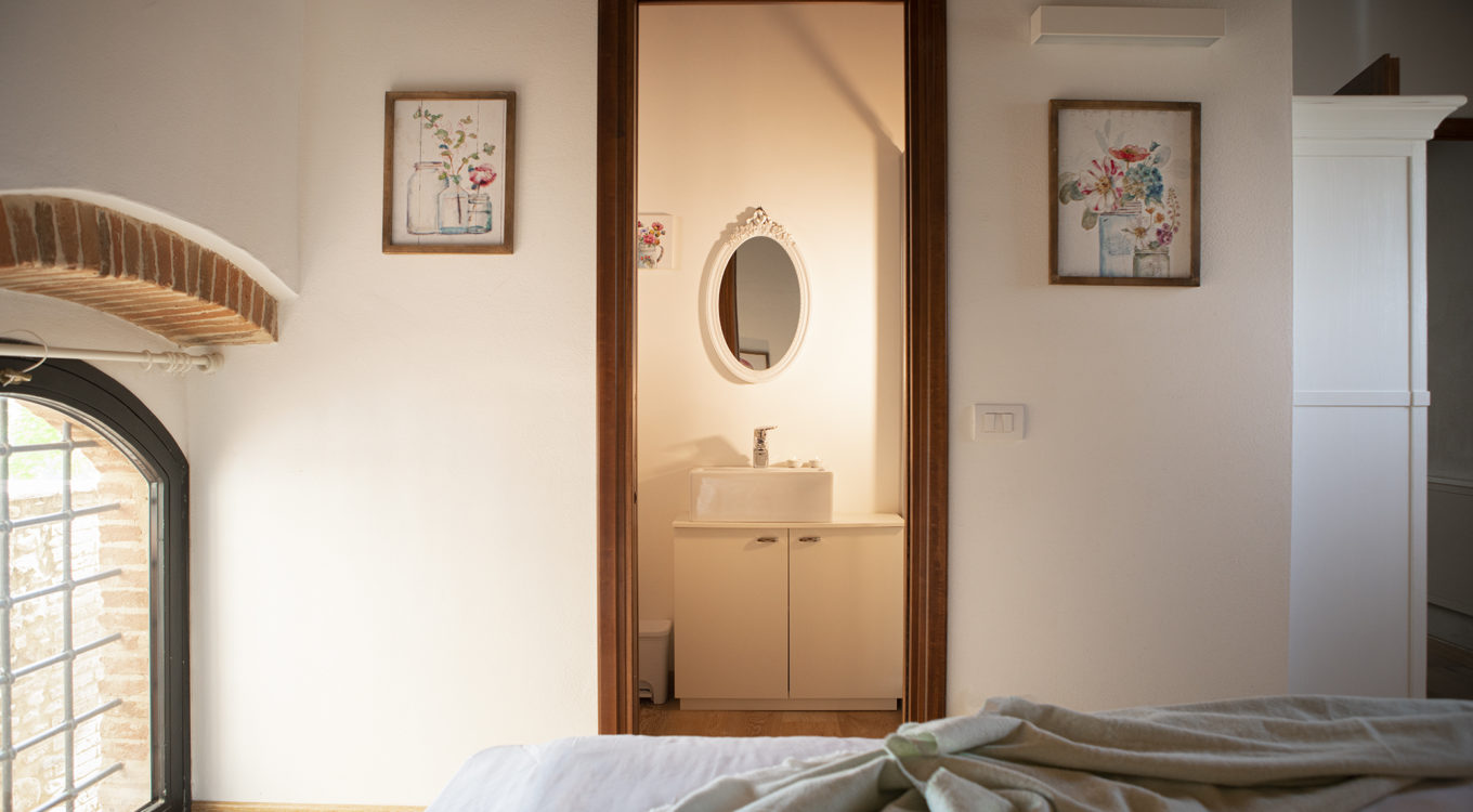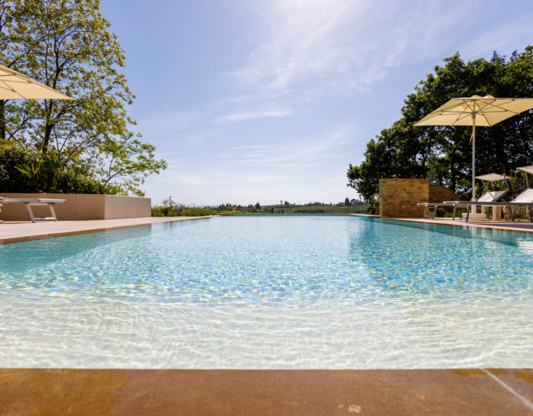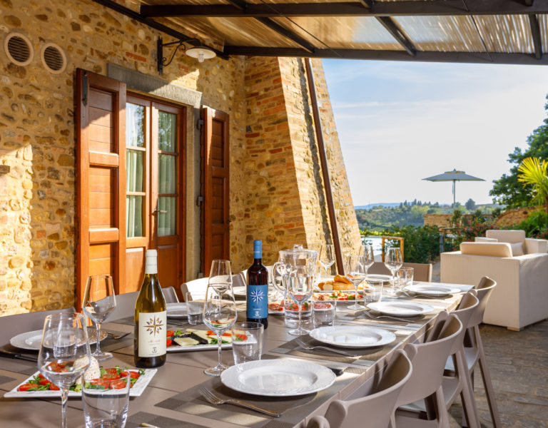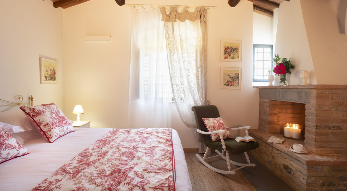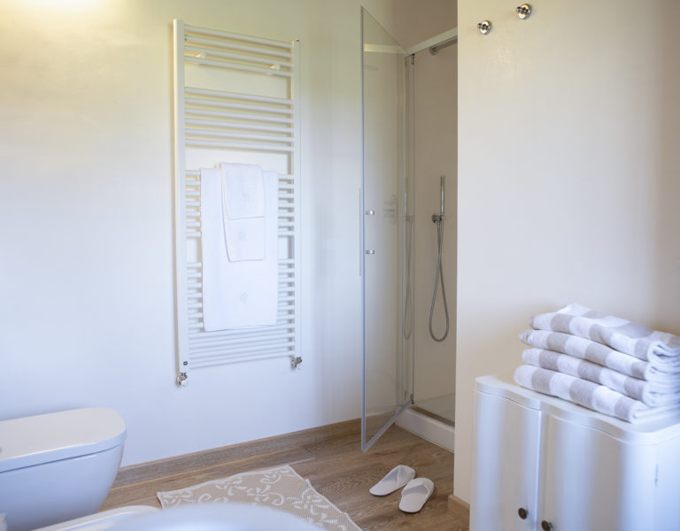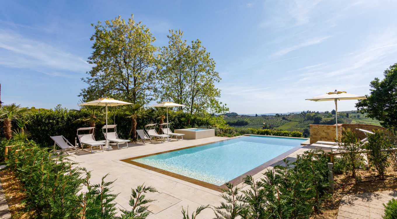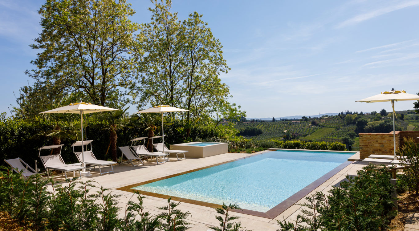 On the Villa first floor are located the three bedrooms Rosa, Girasole and Peonia. Two have double beds and one have two single beds. All the bedrooms have ensuite bathroom with shower. The sixth double bedroom, Gelsomino with bathroom with shower, is located on the Villa’s higher level, on the tower, with a stunning view over the Tuscan countryside, covered with vineyards and olive trees.The Villa is furnished also with lovely living areas with understated elegance which create a welcoming atmosphere. The Villa is completely Air Conditioned.