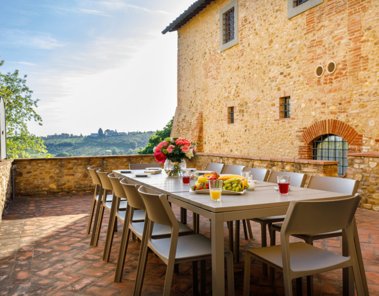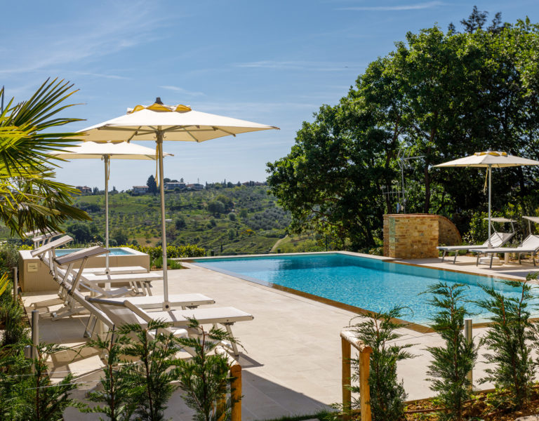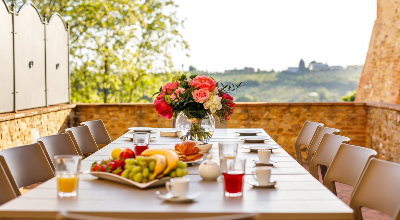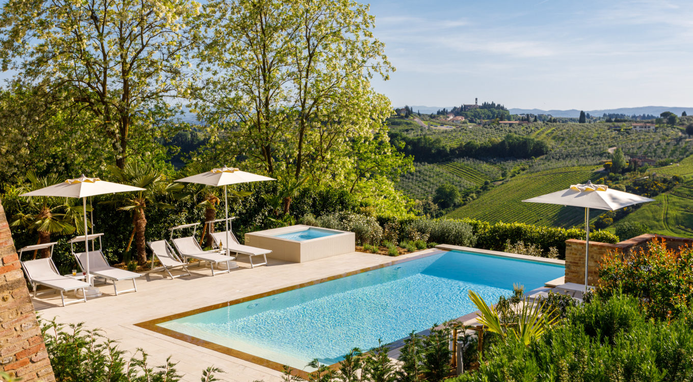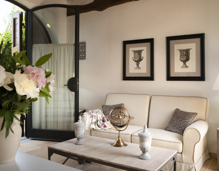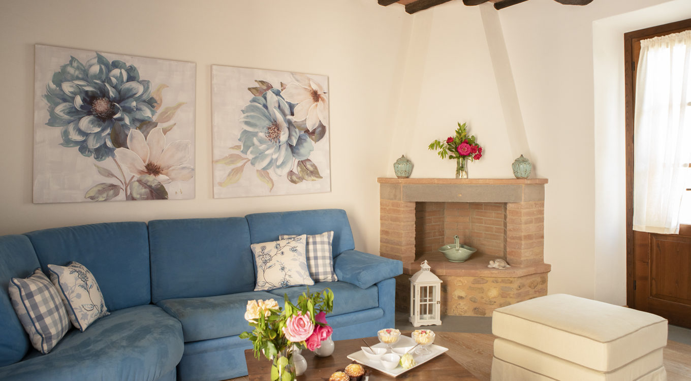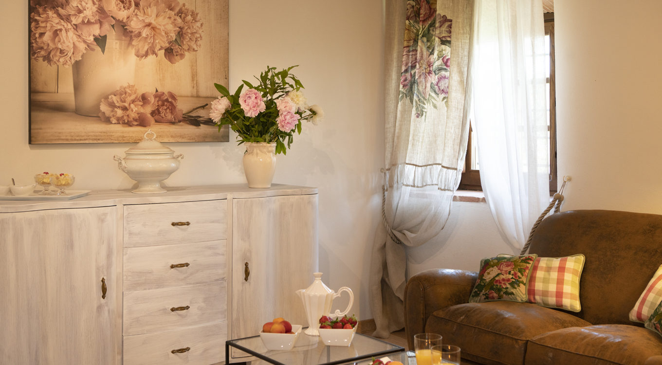 On the Villa first floor are located the three bedrooms Rosa, Girasole and Peonia. Two have double beds and one have two single beds. All the bedrooms have ensuite bathroom with shower. The sixth double bedroom, Gelsomino with bathroom with shower, is located on the Villa’s higher level, on the tower, with a stunning view over the Tuscan countryside, covered with vineyards and olive trees.The Villa is furnished also with lovely living areas with understated elegance which create a welcoming atmosphere. The Villa is completely Air Conditioned.