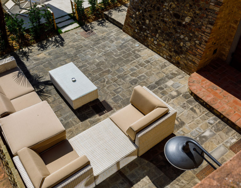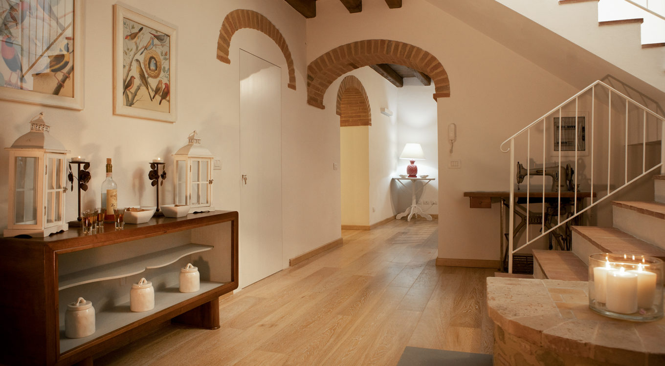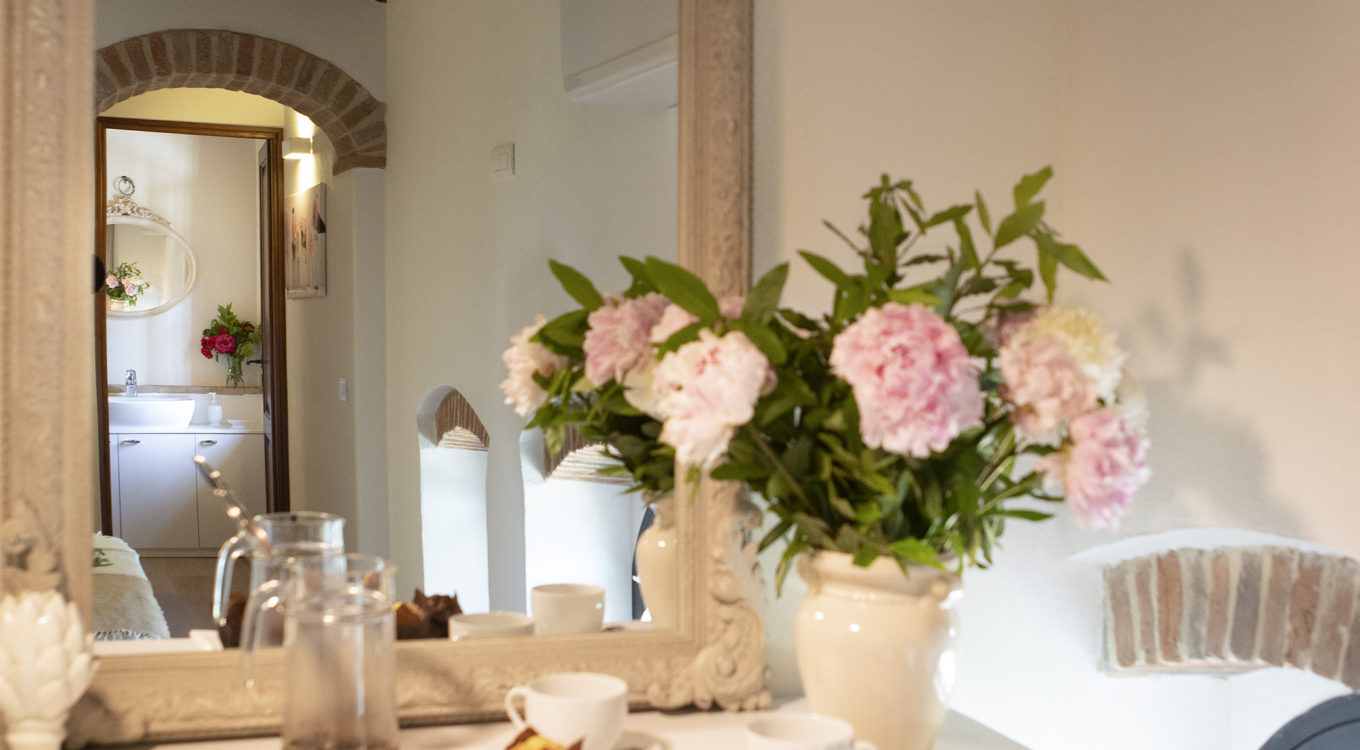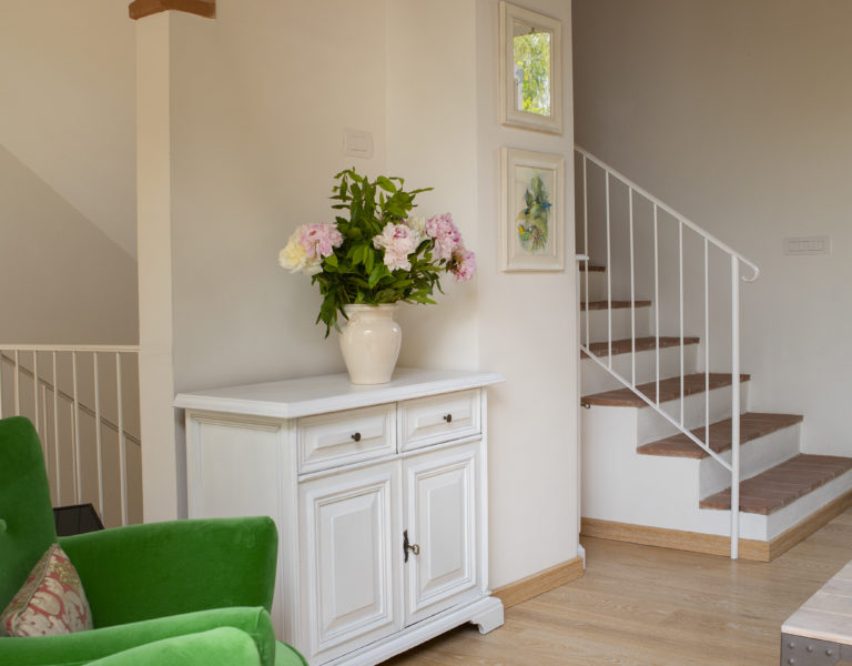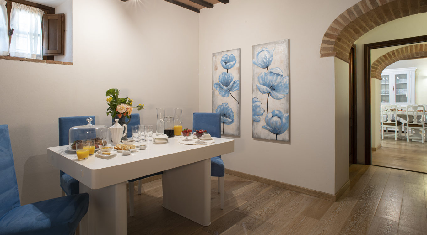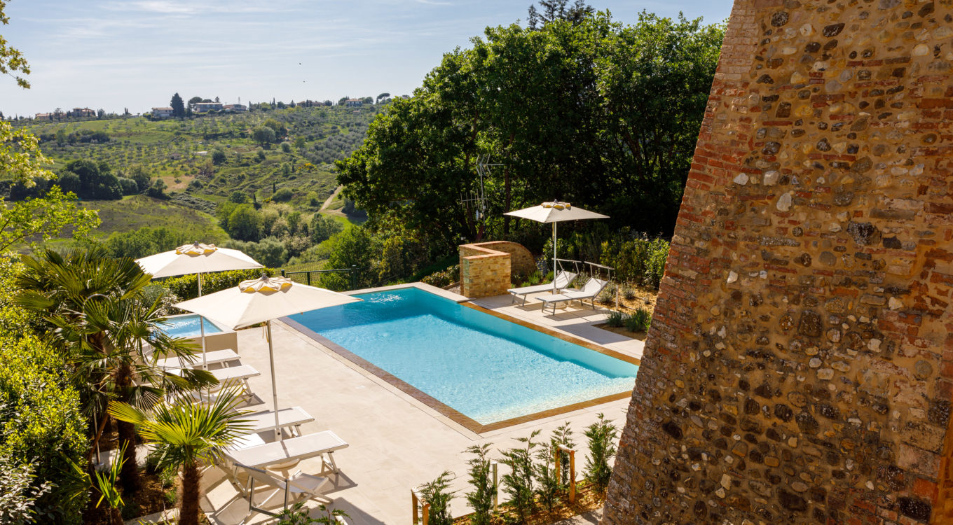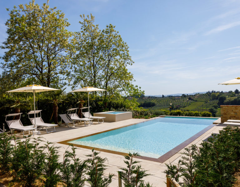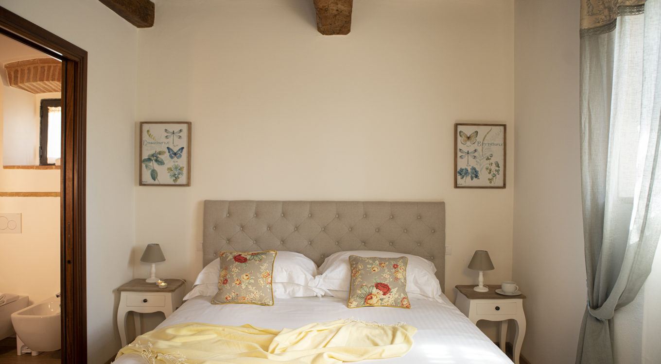On the Villa first floor are located the three bedrooms Rosa, Girasole and Peonia. Two have double beds and one have two single beds. All the bedrooms have ensuite bathroom with shower. The sixth double bedroom, Gelsomino with bathroom with shower, is located on the Villa’s higher level, on the tower, with a stunning view over the Tuscan countryside, covered with vineyards and olive trees.The Villa is furnished also with lovely living areas with understated elegance which create a welcoming atmosphere. The Villa is completely Air Conditioned.