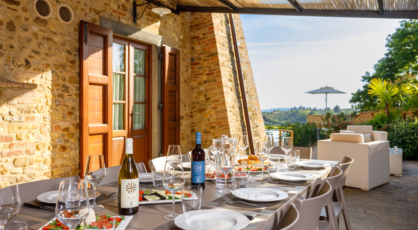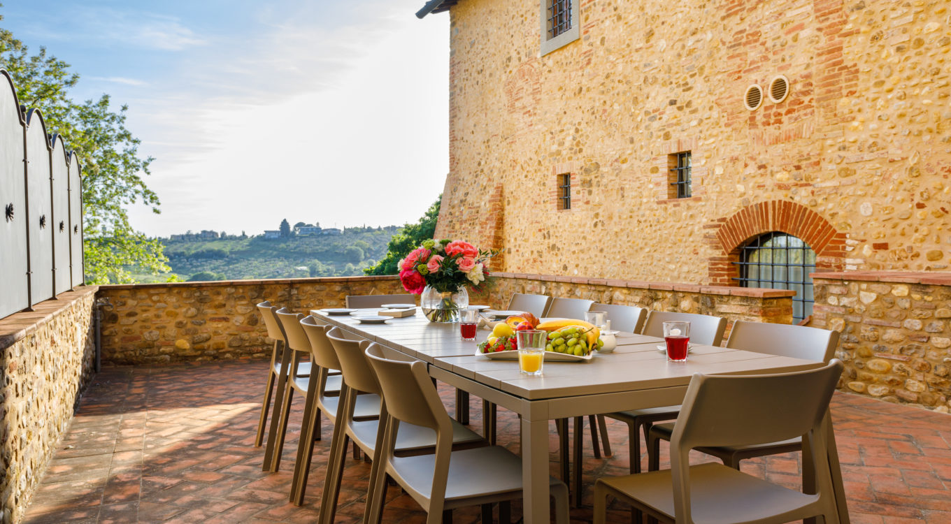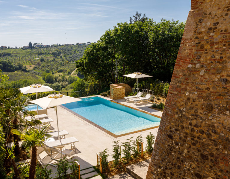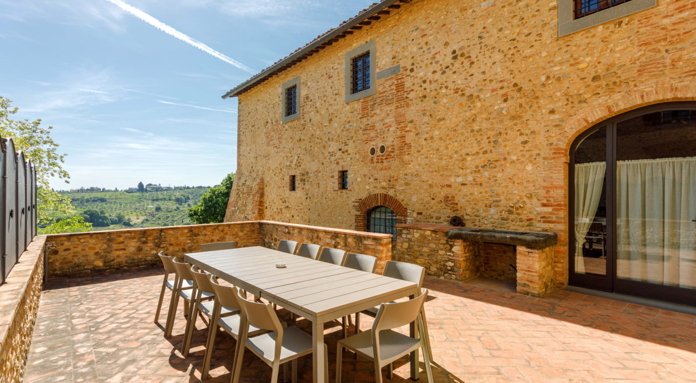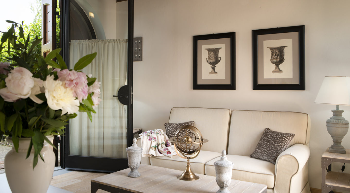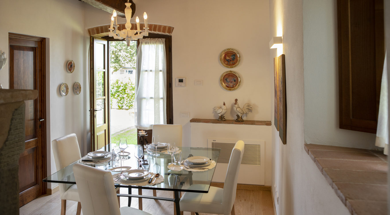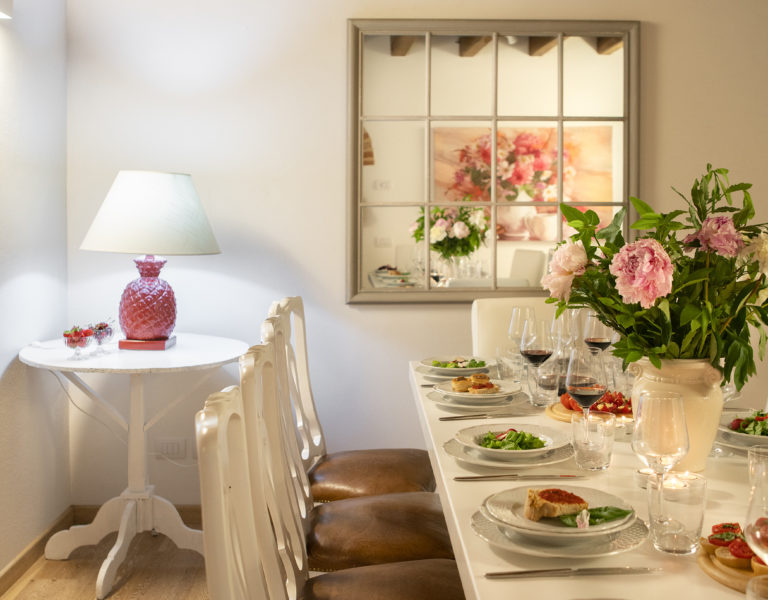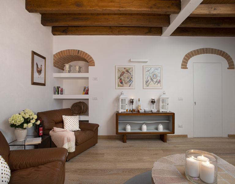 On the Villa first floor are located the three bedrooms Rosa, Girasole and Peonia. Two have double beds and one have two single beds. All the bedrooms have ensuite bathroom with shower. The sixth double bedroom, Gelsomino with bathroom with shower, is located on the Villa’s higher level, on the tower, with a stunning view over the Tuscan countryside, covered with vineyards and olive trees.The Villa is furnished also with lovely living areas with understated elegance which create a welcoming atmosphere. The Villa is completely Air Conditioned.