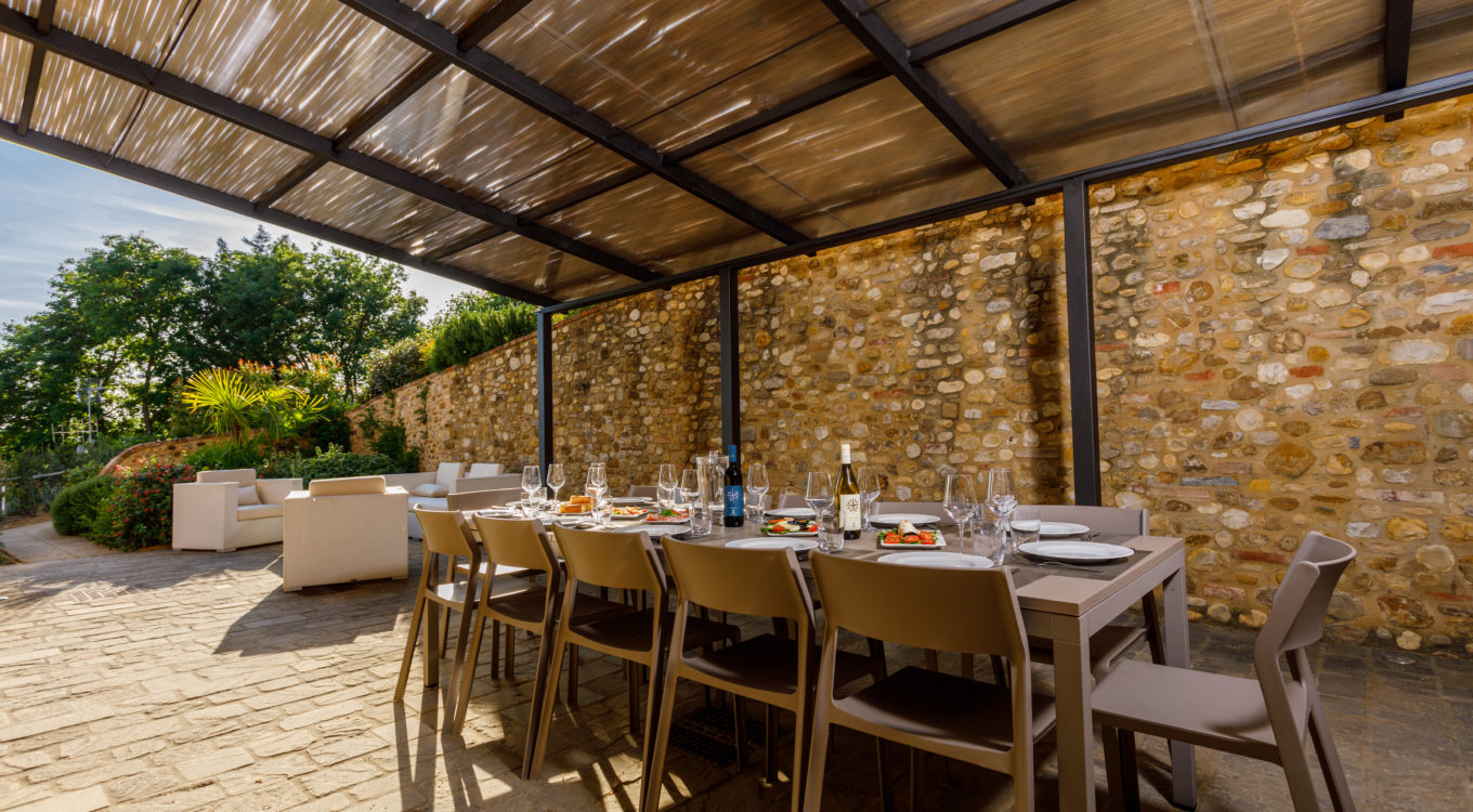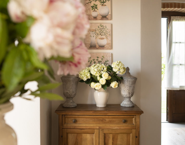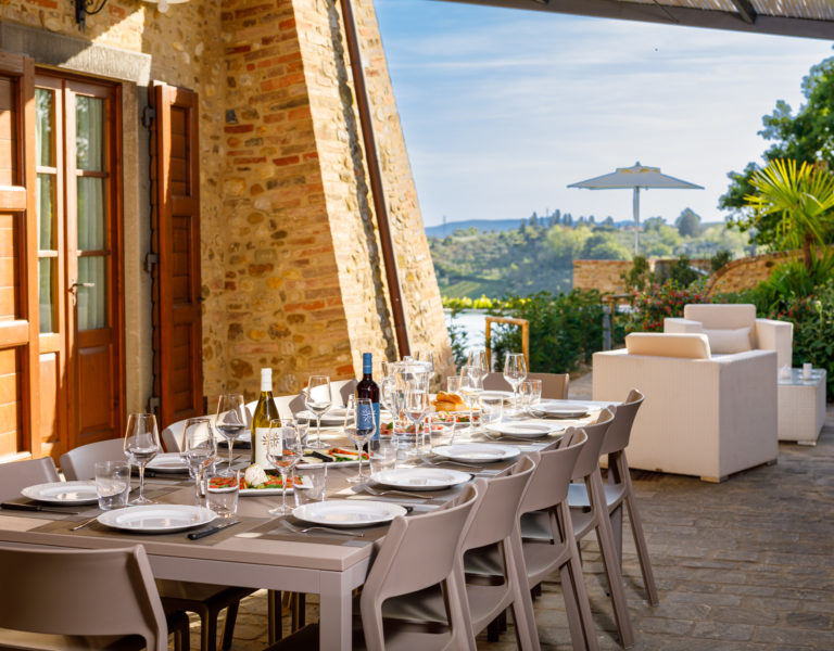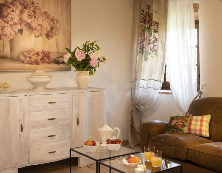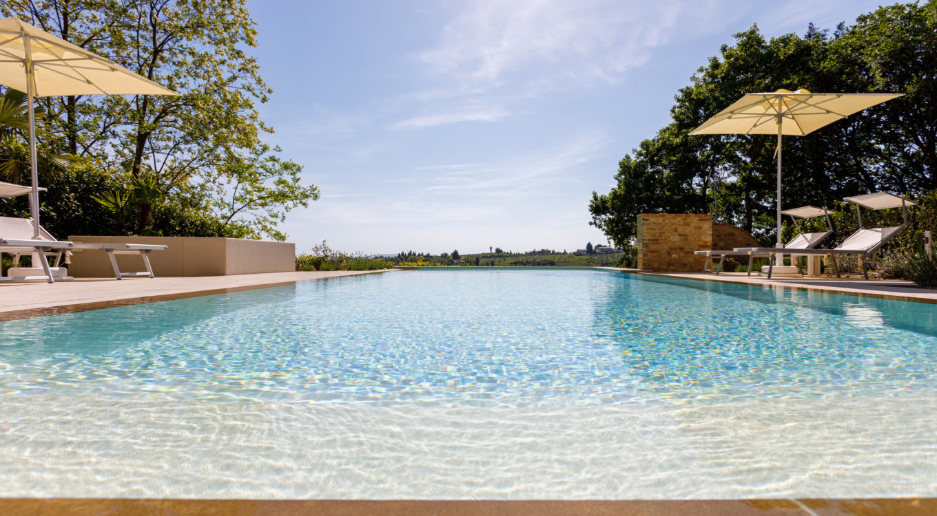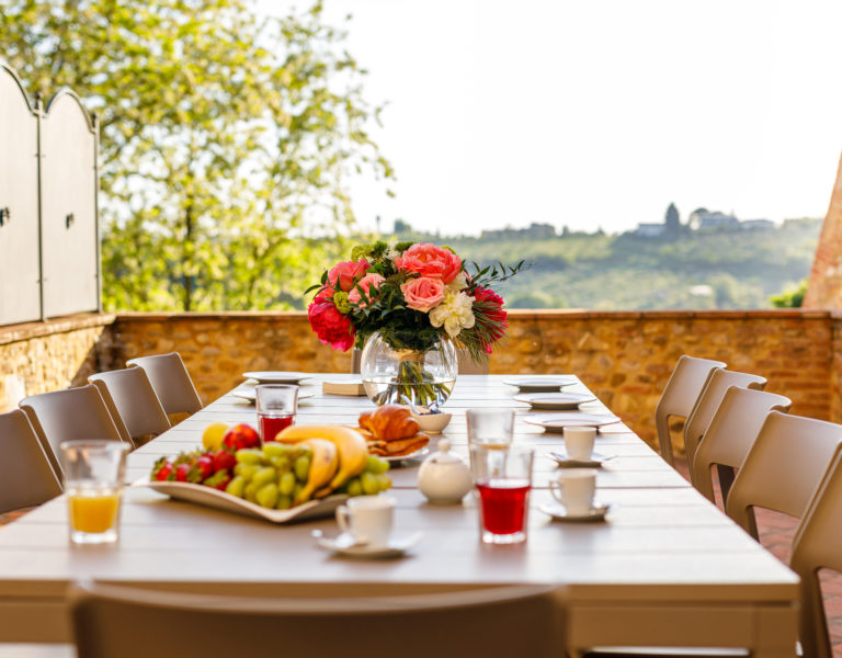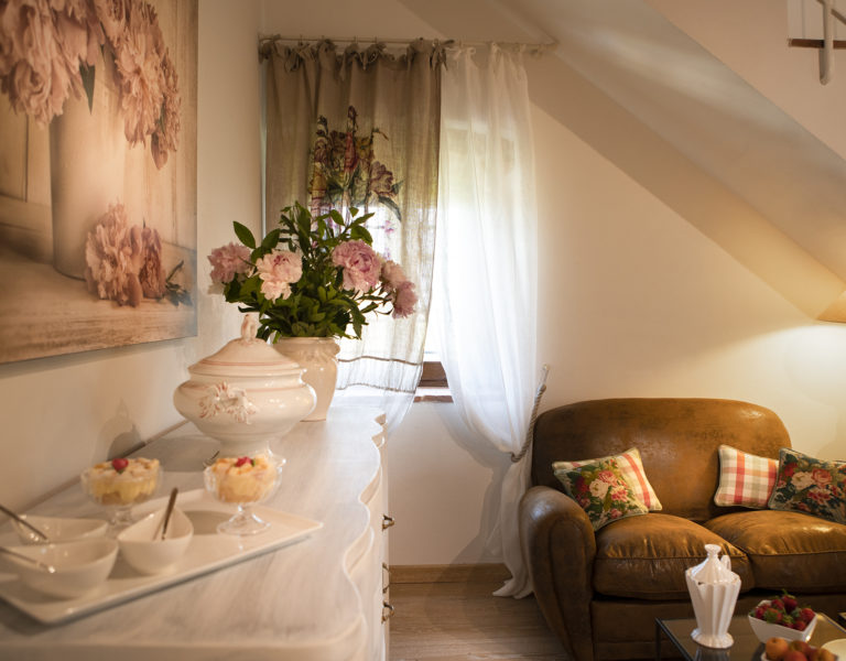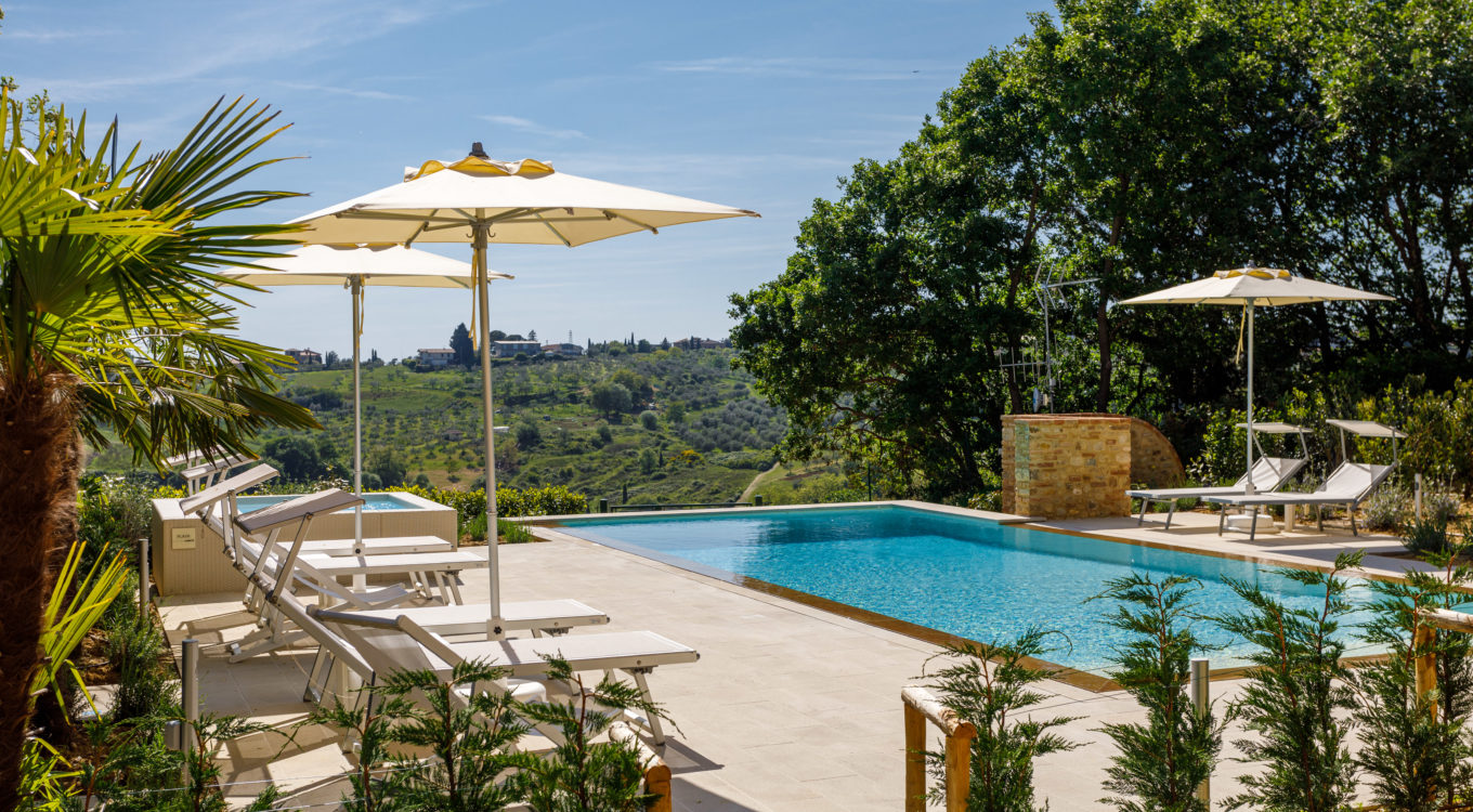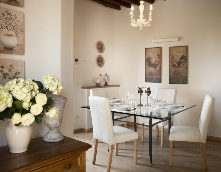 On the Villa first floor are located the three bedrooms Rosa, Girasole and Peonia. Two have double beds and one have two single beds. All the bedrooms have ensuite bathroom with shower. The sixth double bedroom, Gelsomino with bathroom with shower, is located on the Villa’s higher level, on the tower, with a stunning view over the Tuscan countryside, covered with vineyards and olive trees.The Villa is furnished also with lovely living areas with understated elegance which create a welcoming atmosphere. The Villa is completely Air Conditioned.