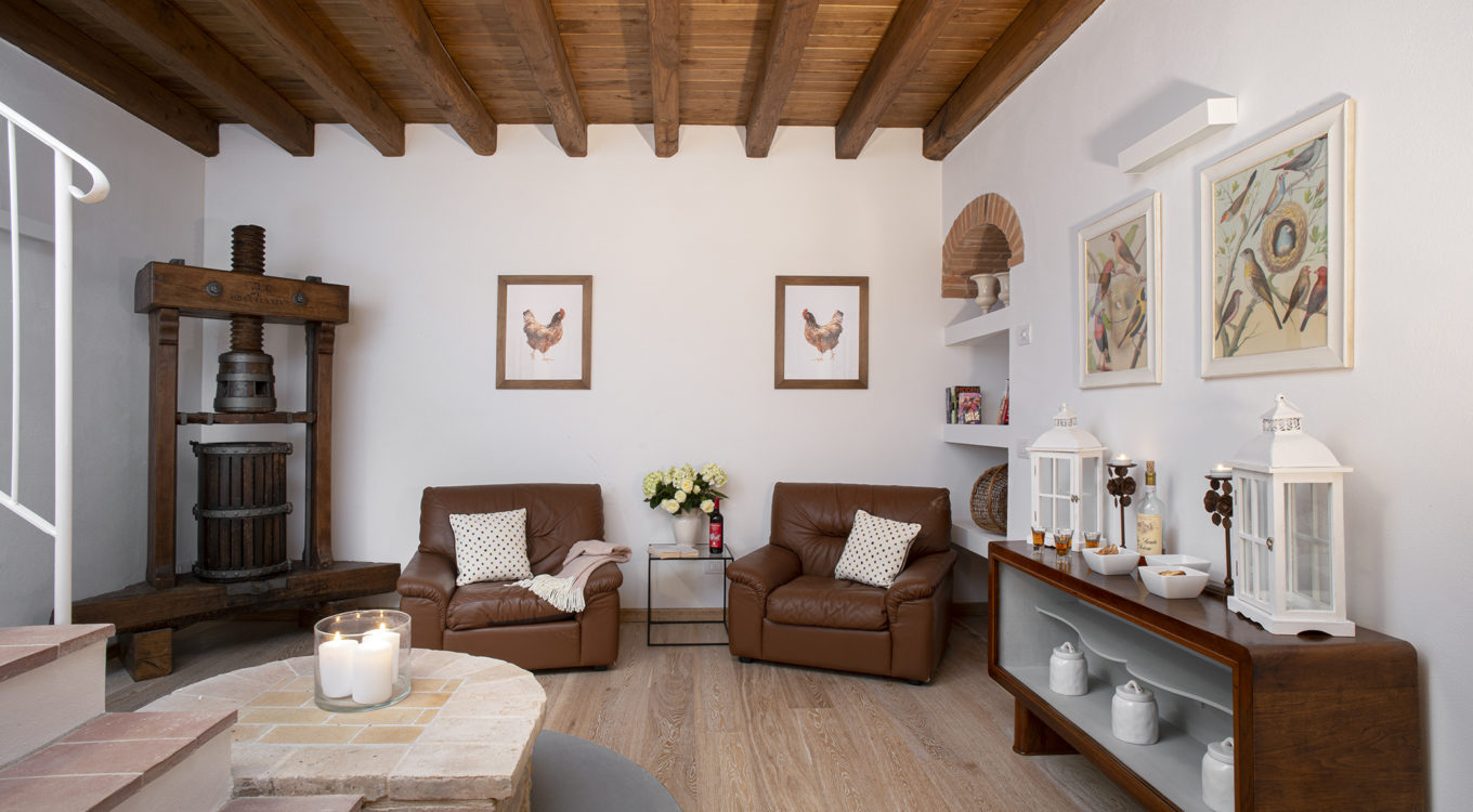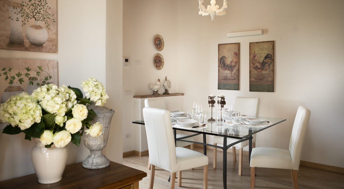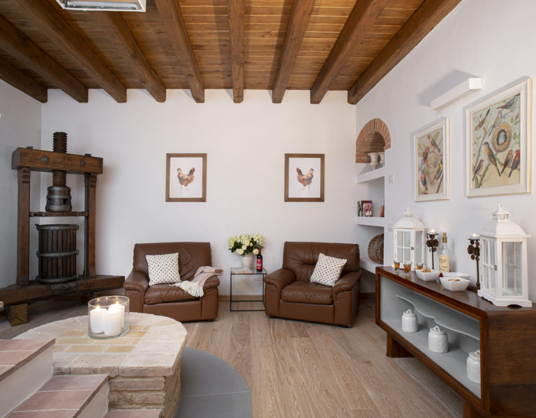 The Villa opens onto a living space with a comfortable sofa and Tv from this living room through the internal stairs it is possible to reach the double bedrooms Viola and Margherita, both with Queen size beds and ensuite-bathrooms with shower, kitchen completed equipped.