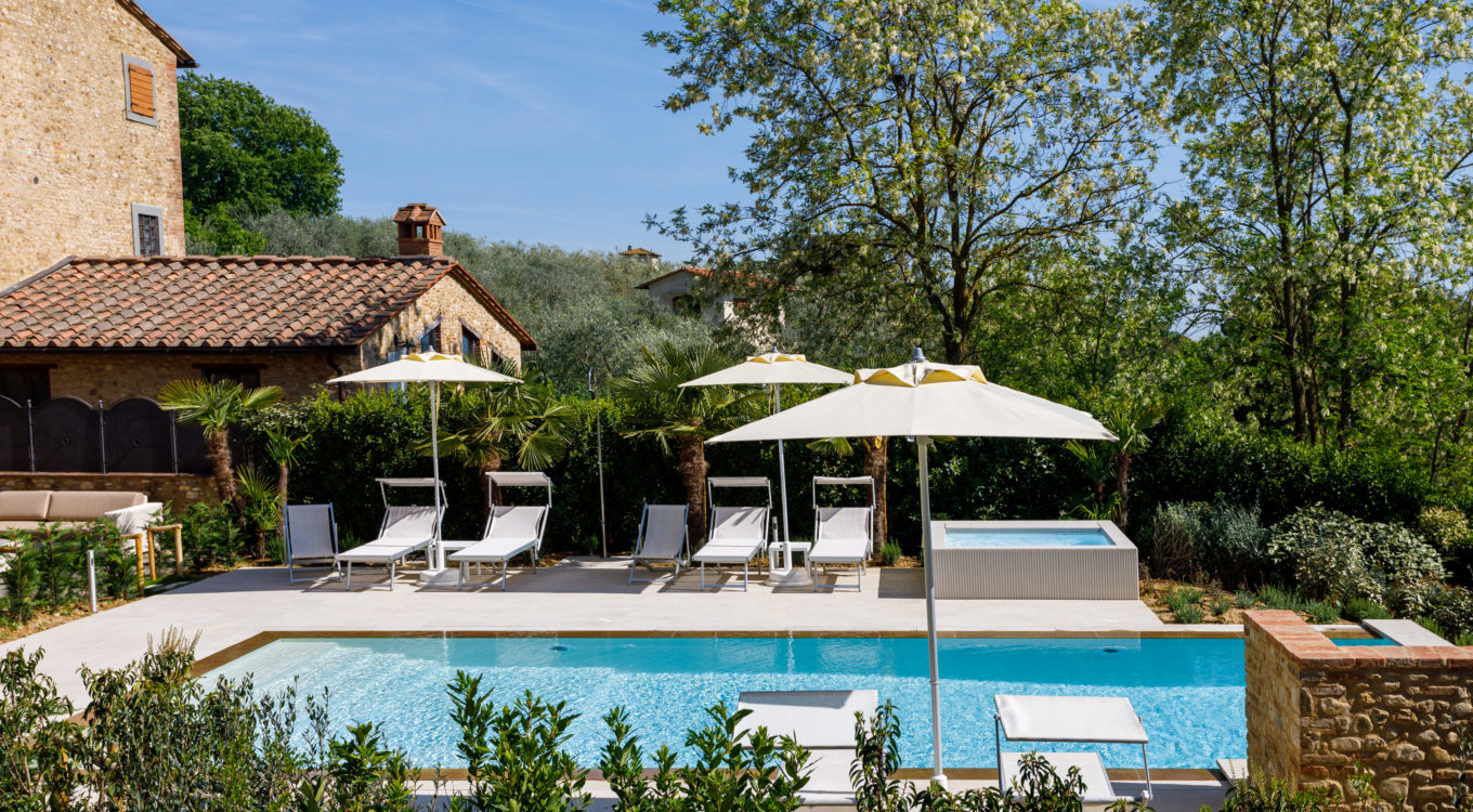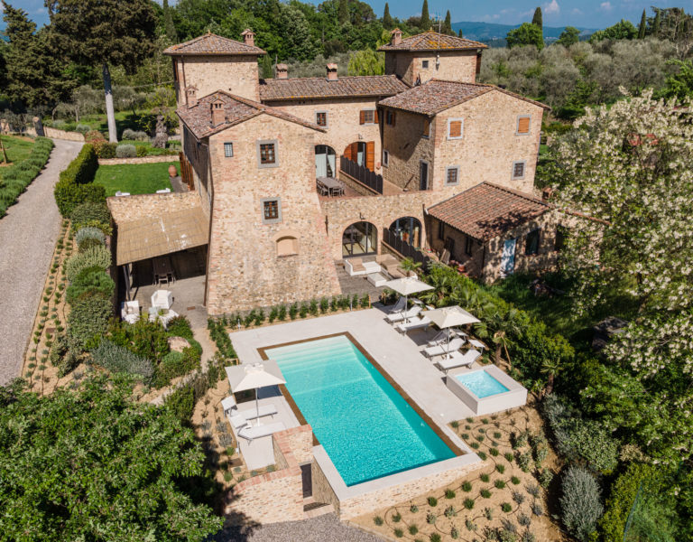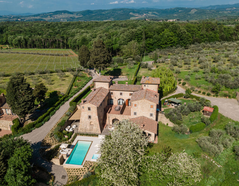 Set in the Chianti-producing area, the villa is surrounded by grapevines and olive trees and it has at guest’s disposal 6 double bedrooms all with ensuite bathrooms with shower. Villa Pianora is an ancient semi attached Villa recently restored and equipped with any confort you may need. The property’s rustic stone-walled exteriors have a lovely charm and the Villa is a
